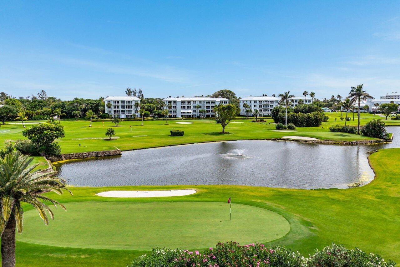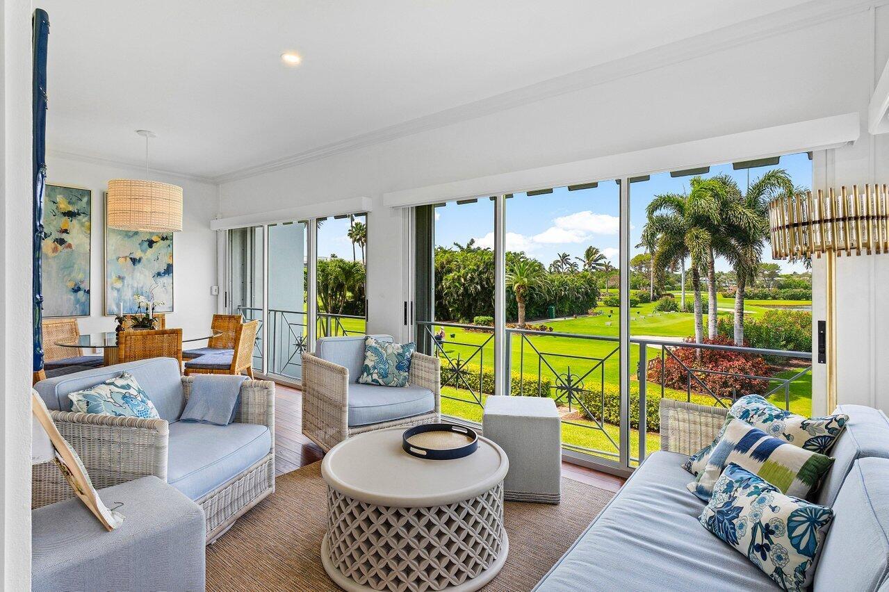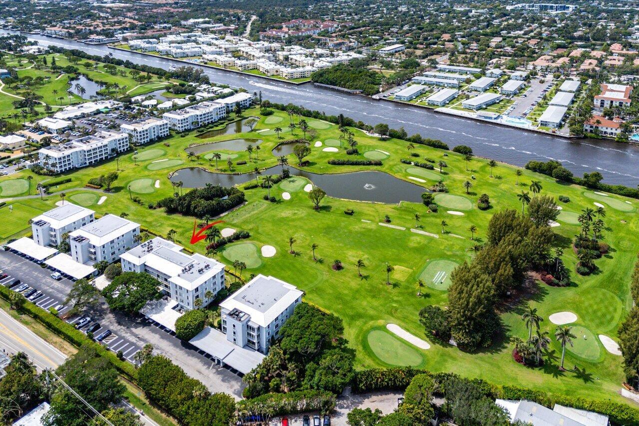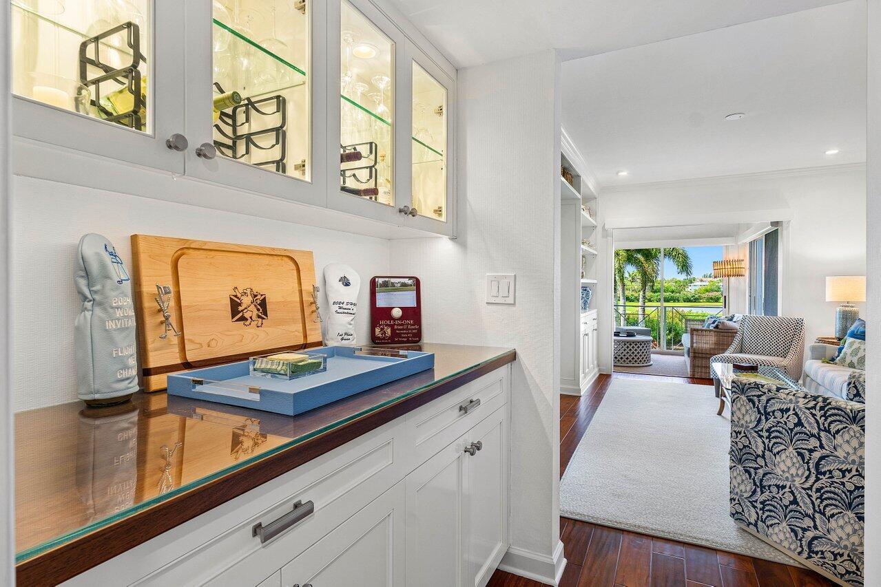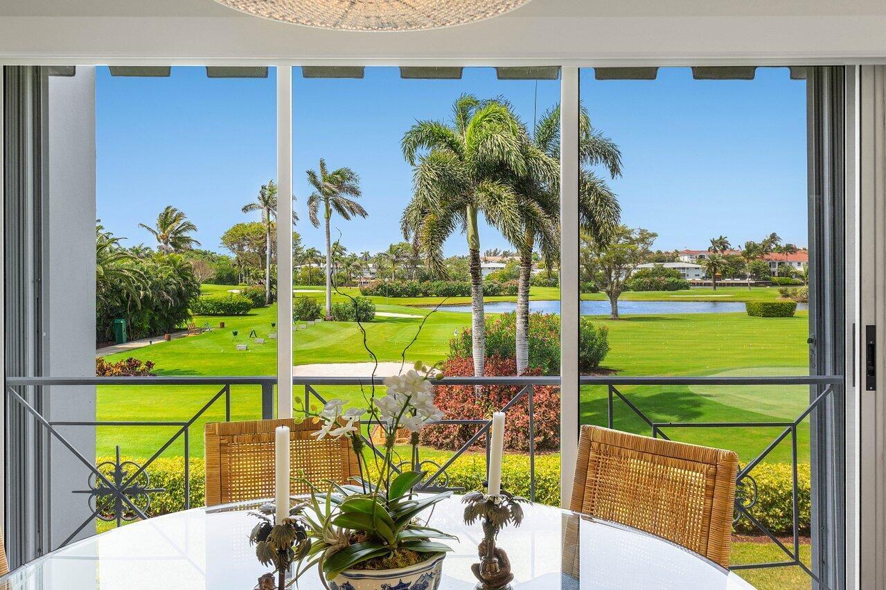 Sweeping views of the St. Andrews golf course, the ponds and the intracoastal waterway, this fully renovated 2/2 apartment with a den boasts spacious living areas perfect for relaxation and entertaining. The residence features built-ins throughout, exceptional woodworking, a separate bar, a modern kitchen, separate laundry room, impact windows, covered parking, gracious entry, and a large storage closet.Situated in the sought-after St. Andrews community, this apartment provides a unique blend of luxury and convenience, with its new West Club house, golf, course, fitness center, croquet, tennis and the beautiful beach and pool.
