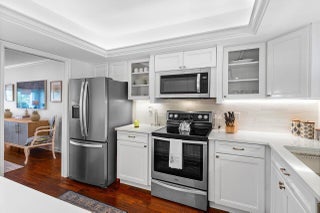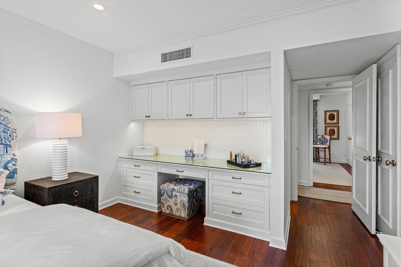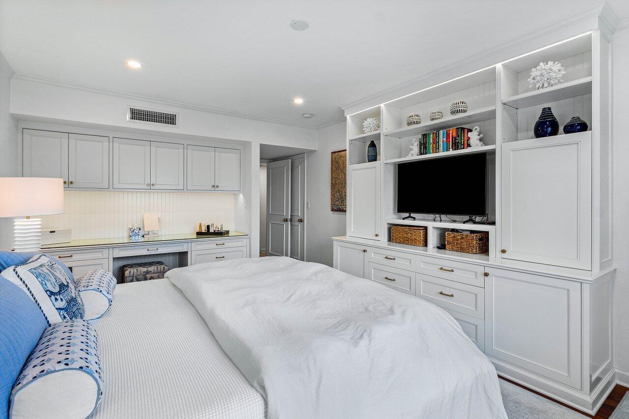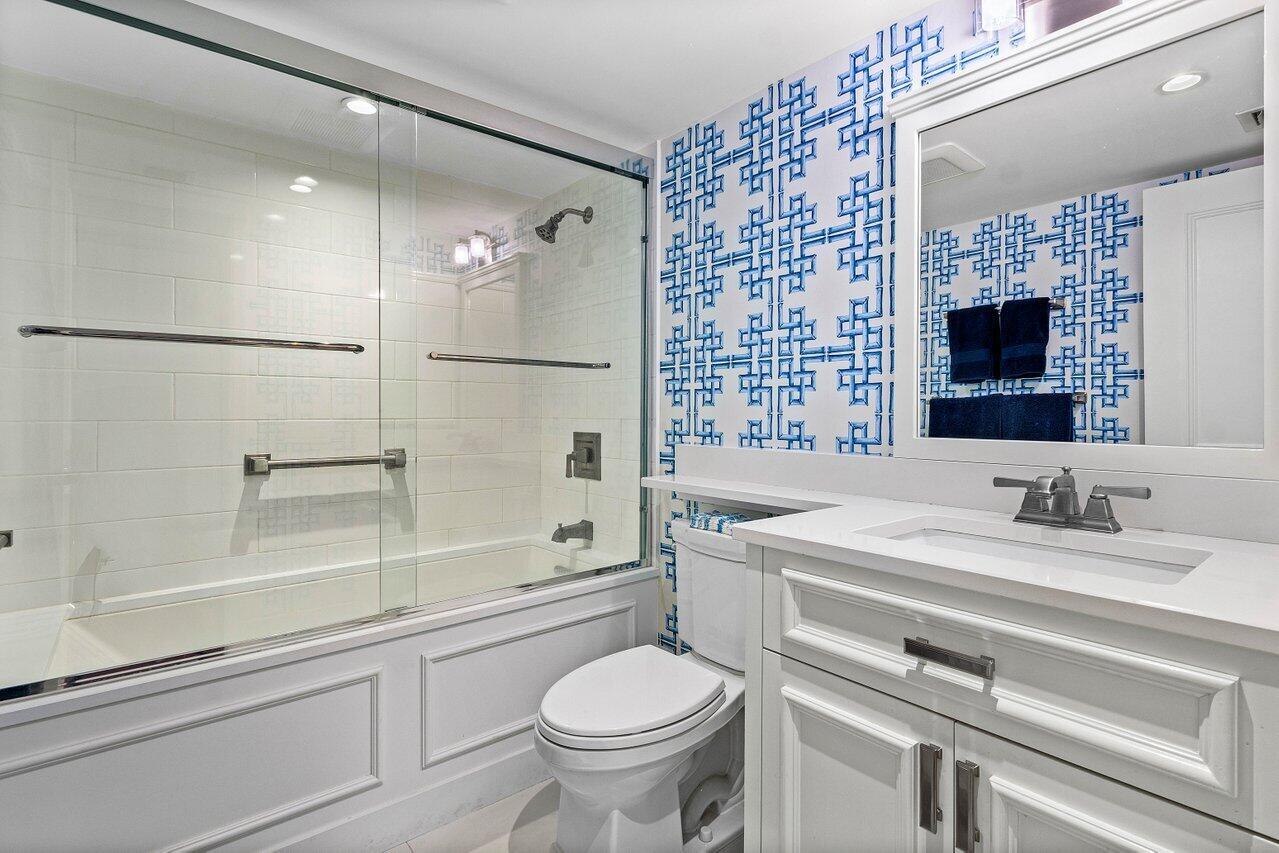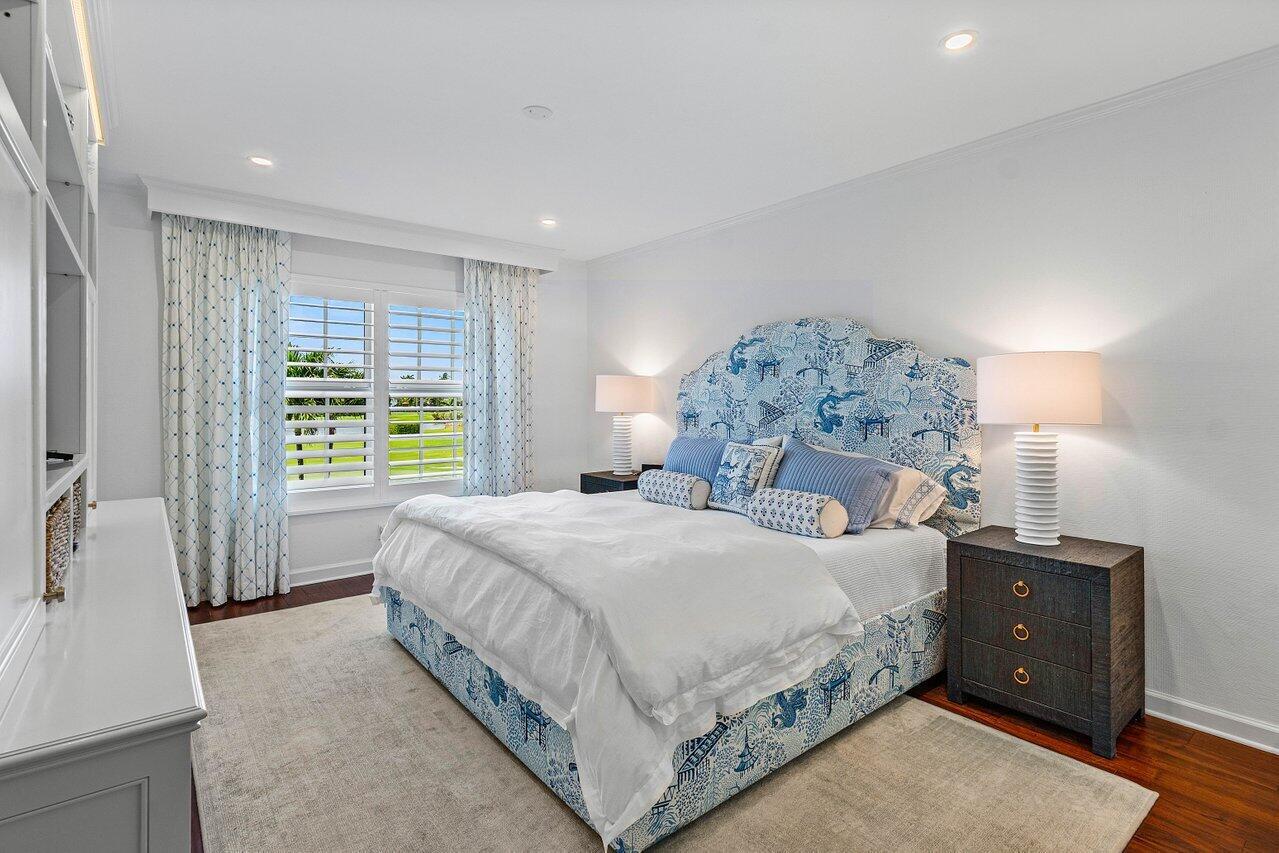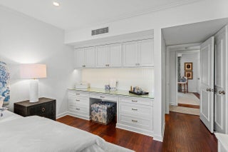 Sweeping views of the St. Andrews golf course, the ponds and the intracoastal waterway, this fully renovated 2/2 apartment with a den boasts spacious living areas perfect for relaxation and entertaining. The residence features built-ins throughout, exceptional woodworking, a separate bar, a modern kitchen, separate laundry room, impact windows, covered parking, gracious entry, and a large storage closet.Situated in the sought-after St. Andrews community, this apartment provides a unique blend of luxury and convenience, with its new West Club house, golf, course, fitness center, croquet, tennis and the beautiful beach and pool.