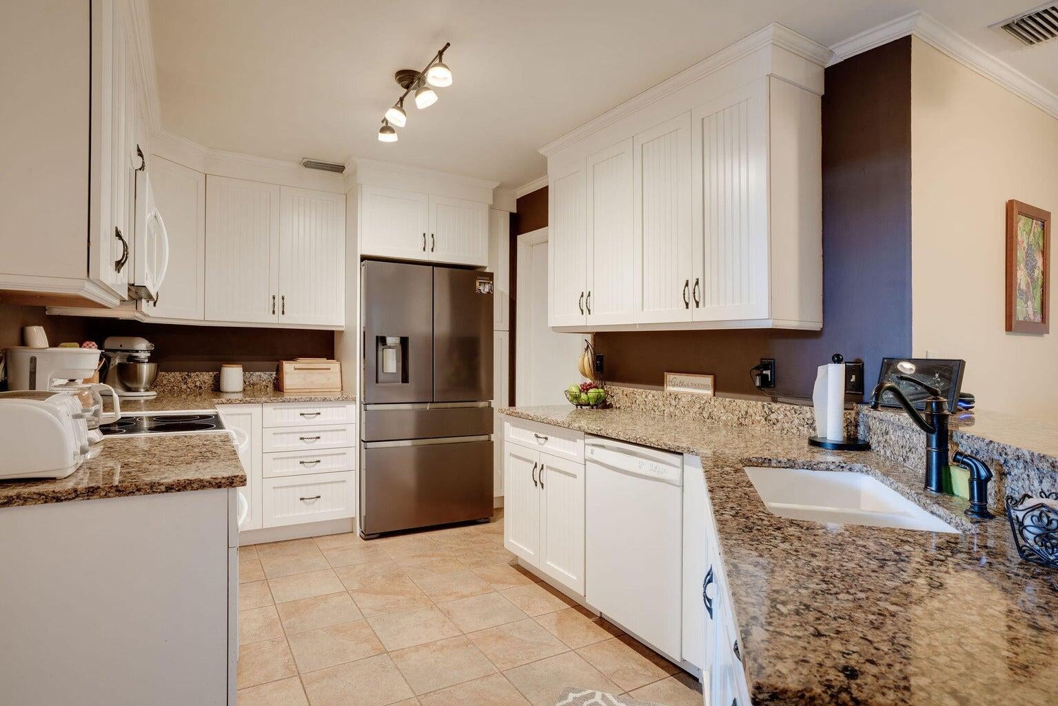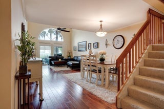 It's your opportunity to own a piece of Florida paradise! Just a short walk from the beach, this 3 Bedrooms, 2.5 Bathroom 1 car garage property is a Juno Beach gem! One of the largest models in the desirable community, Villas of Ocean Dunes, this home offers split-level living with the primary bedroom and bathroom downstairs, 2 bedrooms plus an extra living room upstairs, and an extended screened-in private back patio. Step inside this beautiful townhome with engineered wood flooring on the first level, an upgraded kitchen with newer cabinets, granite countertops, and a stainless steel fridge, and a new roof. Hurricane ready with impact windows and shutters throughout. Community offers a guard gate, clubhouse, pool, sidewalks, and basketball, pickleball, tennis courts, cable, and internet