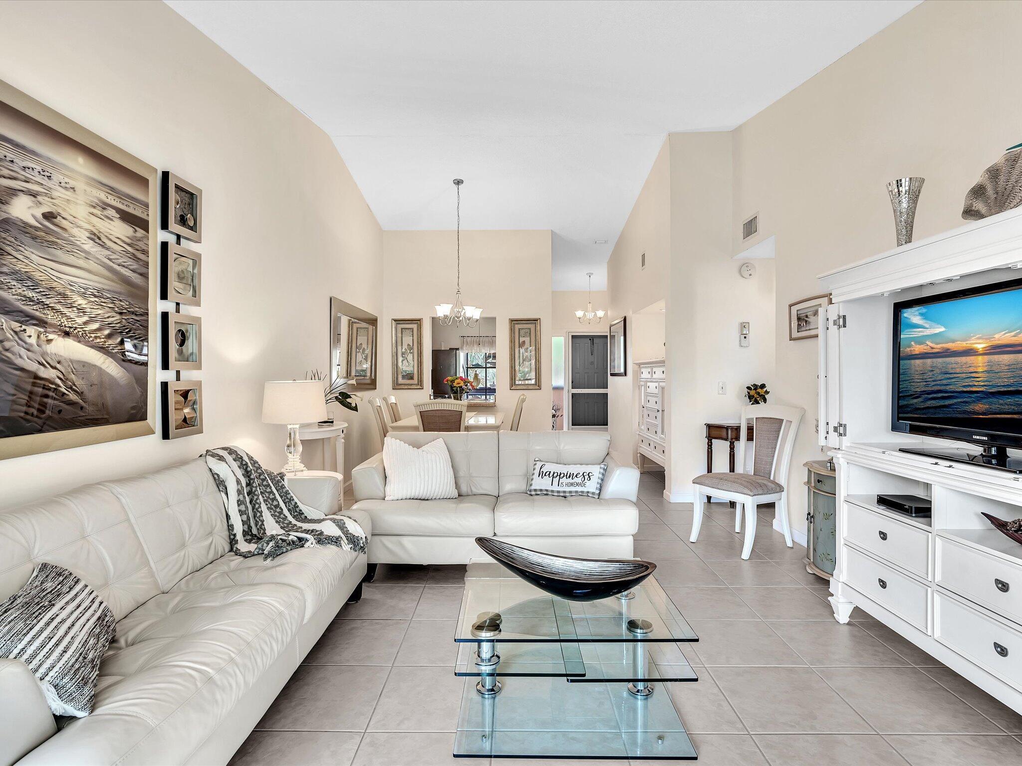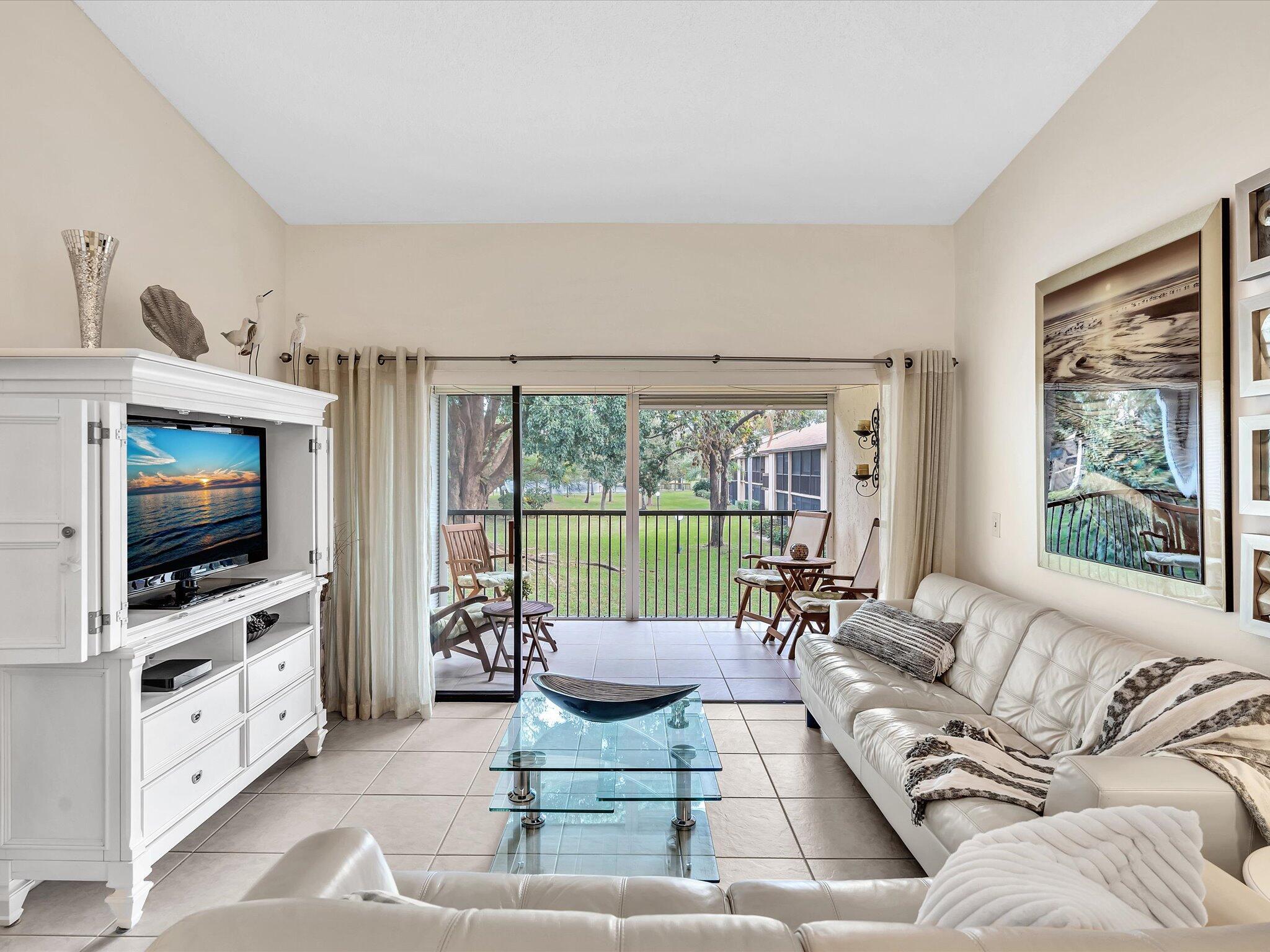 Discover effortless living in this fully furnished 2-bed, 2-bath condo in Meadowridge, Deerfield Beach. Situated on the second floor, this unit boasts volume ceilings for an open, airy ambiance. Relax on the expansive screened balcony with collapsible sliding doors or enjoy the private balcony off the primary bedroom. The split bedroom layout ensures privacy for all. Interior laundry and exterior storage add convenience. Community amenities include a large clubhouse, pool/spa, and fitness area. Ideally located near I-95, Sawgrass Expressway, across the street from Publix, dining, and shopping,10 minutes to Boca Raton, the Beach and Deerfield Beach Pier. Lease permitted after the first year. Move in with ease--everything is ready for you! Approved Condo List-buy with a low down payment!