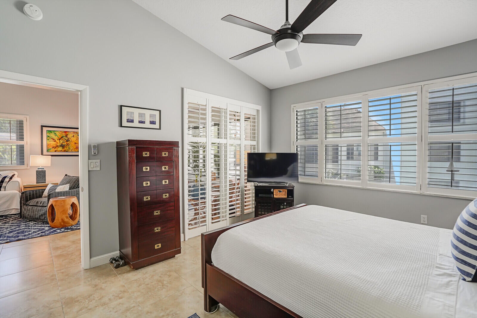 Welcome to your serene coastal retreat nestled in the heart of Juno Beach, within the sought-after gated, intracoastal community of Oak Harbour. This spacious two-level, second-floor condo offers over 2,000 square feet of beautifully designed living space, complete with vaulted ceilings and a screened-in balcony boasting picturesque views of the marina and Intracoastal Waterway.Step inside to discover a bright, open floor plan featuring a modern kitchen with quartz countertops, stainless steel appliances, and seamless flow into the living and dining areas adorned with elegant plantation shutters. The main level is finished with stylish tile flooring, while the upper-level loft showcases warm laminate wood floors, creating the perfect space for a home office, guest area, or lounge.Enjoy resort-style amenities including a private marina with boat slips, two pools, a spa, tennis and pickleball courts, and a clubhouse complete with a gym, kitchen, and entertainment areas. Ideally located just minutes from the beach, fine dining, and boutique shopping, this stunning condo offers the perfect blend of comfort, luxury, and convenience. Don't miss this chance to experience the best of Juno Beach coastal living!