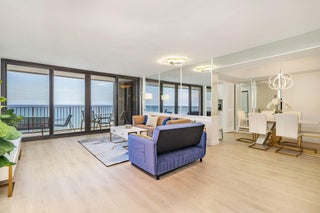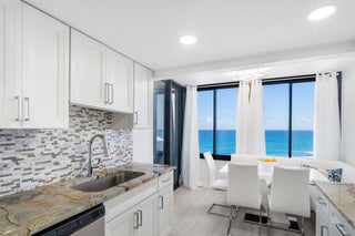 OCEAN LOVER'S DREAM SEASONAL RENTAL! Unobstructed OCEAN VIEWS from every room in this beautiful 3 BDRM + 3 BA renovated Penthouse! Spacious Floor plan with 2 split Master suites, walk-in closets and TV's, plus a 3rd bedroom/office and bathroom for guests. Elegant formal dining room and eat-in kitchen with new cabinets, appliances, washer & dryer, remodeled bathrooms and luxury vinyl wood flooring throughout! Plus, brand new impact glass windows & doors! Enjoy the sun filled living room with sliding doors leading out to a huge balcony overlooking the ocean! This full service building has a 24 hour door-person/security, pool with direct beach access, a clubhouse and gym. Great location near restaurants, shopping, golf and the EAU Palm Beach Resort and Spa.