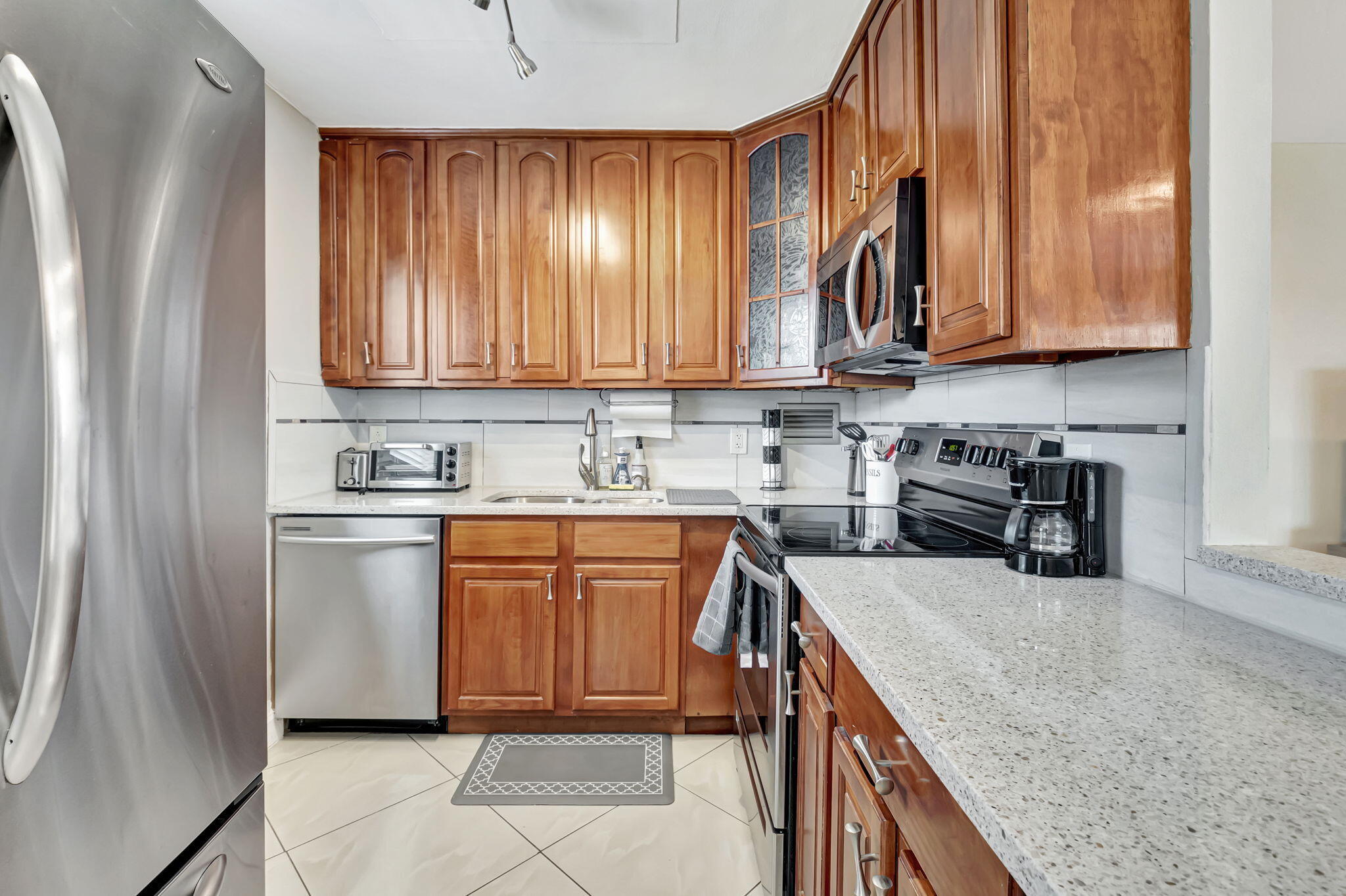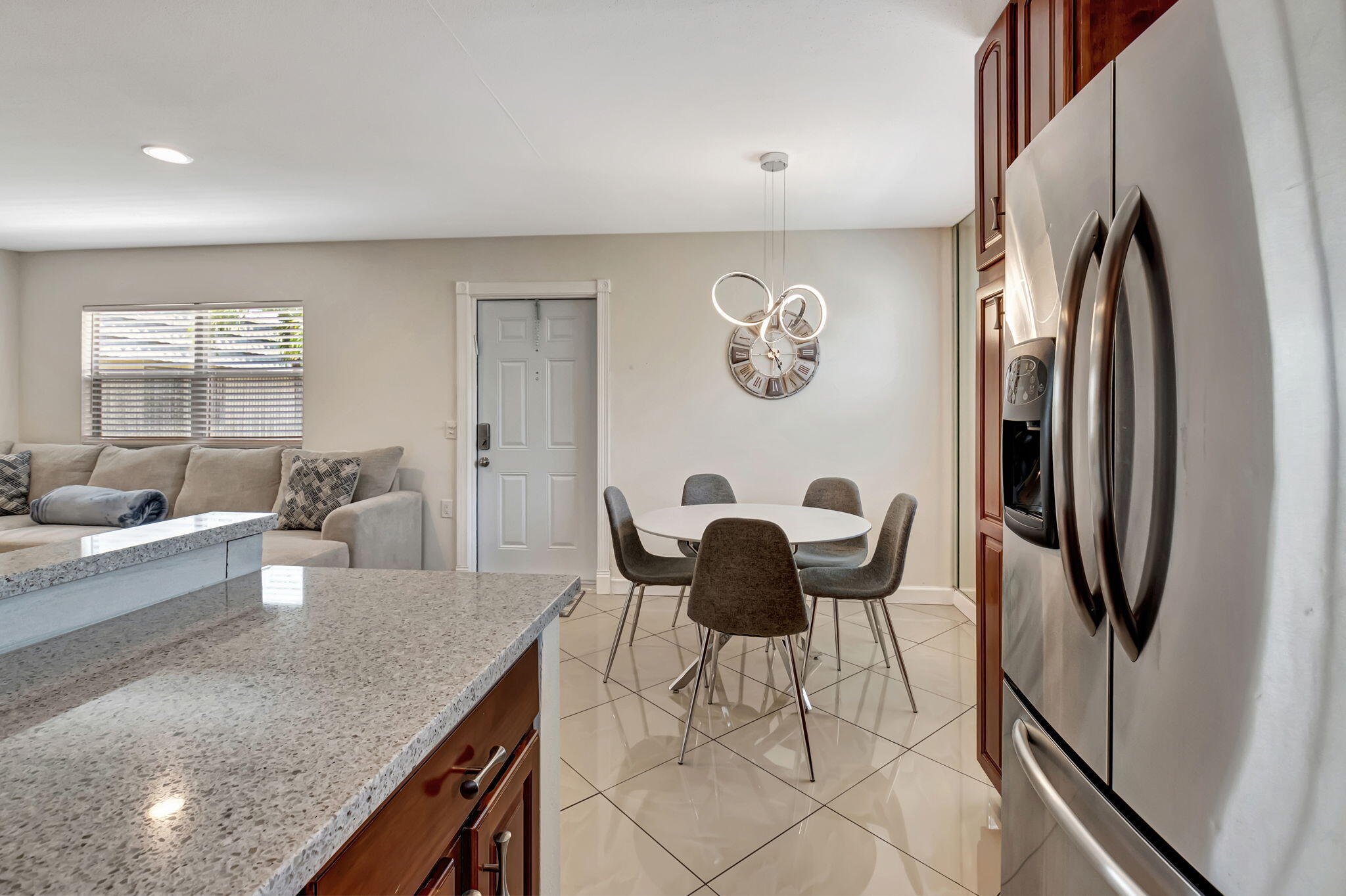 Totally Updated 2 Bed/2 Bath Seasonal Rental Located in the Luxurious Monaco Section of 55+ Kings Point Golf and Country Club. Open kitchen features stunning Quartz countertops, stainless steel appliances and updated cabinets. Updated light fixtures, recessed lighting, and newer fans. Totally Updated bathrooms with walk in tiled showers and glass shower doors. Gorgeous lake views from the patio. Washer and dryer located in the utility closet in Patio for your convenience. Kings Point offers two18 Hole Golf Courses, indoor/outdoor pool, tennis courts, theater, Cafe and Bistro. Minutes from Downtown Delray! Beaches, and much more!!
