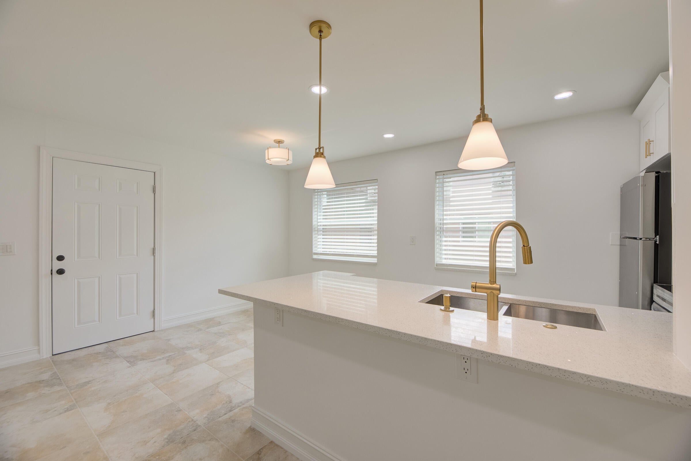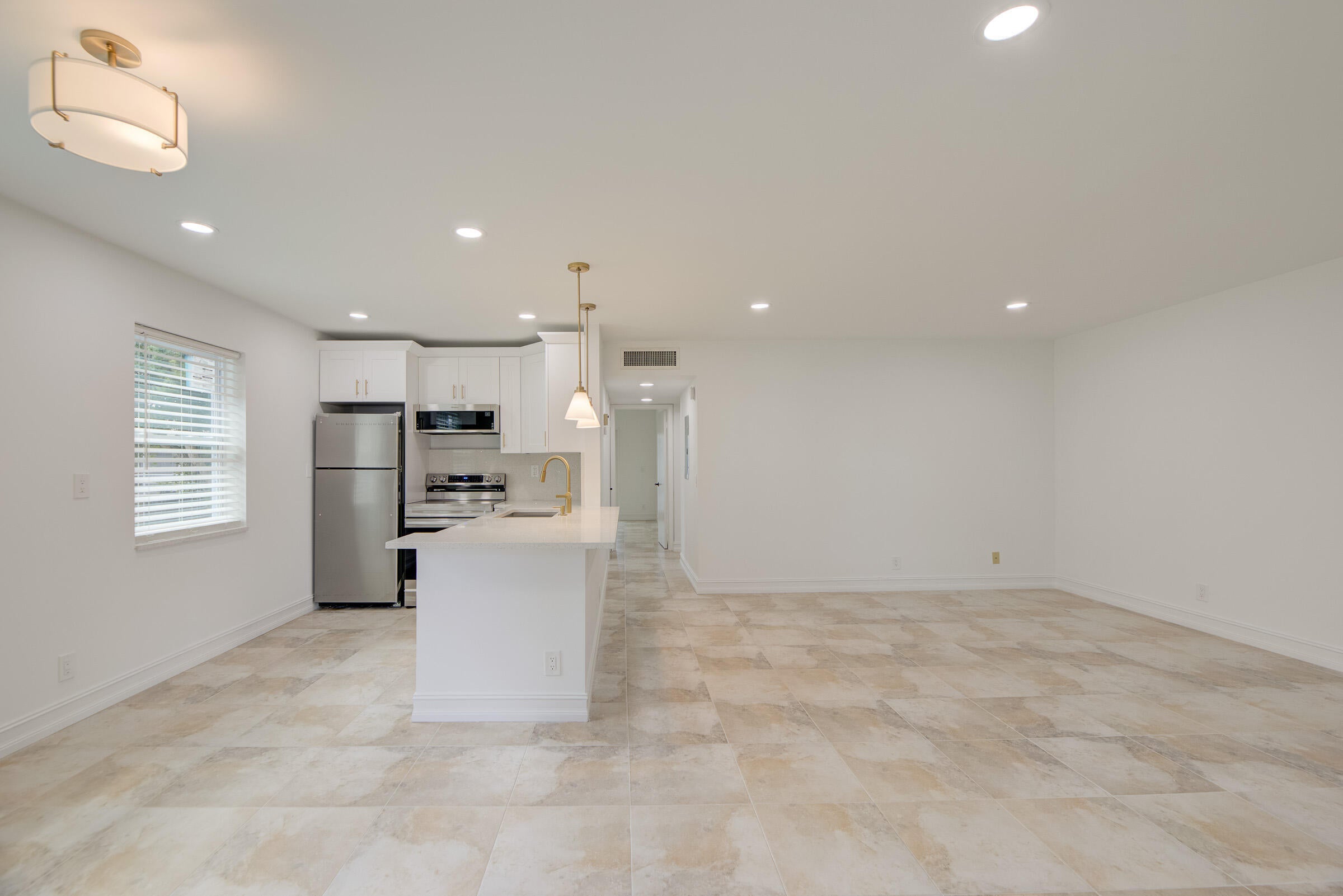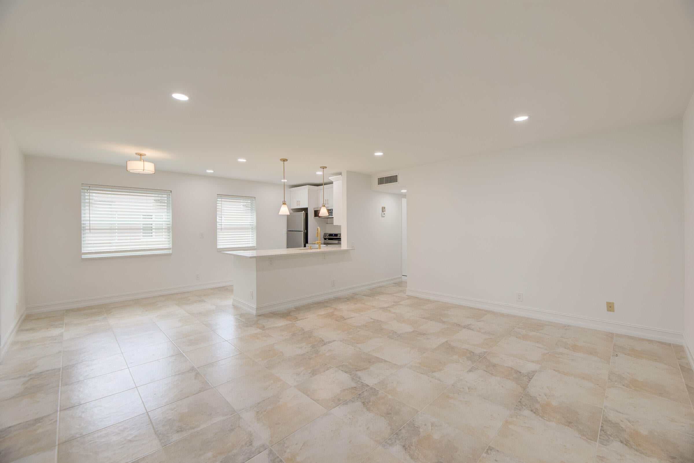 Stunning 2-bedroom, 2-bath unit fully renovated with a modern touch. Features white quartz countertops, sleek white cabinets with beautiful finishes, and stainless steel appliances. Tile flooring throughout the entire unit. Gorgeous bathrooms with walk-in showers. Washer and dryer conveniently located in the unit. Enjoy resort-style living in Kings Point, a 55+ community offering a wide range of amenities including pools, golf, clubhouse, fitness center, and more. Move-in ready!