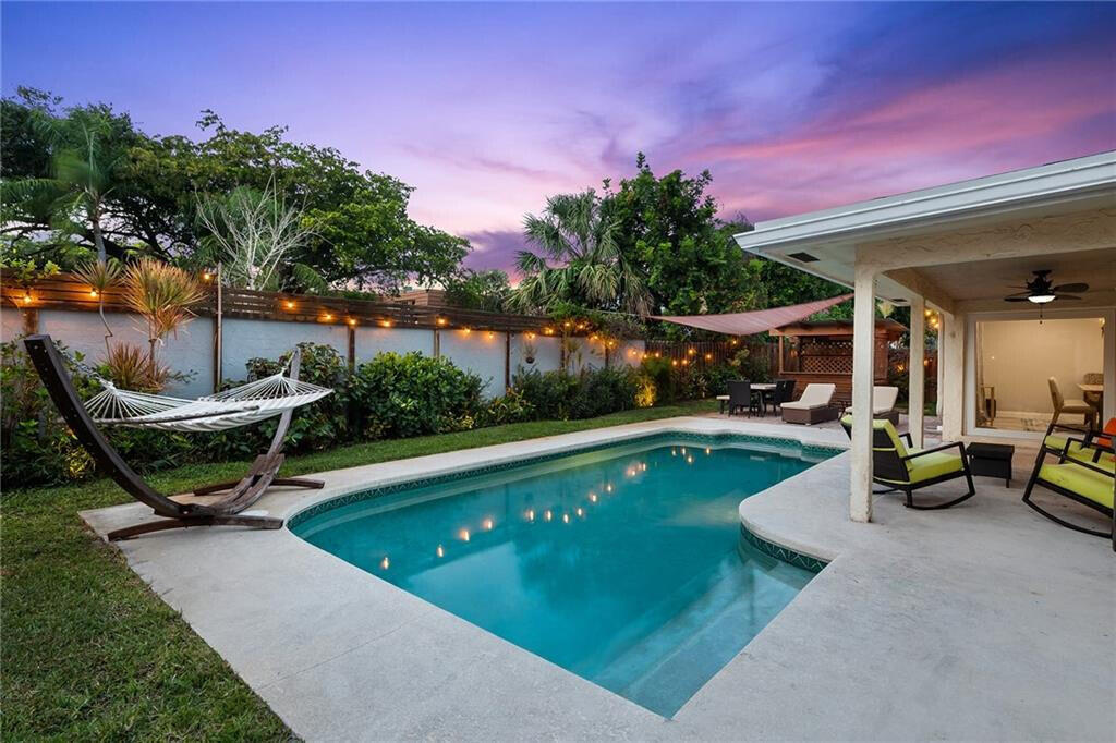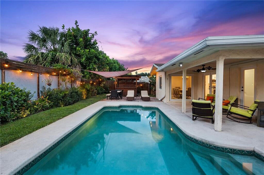 Introducing this updated 3-bedroom, 2-bathroom pool home located in the highly sought-after Tropic Palms neighborhood, just minutes from Atlantic Avenue's vibrant downtown and Delray Beach--recently voted Florida's #1 Beach by USA Today for 2025 once again. This residence features impact windows and doors, a newly renovated kitchen (2022), fully remodeled bathrooms (2019), and a brand-new main roof installed in 2025. Upon entry, you're welcomed by modern upgrades including LED lighting that highlights the upgraded kitchen, premium countertops, and high-end tile and vinyl flooring throughout. Additional enhancements include a newer electrical panel (2018) and a 1-car garage. The fully fenced backyard is perfect for outdoor living and entertainingfeaturing professional landscape lighting, a built-in speaker system (indoor and outdoor), and a covered patio overlooking the private pool. This move-in ready home offers comfort, convenience, and low-maintenance livingideal for end users, second-home buyers, or investors seeking strong rental potential. Schedule your private tour today.