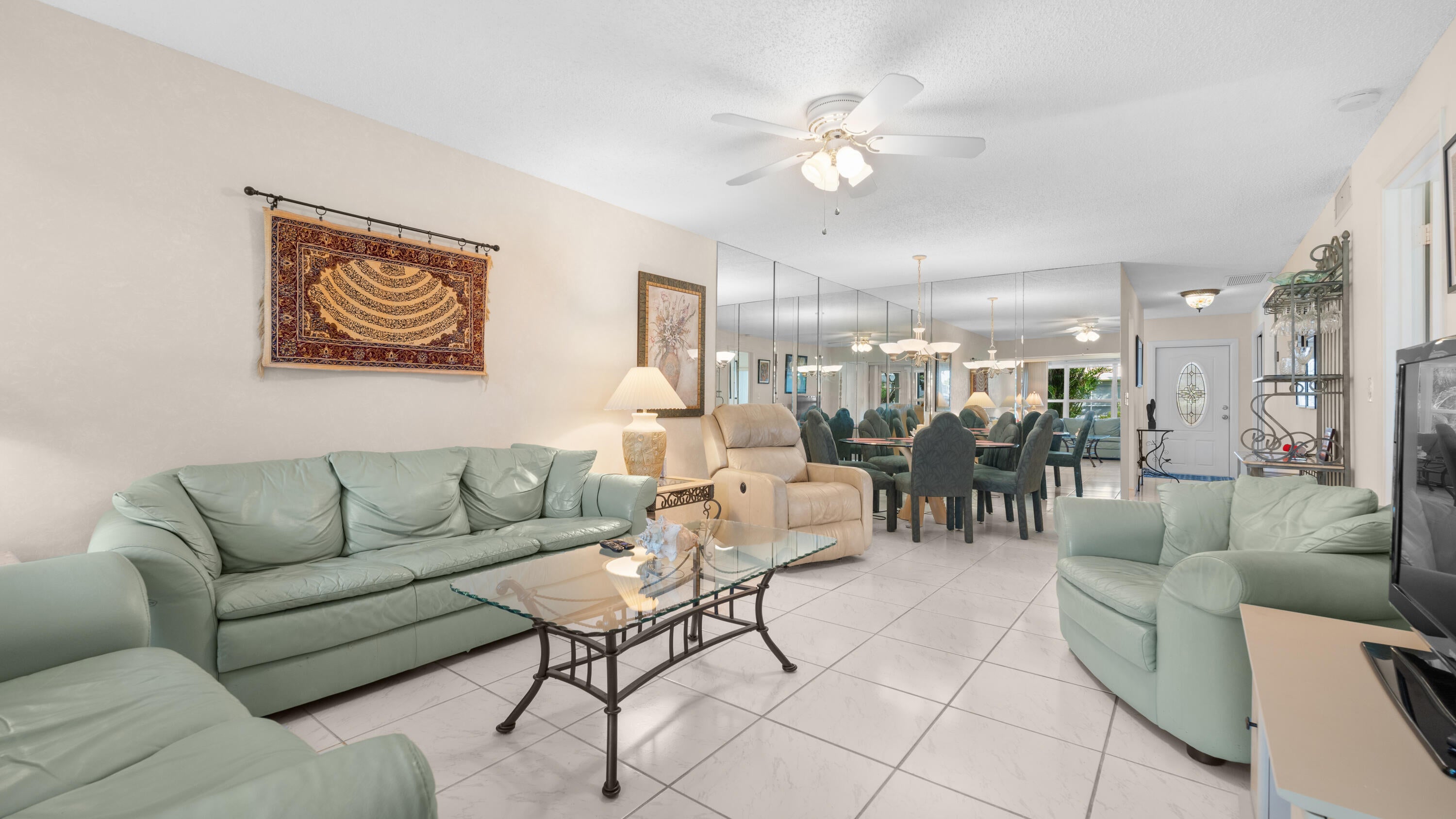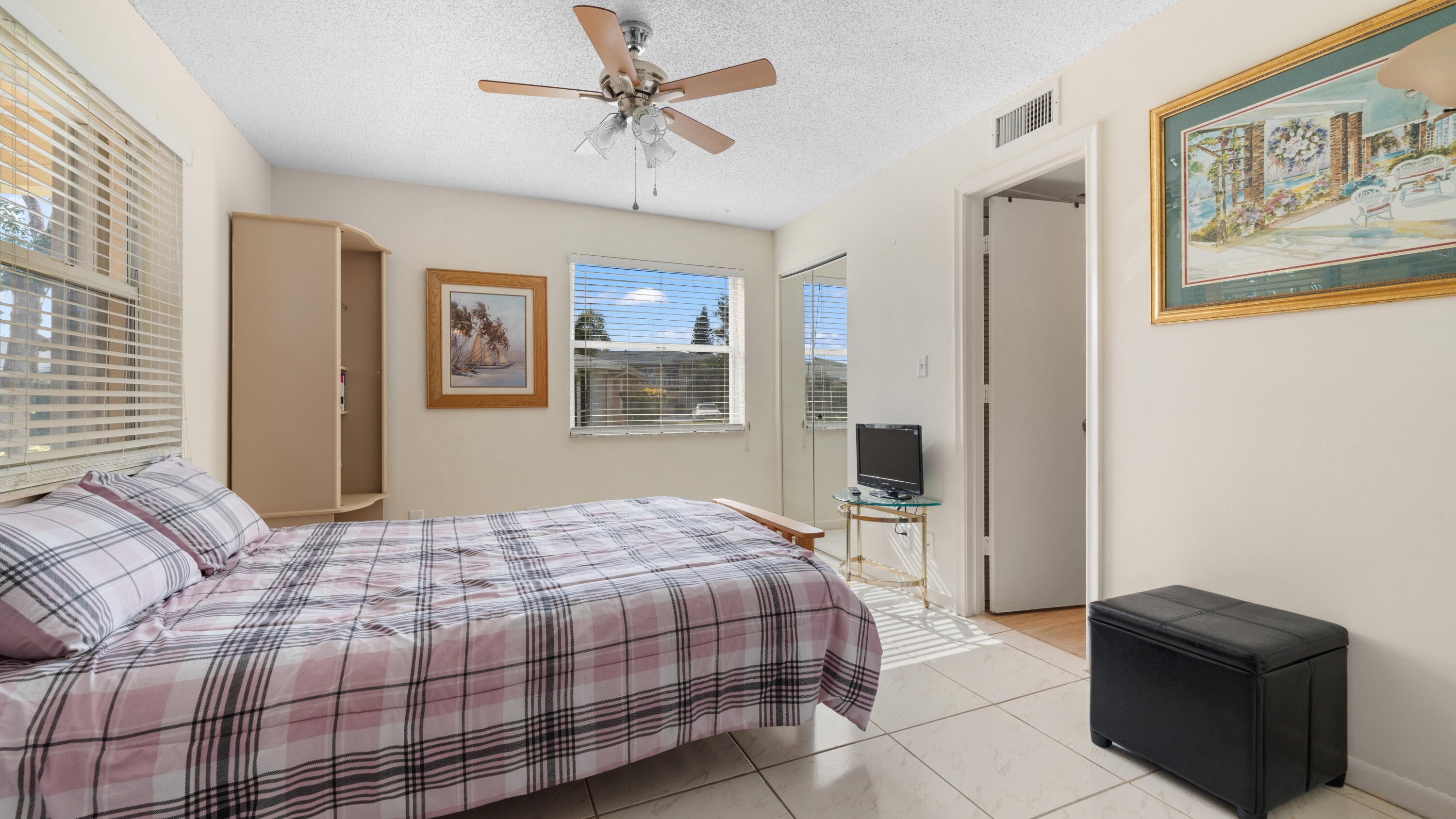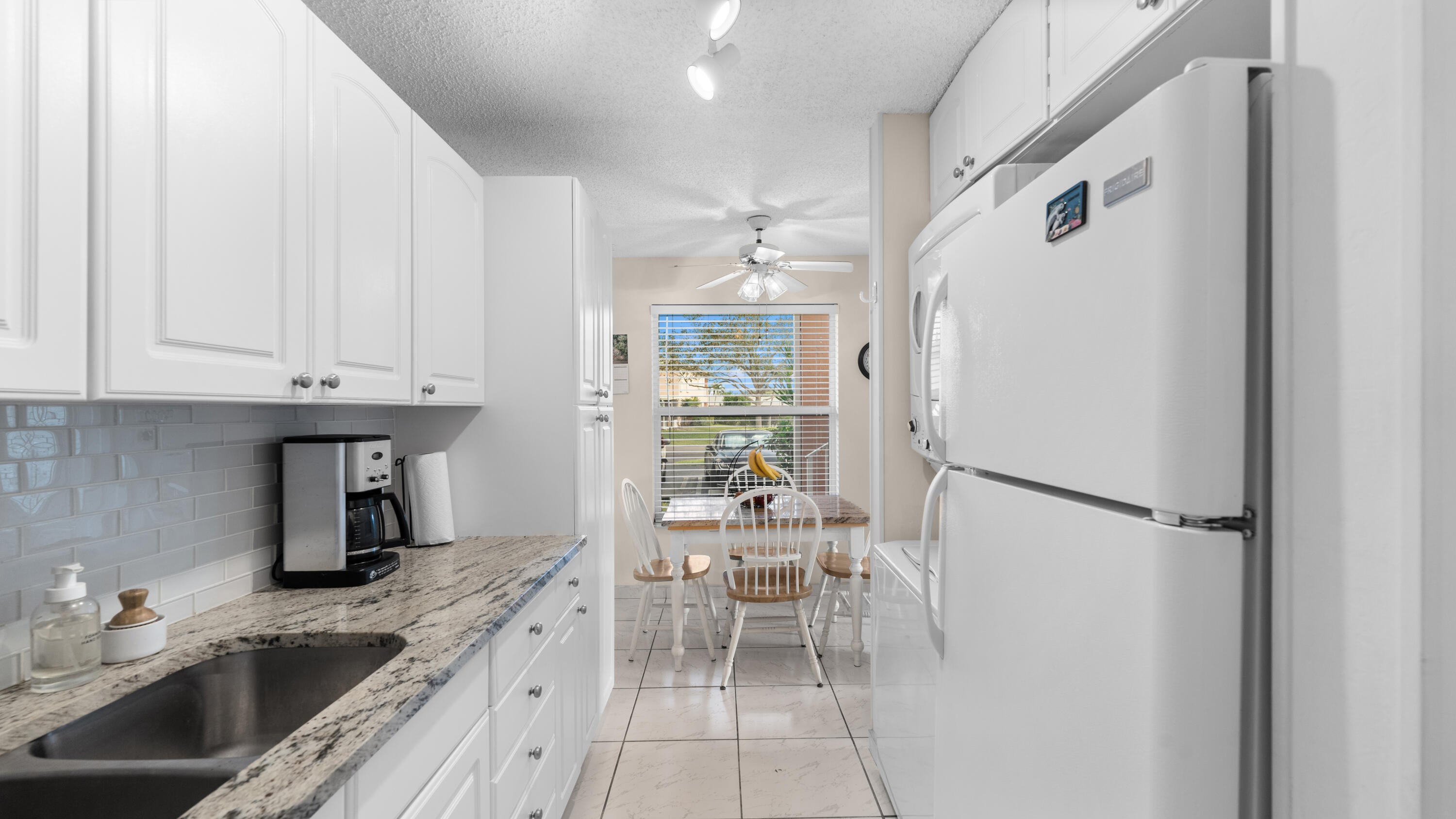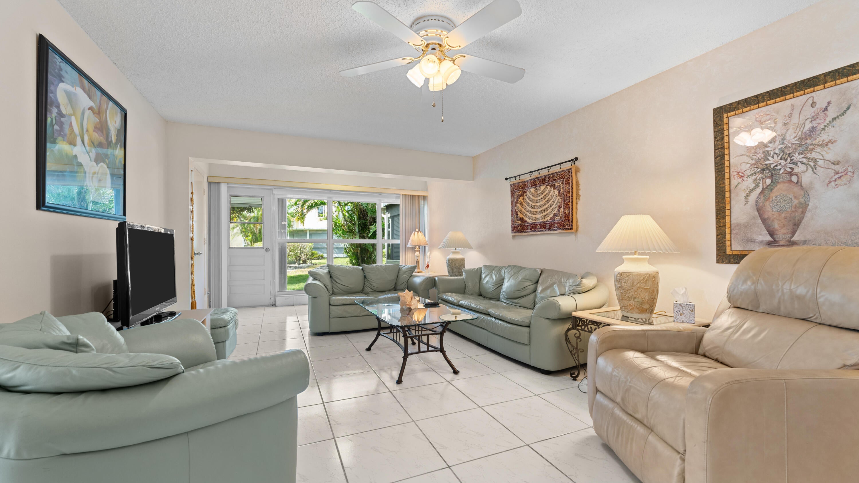 Many upgrades in this lovely 1st floor (no steps) corner unit that is filled with natural light. Marble counter tops in the upgraded kitchen and glass tile back-splash with matching white appliances. Ceramic tile throughout, professional paint, roller storm shutters on patio, fans throughout, beautiful front door and the list continues. You are a short walk to the clubhouse for a game of cards, or for more activity , close to the tennis courts, not forgetting that Atlantic Ave with all the shops , restaurants and weekend markets is an easy walk or a very short car drive. This unit boasts an extra large master bedroom with room for equipment and your patio is bathed in sunlight as you look out over a serene green garden, and did I mention it is sold furnished? Come make it yours.Everything is here and move in ready to start living the great life you deserve