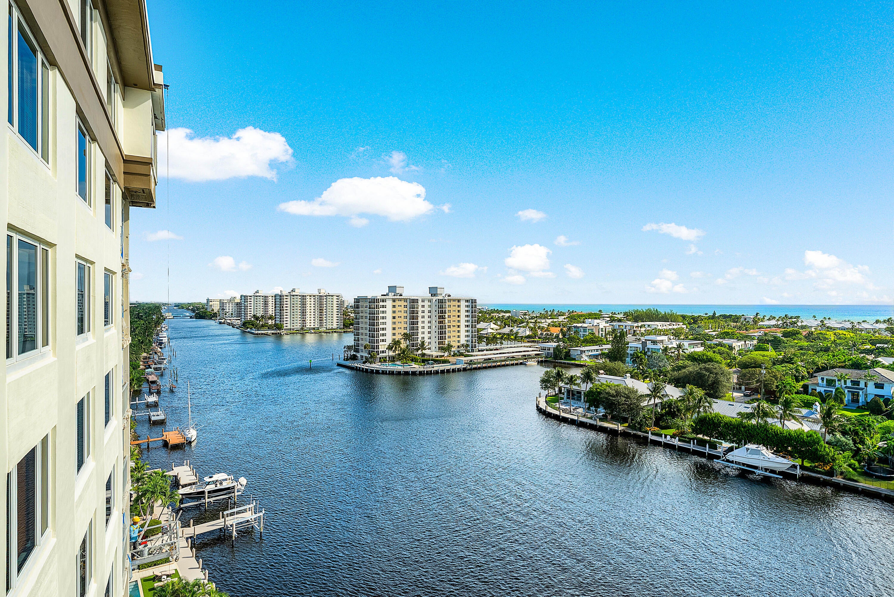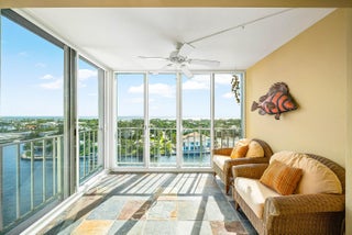 East Delray, Waterfront with Ocean and Intrcoastal Views, and close proximity to Atlantic Ave for under $500,000. This incredible 1/1.5 is located on the 11th floor of The Barrton. The short distances (.64 miles) to Atlantic Ave. and (1.2 miles) to the beach makes this a very desirable building in Delray. 24/7 security. Impact windows. New Bosch AC Unit and hot water heater. Parking space close to entrance. Association application fee is $150 and deposit is a $500 refundable move-in deposit. Financing requires 20% down. No rentals allowed. No Pets. No Washer and Dryer in unit. Common laundry room on each floor. Additional 107 sq. ft. of the enclosed porch area is included in the living sq. ft. All measurements are approximate and subject to error, omission, and changes without notice.