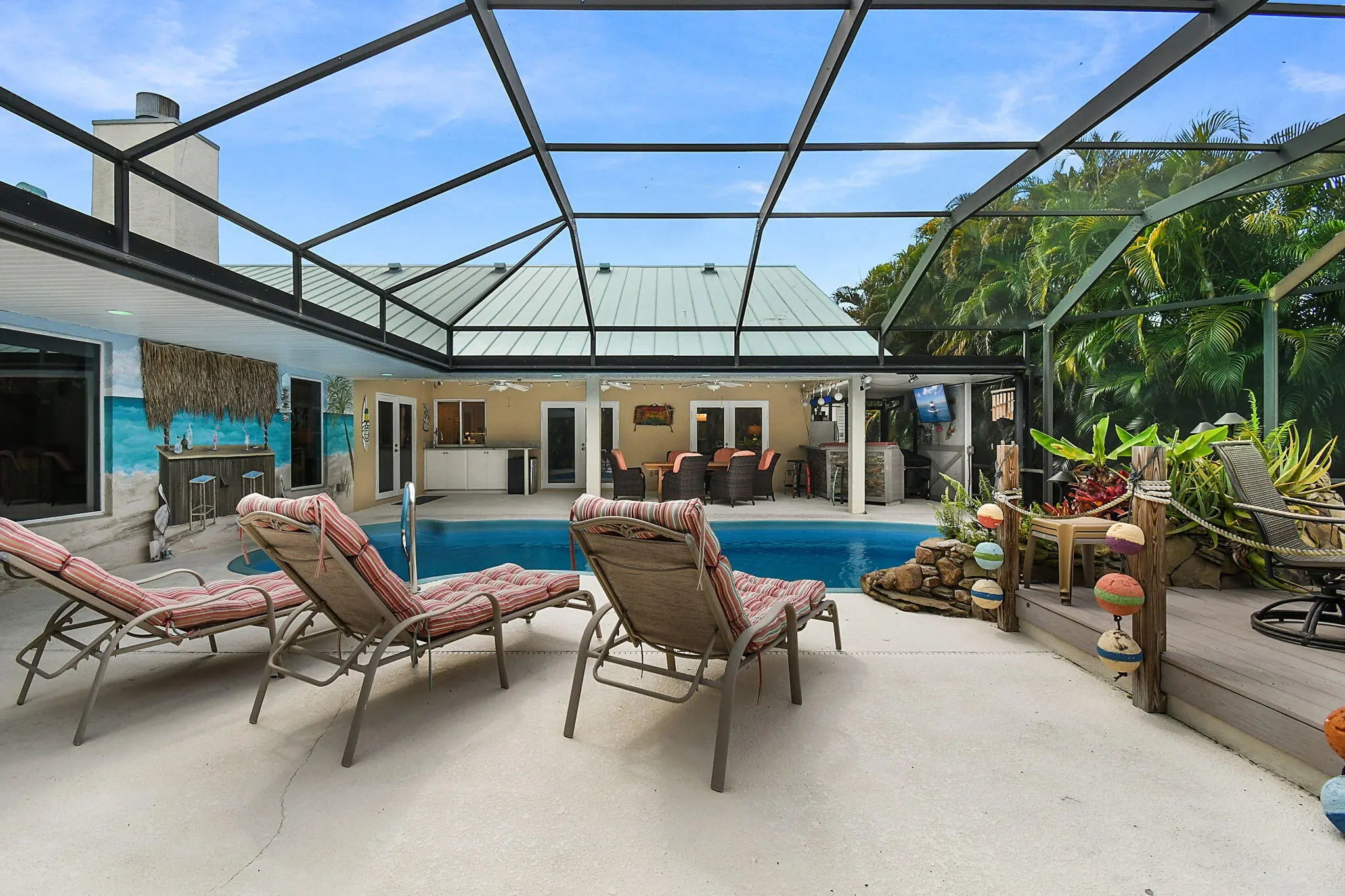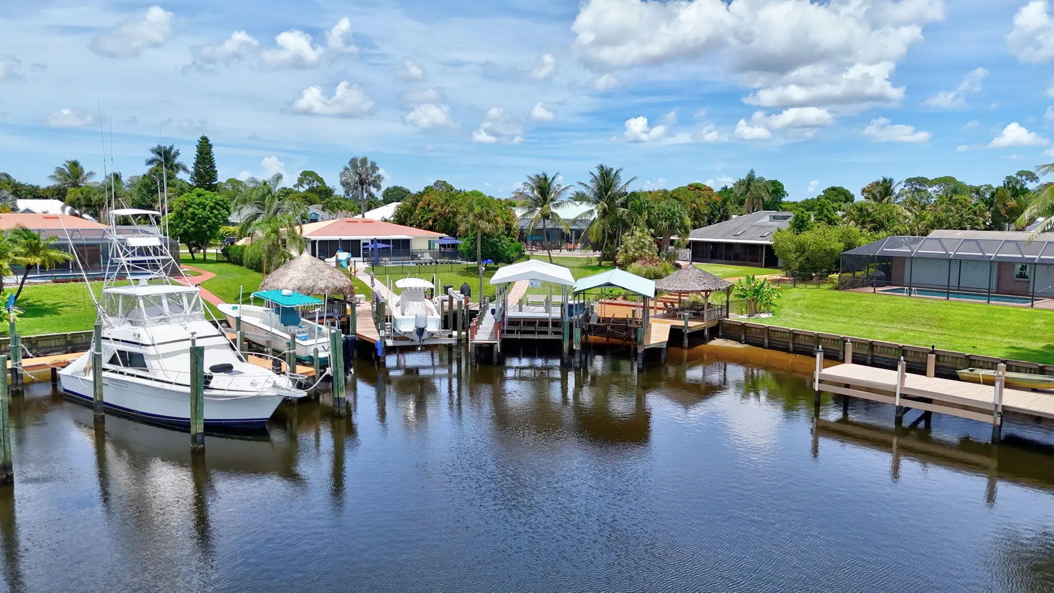 Waterfront Paradise with Ocean Access -- Ideal for Boaters & RV Enthusiasts!Welcome to your South Florida coastal retreat! Perfectly situated on a premium corner lot with direct ocean access and no fixed bridges, this stunning CBS home offers 4 spacious bedrooms, 2 updated baths, and a 2-car garage. Meticulously designed for both comfort and entertainment, the property boasts a screen-enclosed pool and expansive patio, seamlessly blending indoor and outdoor living. Boating enthusiasts will appreciate the private dock with lift, full electric and water hook-ups, while RV owners will find the rebar-reinforced driveway with dedicated A-Class RV parking, complete with electric service, a rare and invaluable feature. The circular drive provides ample guest parking for effortless entertaini