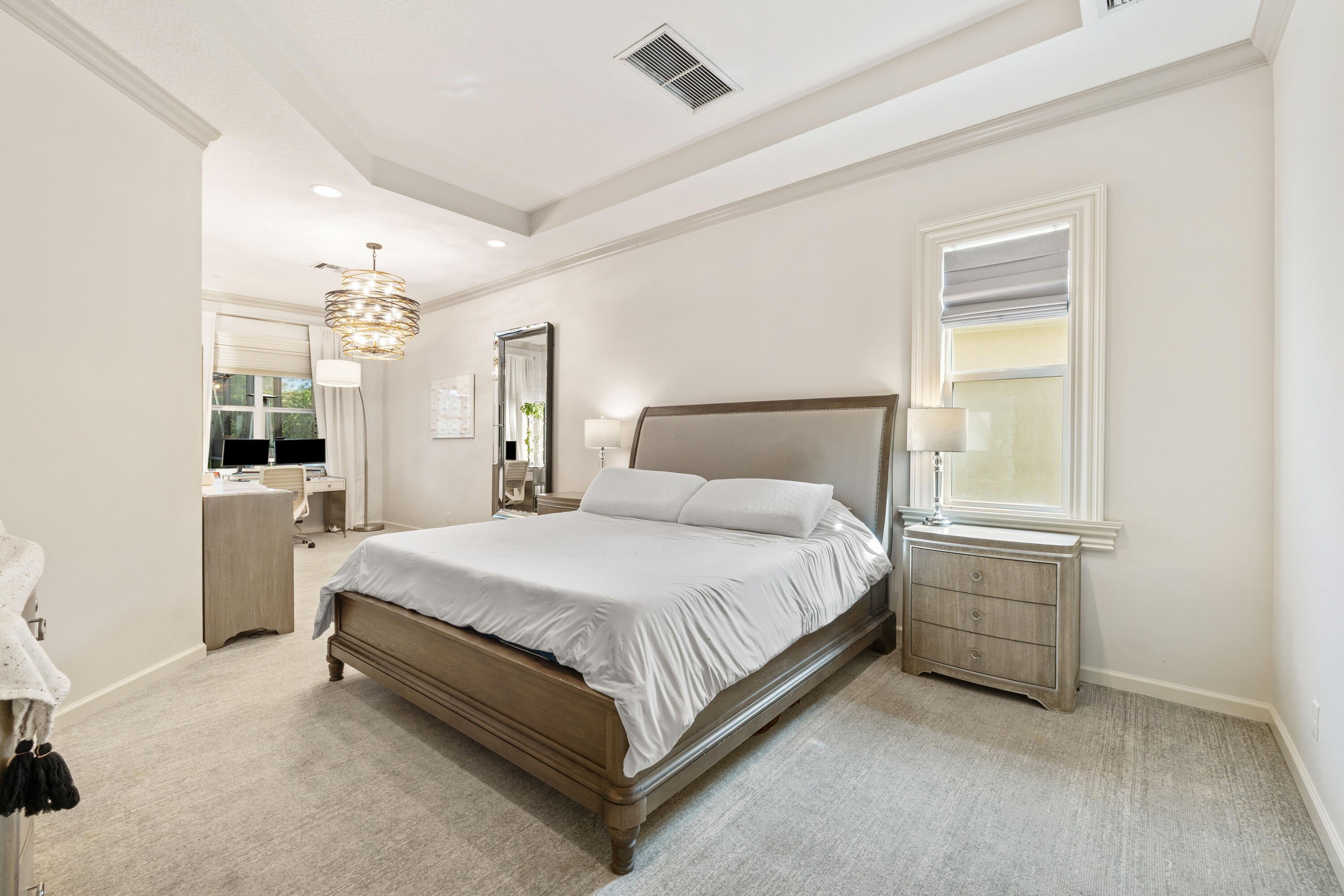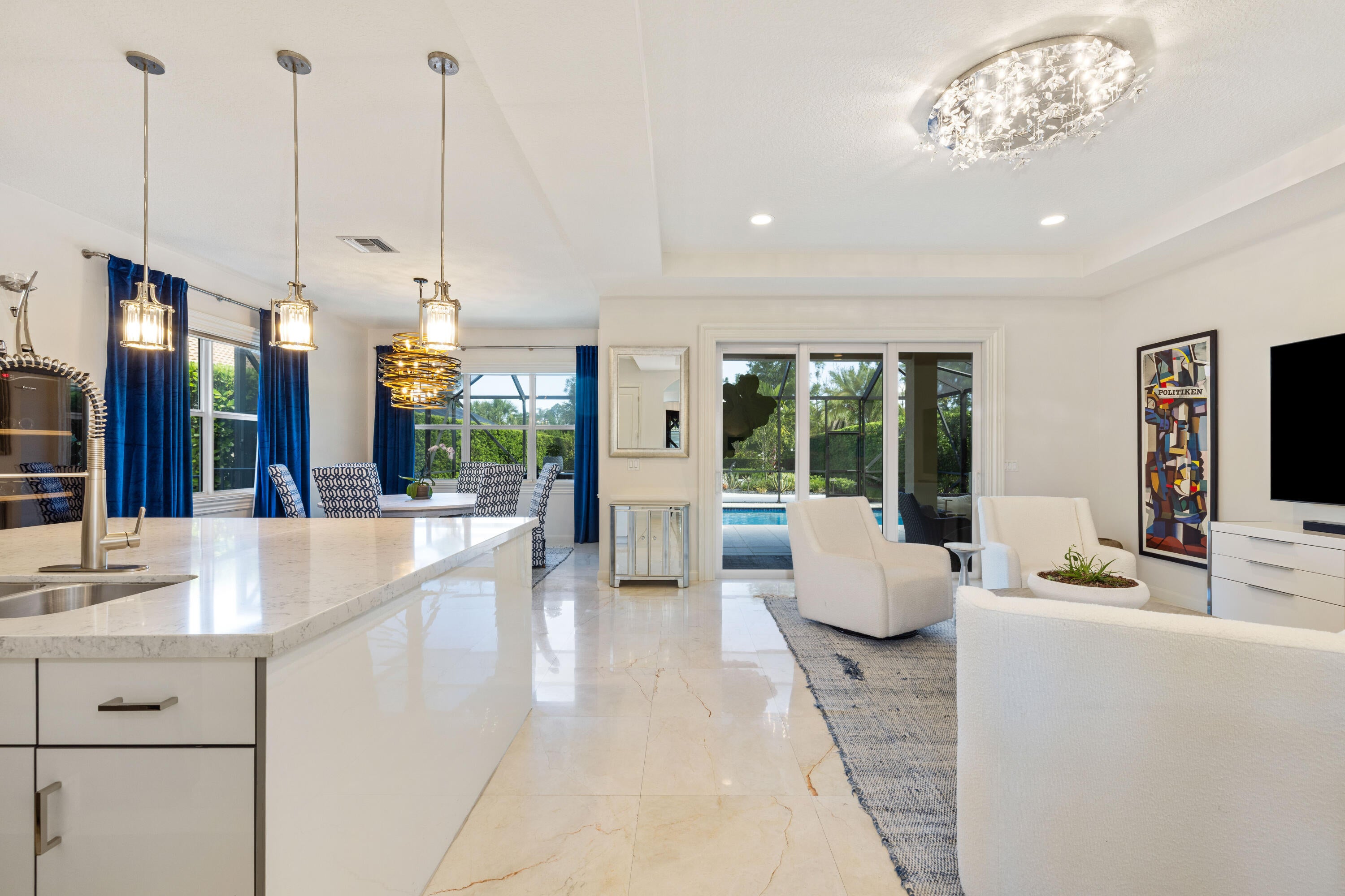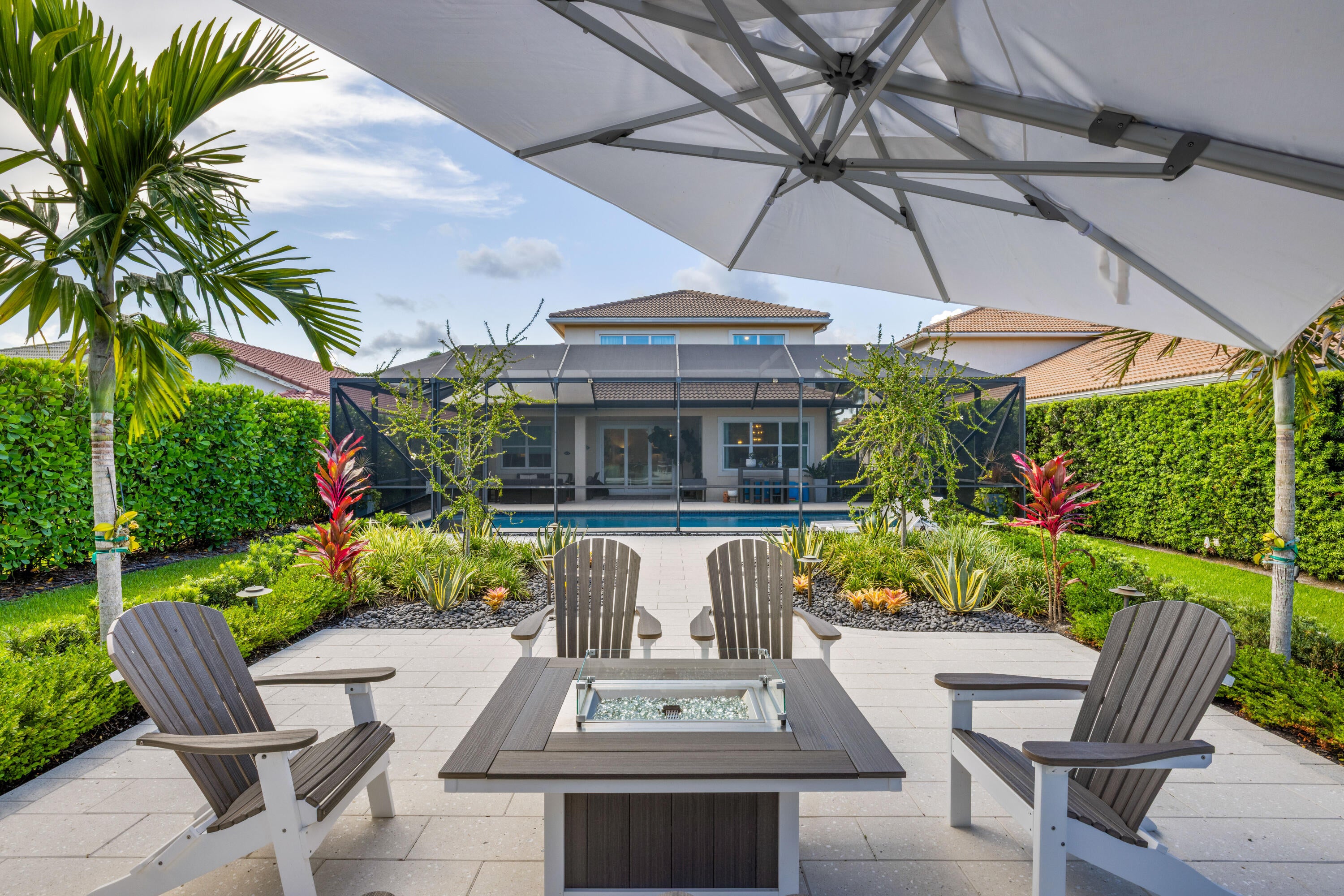 Welcome to 188 Carina Drive, a beautifully updated and meticulously maintained residence located in the prestigious Jupiter Country Club. This stunning home offers 3,598 square feet of thoughtfully designed living space, featuring 4 bedrooms, a versatile loft, and an office or den that can serve as a fifth bedroom.The main level showcases elegant marble flooring and includes the spacious primary suite on the first floor, offering privacy and convenience. All additional bedrooms, along with the loft and office/den, are located upstairs, providing the perfect layout for families, guests, or working from home. The loft makes an ideal space for recreation, a media room, or a second home office.A gourmet kitchen with luxurious finishes and new appliances opens to the main living areas, making it perfect for both everyday living and entertaining. The home also includes a new water heater, offering added peace of mind. Step outside to your own private backyard oasis, where lush landscaping surrounds a sparkling heated pool enclosed by a screened-in lanai, adding extra comfort and year-round enjoyment. You'll also enjoy a large yard with beautiful green space and a well-appointed outdoor entertaining areaperfect for relaxing or hosting guests. The home is perfectly located within the community, offering privacy while being just a short distance from the clubhouse and amenities. This home includes a highly sought-after golf membership and grants access to the exclusive amenities of Jupiter Country Club, including a newly renovated clubhouse, a Greg Norman-designed 18-hole golf course, two resort-style pools, a state-of-the-art fitness center and spa, as well as courts for pickleball, tennis, and bocce. Enjoy fine and casual on-site dining, a vibrant social calendar, and a welcoming, active lifestyle. Located just minutes from beautiful beaches, top-rated schools, and upscale shopping and dining, 188 Carina Drive offers the ultimate blend of luxury, comfort, and South Florida charm. Don't miss your chance to own this exceptional home in one of Jupiter's most desirable communities.