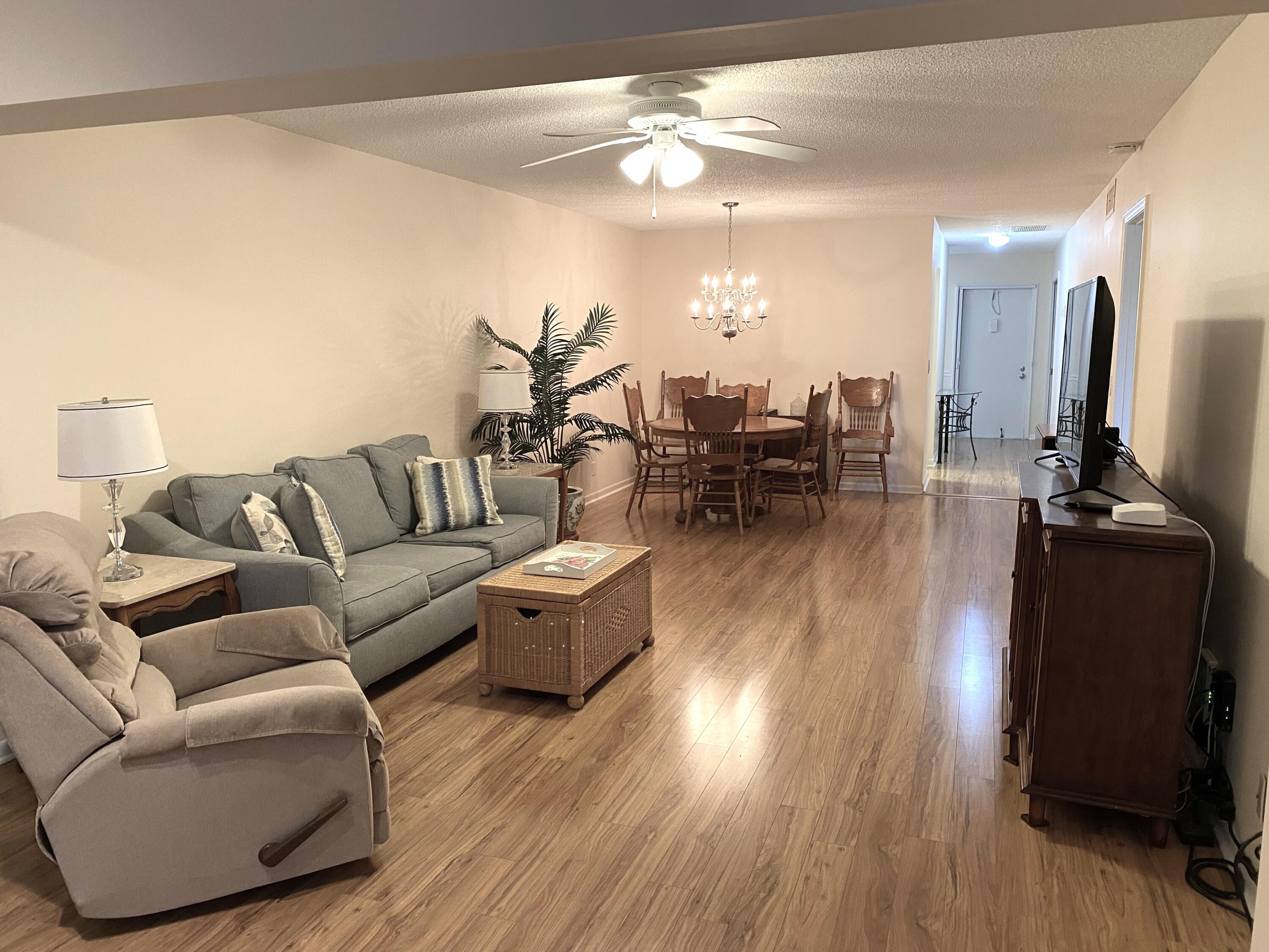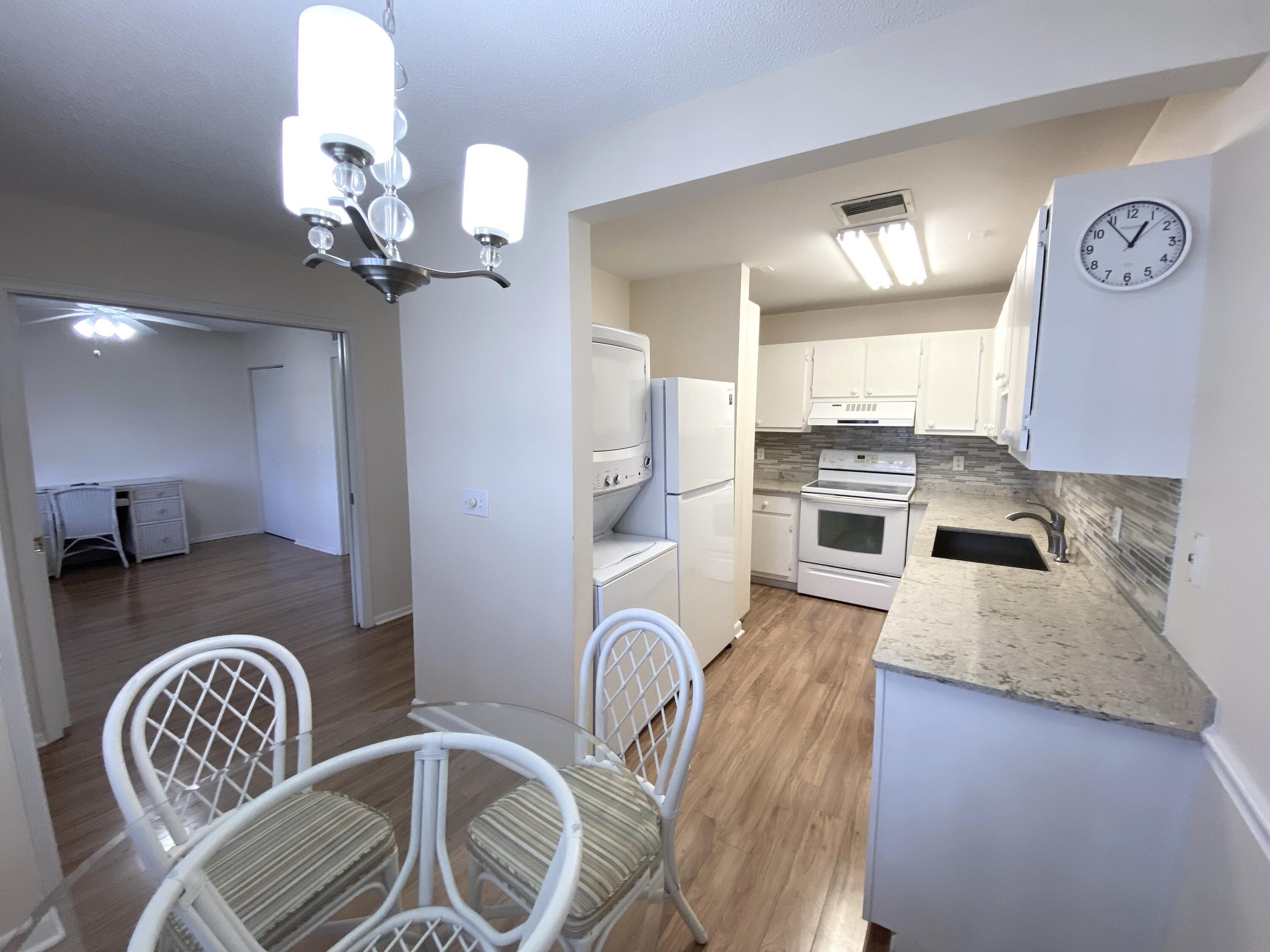 Pines of Delray West. Just reduced to $151,500 ---the lowest priced 1st floor 2/2 in any of the ''Pines' communities. Plus it has a 16 x10 screened patio!! NO CARPETING! NO WALLPAPER TO REMOVE! NO WALL MIRRORS TO REMOVE! NO DOME CEILING IN KITCHEN! NO MICA COUNTERTOPS! ANDNOT BACKING TO LINTON BLVD! ''Greenland Creek'' maple laminate plank (51''x 5'') flooring throughout, smooth ceiling eat-in kitchen with quartz top counters, subway tile backsplash and 10'' deep s/s Vigo sink. There are also hurricane panels for all windows, PGT windows in the living rm and master bdrm; Carrier ac system and a 2024-installed 30 gallon Rheem water heater. Pines West has the lowest monthly condo fee ($555/M) of any of the ''Pines''. And it includes water, cable and internet service. ALL NEW ROOFS!! 2915 SW 15TH STREET APARTMENT #103 (Parking Space # 186) @The Pines of Delray West Condominium A friendly active adult (55+) community built on 35.3 acres in 3 phases from 1978-1979 , the Pines of Delray West is comprised of 43 buildings (with 288 total units) plus a 6,840 sqft clubhouse, a 60 ft x 30 ft heated pool, bocce/pickleball/tennis courts. Plus the community is only a 2.6 mile drive to the Atlantic Ocean and a 3.5 mile drive to the ever-popular "Downtown Delray" with over 120 dining options. Monthly condo fee: $555 : One the lowest around that INCLUDES water & sewer, cable & in-unit WIFI (Fision Fiber-Optic technology through Hotwire Communications), maintenance and repair and replacement of roofs (all roofs replaced in 2022-2023), building insurance, exterior painting(all building painted in 2021), fully funded reserves, on-site property management and use of the clubhouse, pool, fitness room, billiard room, library, and sports courts. Just reduced to $151,500 FIRM Easy access first floor location. 2 bedrooms and 2 full bathrooms within a generous 1167 square feet of living space. *Plus step outside from the living room into your private 160 square foot screened patio with storm roll-downs. Throughout the interior you'll find durable Bennington Lake Greenland Creek Maple laminate plank flooring that is both high-density and wear-ressistant.The bevel-edged design adds sophistication to the planks that measure 50.79 inches in length and 4.96 inches in width. *The eat-in kitchen spans an impressive 17 feet with elegant quartz countertops that are complimented by a stylish subway tile backsplash. *Plus there's a Vigo stainless steel sink that is an ample 30 inches long and 10 inches in depth - to easily accommodate the largest pots. *The expansive 29 foot long living room/dining area is great for entertaining and is is bathed in light from its 2007 PGT windows. *There are also hurricane panels for all the windows; 3 paddle fans; 2 walk-in closets in the master bedroom and a quartz top vanity in the master dressing area. APPLIANCES SAMSUNG REFRIGERATOR (2021) MODEL# RT18M6215WW/AA SN# 0EG04DBR101106B 29 Inch Top-Freezer Refrigerator with 18 cu. ft. Total Capacity, FlexZone, Twin Cooling Plus , Slide and Reach Pantry Drawer, Dual Vegetable Bins, Adjustable Glass Shelving, Ice Maker, ENERGY STAR and Star-K Certified: White WHIRLPOOL RANGE (2005) Model: RF378LXPQ 1 S# RS4119814 30 Inch Freestanding Electric Range; AccuBake Heat Distribution System; AccuSimmer Element; elf-Cleaning Oven with Auto Self-Clean Latch; pswept Ceramic-Glass CleanTop Cooktop; two 6" and Two 6"/9" Dual-Circuit Radiant Elements; Super Capacity 4.65 cu. ft. Oven; Glass Oven Door with Extra-Large EasyView Window. GE ABOVE-RANGE EXHAUST FAN WHIRLPOOL DISHWASHER (2005) MODEL# DU93OPWPQ0 S# FS3935245 Full Console Dishwasher with 5 Automatic Cycles, Self-Cleaning Filter & Electronic Controls; 5 Level Wash; Extra Large Capacity; Quiet Wash Sound Package; Temperature Senso Hard Food Disposer with Self-Cleaning Filter; Control Lock; and 5 Automatic Cycles INSINKERATOR DISPOSAL (2022) Model: Badger 5-89A S#2202145504-45 1/2 HP Garbage Disposal features a 1/2 HP, heavy-duty Dura-Drive induction motor, rugged, galvanized steel grind components with stainless steel swivel lugs. GE WASHER-DRYER (2019) Model# GUD27ESSM1WW S# AV030761C 27 Inch Electric Laundry Center with Auto-load Sensing, Cycle Status Lights, Rotary Controls, 11 Wash Cycles, 6 Wash/Rinse Temperatures and 800 RPM. ***************** SQUARE D ELECTRICAL PANEL (2016) Manufactured in USA by Schneider-Electric Homeline Load Center Cover HOMC24UC EQUIPMENT INTERNATIONAL COMFORT/CARRIER AC SYSTEM CONDENSOR (2015) Model# NXA424GKC101 S# E152822614 Performance Series 2 Ton, 14 SEER, R410a Air Conditioner With Coil Guard Grille, 24,000 cooling BTUS; 11.7 EER. HANDLER: (2015) Model# FEM4P2400AL S# A154268126 1/3 HP blower motor 2 Ton, R410A, Multi-position ECM Motor Fan Coil, High efficiency ECM, 5-speed motor HONEYWELL THERMOSTAT Model: PRO 3000 series This Honeywell Home PRO 3000 Non-Programmable Thermostat offers easy operation such as a slide switch for selecting heat, cool, or to operate the fan. The backlit digital display makes temperature and settings easier to read. RHEEM WATER HEATER (2023) Installed on 2/13/2024 Model#XE3S06St45-1 S# Q4523-1859 30 gallons/ 4500-watt elements/hard-wired/ overflow pan, automatic thermostat;premium grade anode rod; and temperature and pressure relief valve. ********************** The information provided on these pages is not warranted nor guaranteed as 100% accurate. It is subject to inadvertent error, omission, miscalculation, misinterpretation and misinformation. It has not been independently verified that all the features indicated for any appliance or equipment exist --as the features are taken from on-line information about the model numbers shown and features may have been modified by the manufacturer without correcting the on-line model number information. All measurements, dimensions, capacities, sizes, monetary figures, years of manufacture, rules & regulations and buyer requirements shown are not warranted or guaranteed and need to be indepen