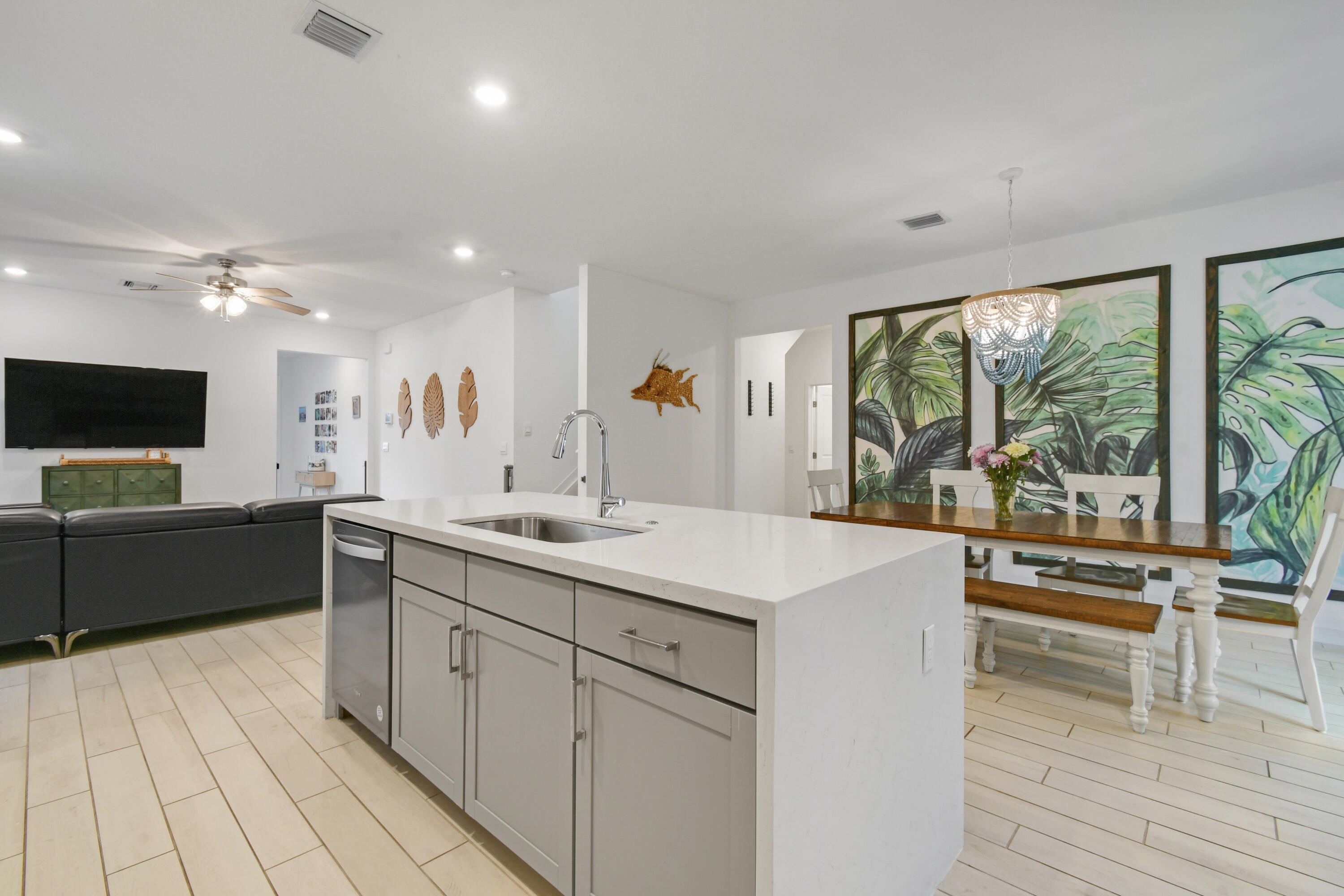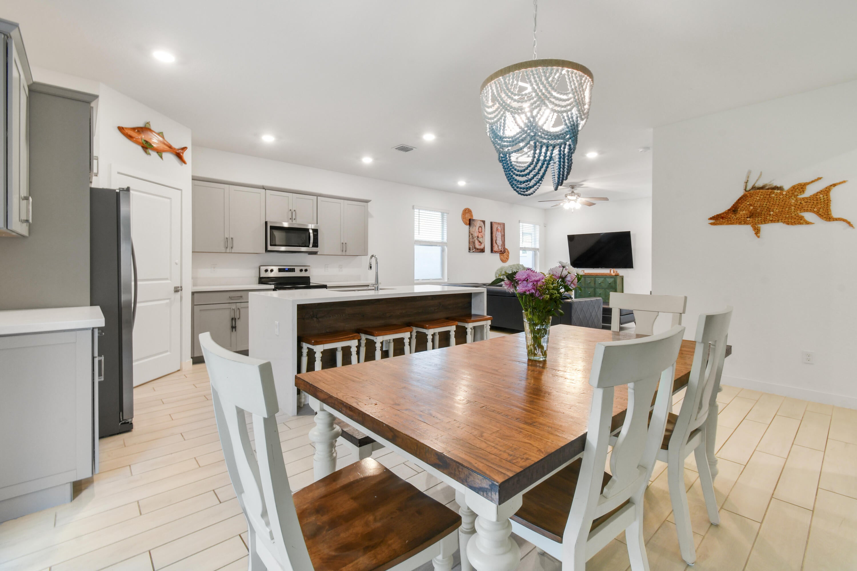 Modern coastal living meets comfort and style in this beautifully upgraded 5-bedroom, 3-bathroom home in The Reserve at Jupiter. Built in 2023 with solid CBS construction and over 2,700 square feet of bright, open living space, this home offers the perfect layout for families or anyone who loves to entertain.Step inside to find clean, white tile floors throughout the main living areas, enhancing the light and airy feel of the open-concept design. The first floor includes a spacious living and dining area, a sleek kitchen with a large walk-in pantry, and a full bedroom with adjacent full bath ideal for guests or a home office. Upstairs, you'll find the expansive master suite, three additional bedrooms, two full bathrooms, a versatile flex space, and a conveniently locatedlaundry room. This home includes thoughtful upgrades such as custom blinds, impact windows and doors throughout, and extended front and back patios giving you even more outdoor living space to enjoy Florida's year-round sunshine. The fully fenced backyard offers privacy and plenty of space to build your dream pool. Located in a gated community with a playground, dog park, and outdoor recreation area and just minutes from top-rated schools, beautiful beaches, shopping, and dining this home combines coastal charm, modern convenience, and unbeatable location