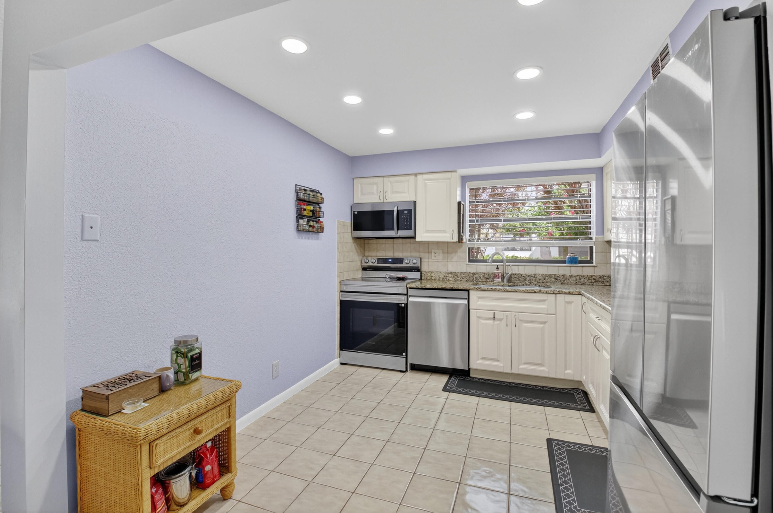 LOCATION! LOCATION! LOCATION! - KITCHEN RECESSED LIGHTING AND STAINLESS STEEL APPLIANCES! Lake and golf view from your livingroom and patio! n This is Kings Point's large model! Floor to ceiling impact glass sliding doors! Kings Point luxury model - our largest in the communiy! Building is concrete block construction and very well maintained. First floor, tile floors throughout, impeccably maintained.HW installed 2020 or 2021, AC is 2017. Kings Point offers activities year round! clubs, movies, seasonal live shows, 2 restuarants, free community transportation and more! 2 golf courses, 3 clubhouses, and1 multiple pools. This 55+ community has it all