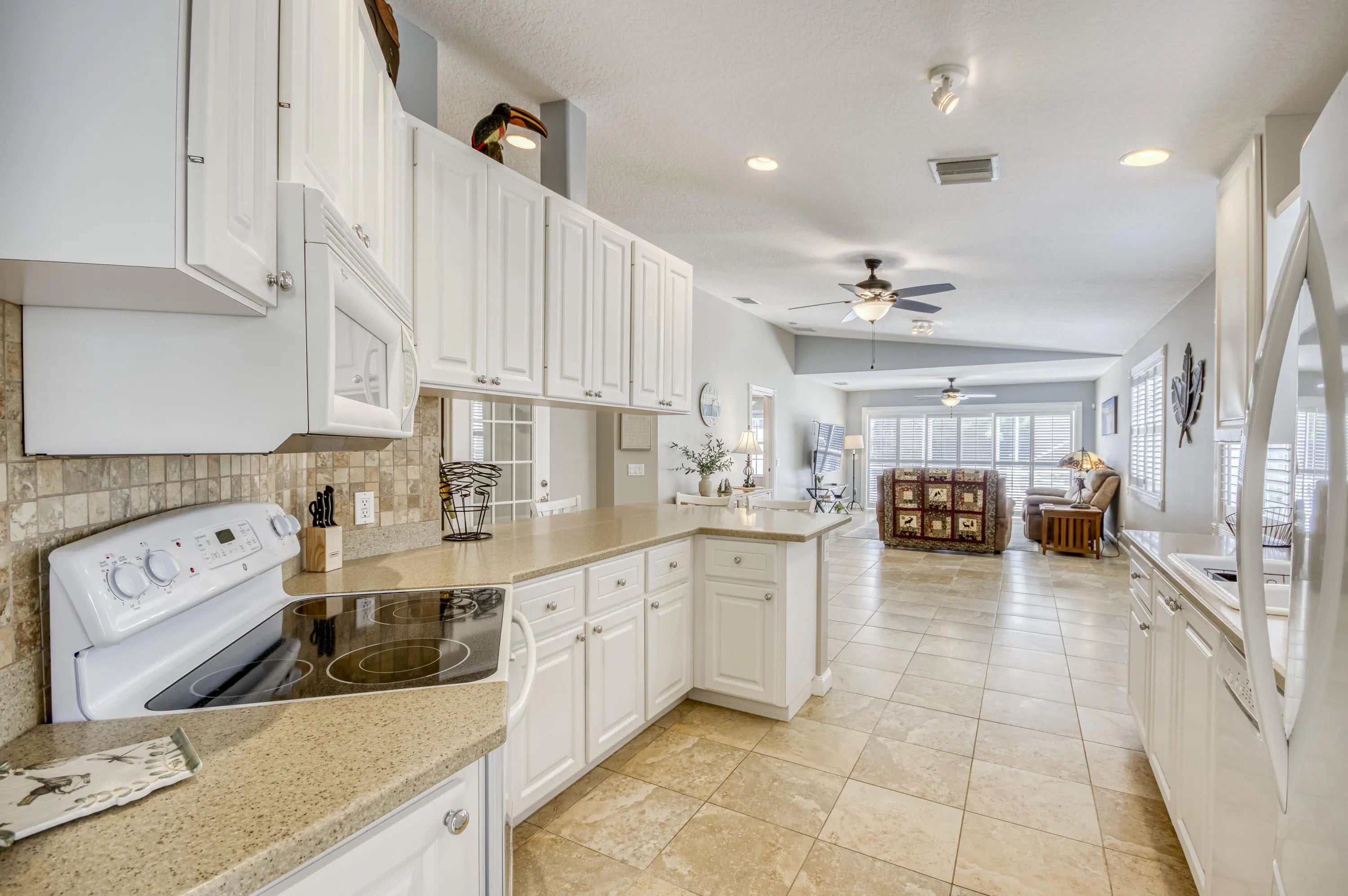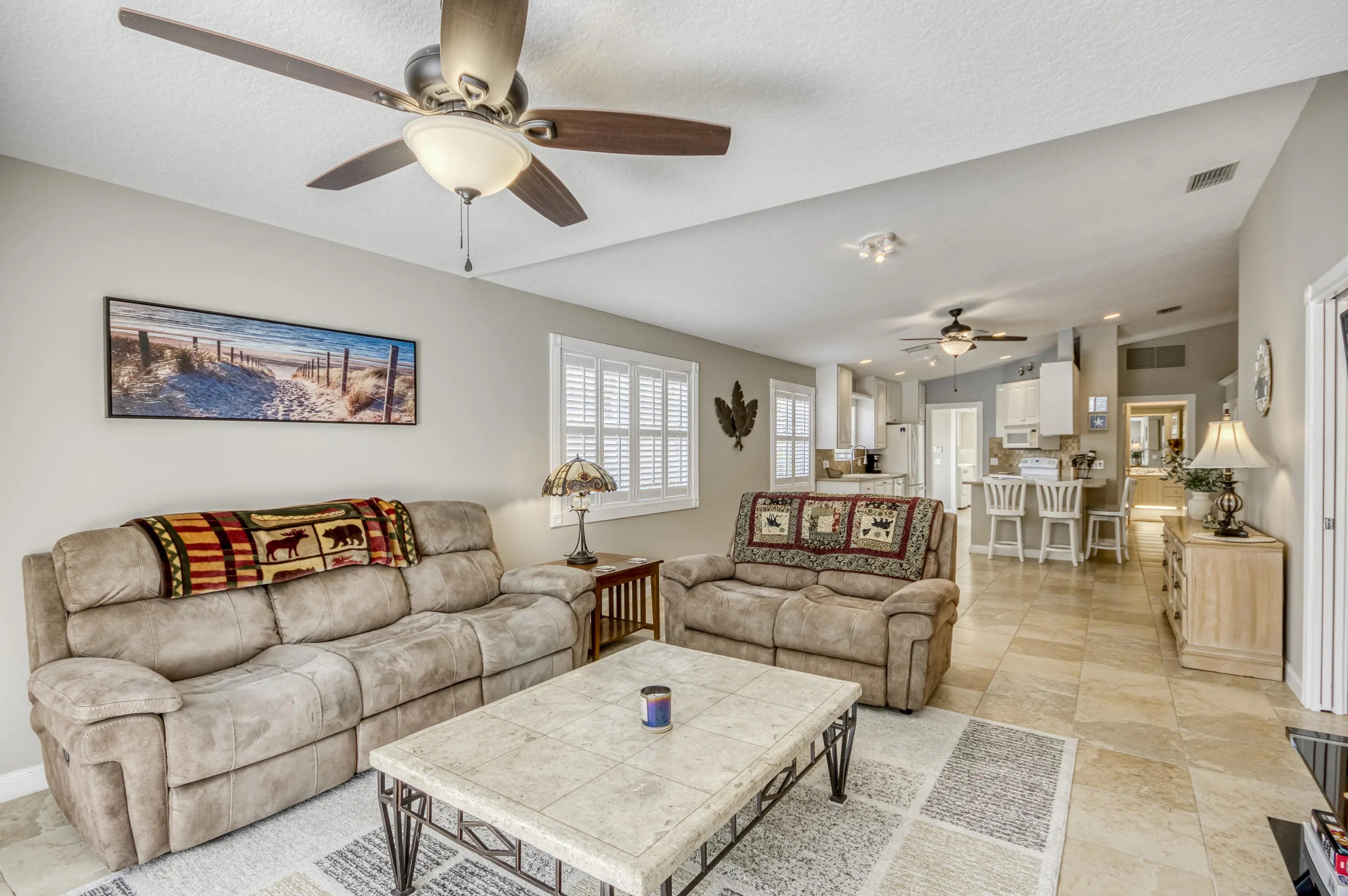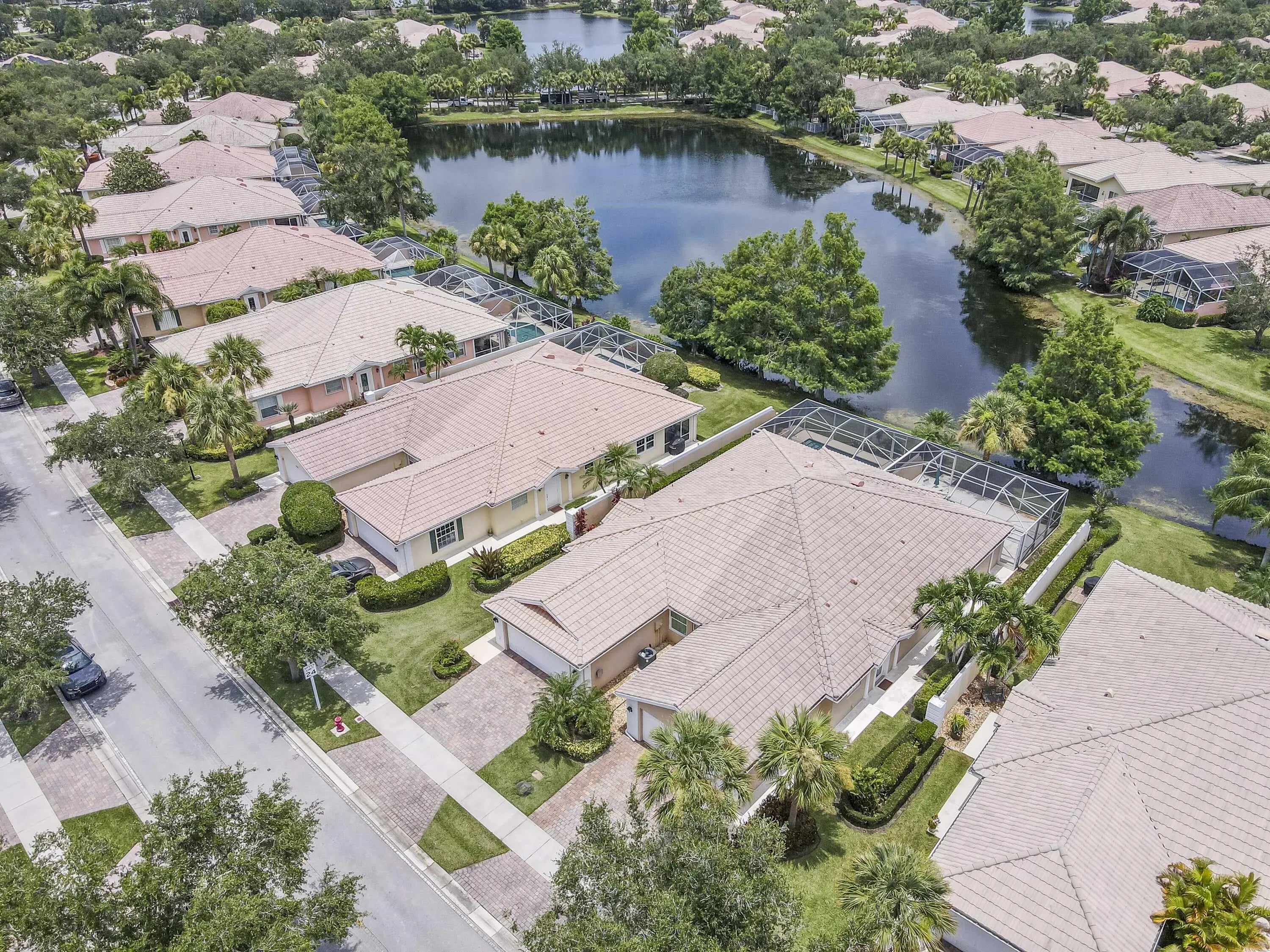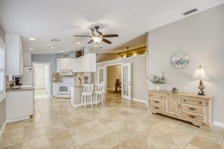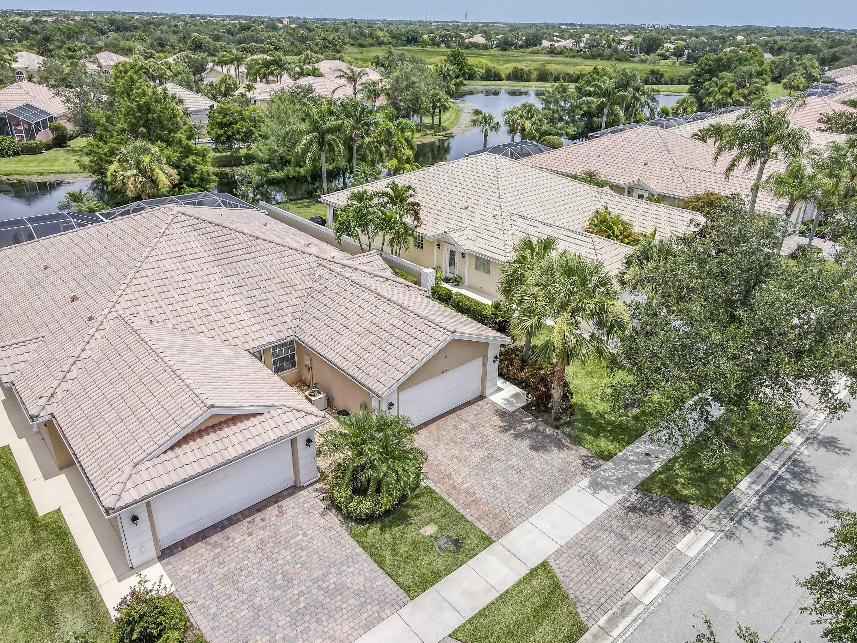 Meticulously maintained 2/2 lakefront villa in the desirable DiVosta built community, The Lakes at Tradition. This villa features an oversized screen patio with long sweeping views of the gorgeous lake. This extended model boasts an open floor plan and has two private bedroom suites with walk in closets. The kitchen features 42' cabinets with corian counters and tile backsplash. Some of the many other features of this home include: Brand new AC, tile flooring throughout with exception of bedrooms which have laminate flooring, barrel tile roof, paver driveway, plantation shutters, updated primary bathroom, central vacuum, walk in closets with built-in shelving, plus much more. The community amenities include: recreational facilities, clubhouse, lighted tennis courts and pickleball court
