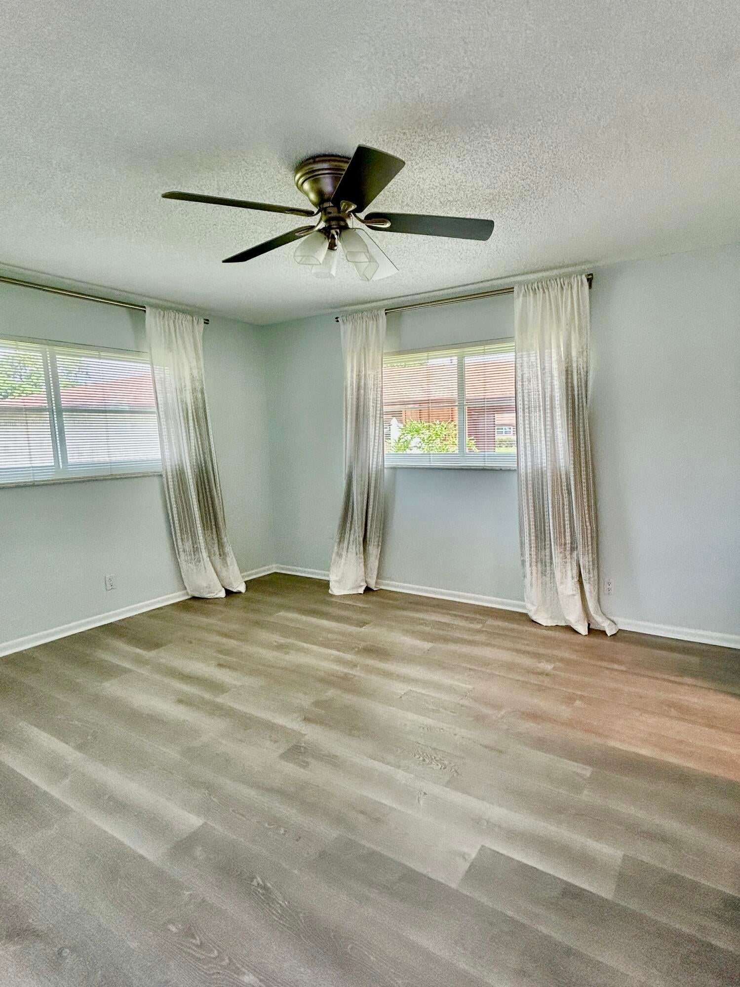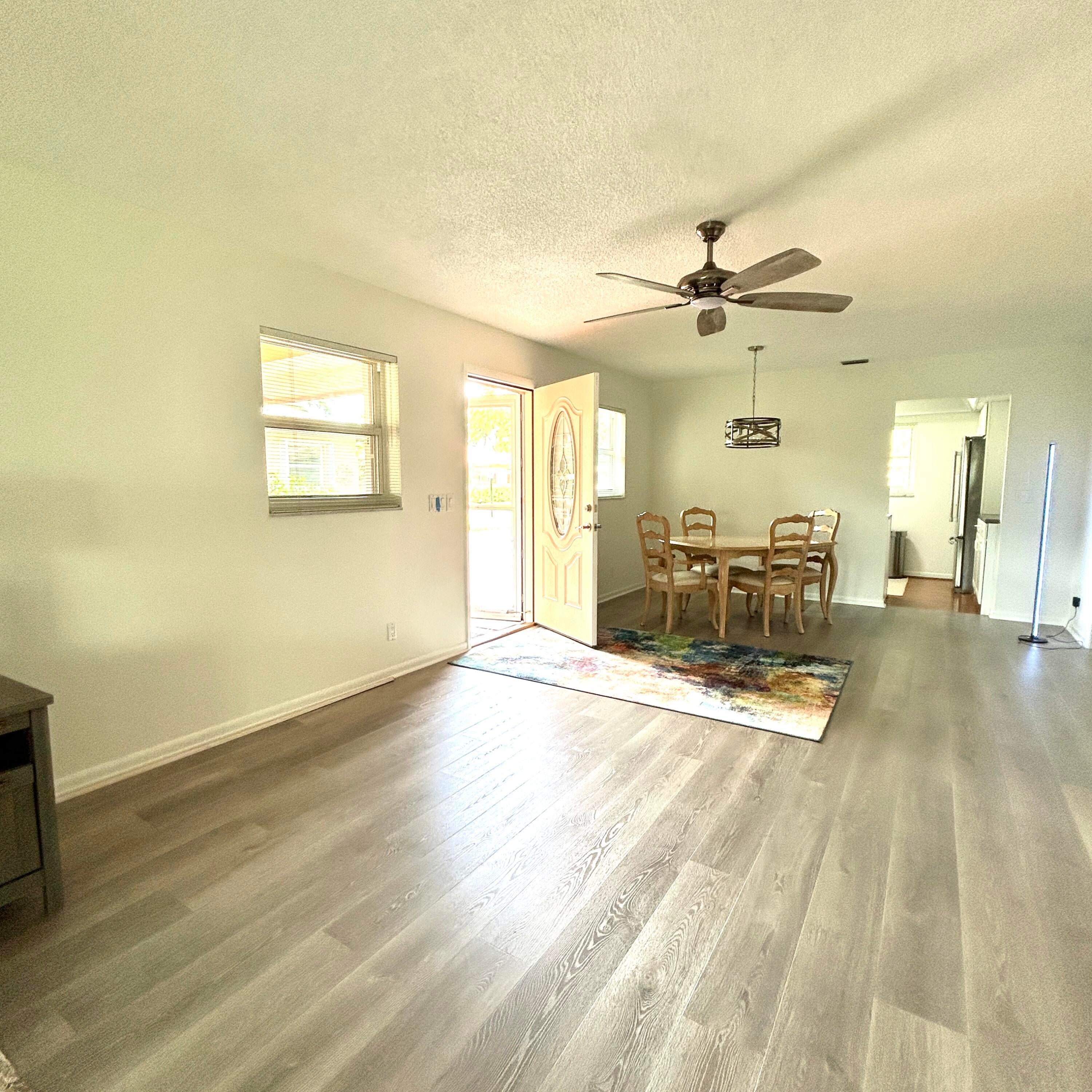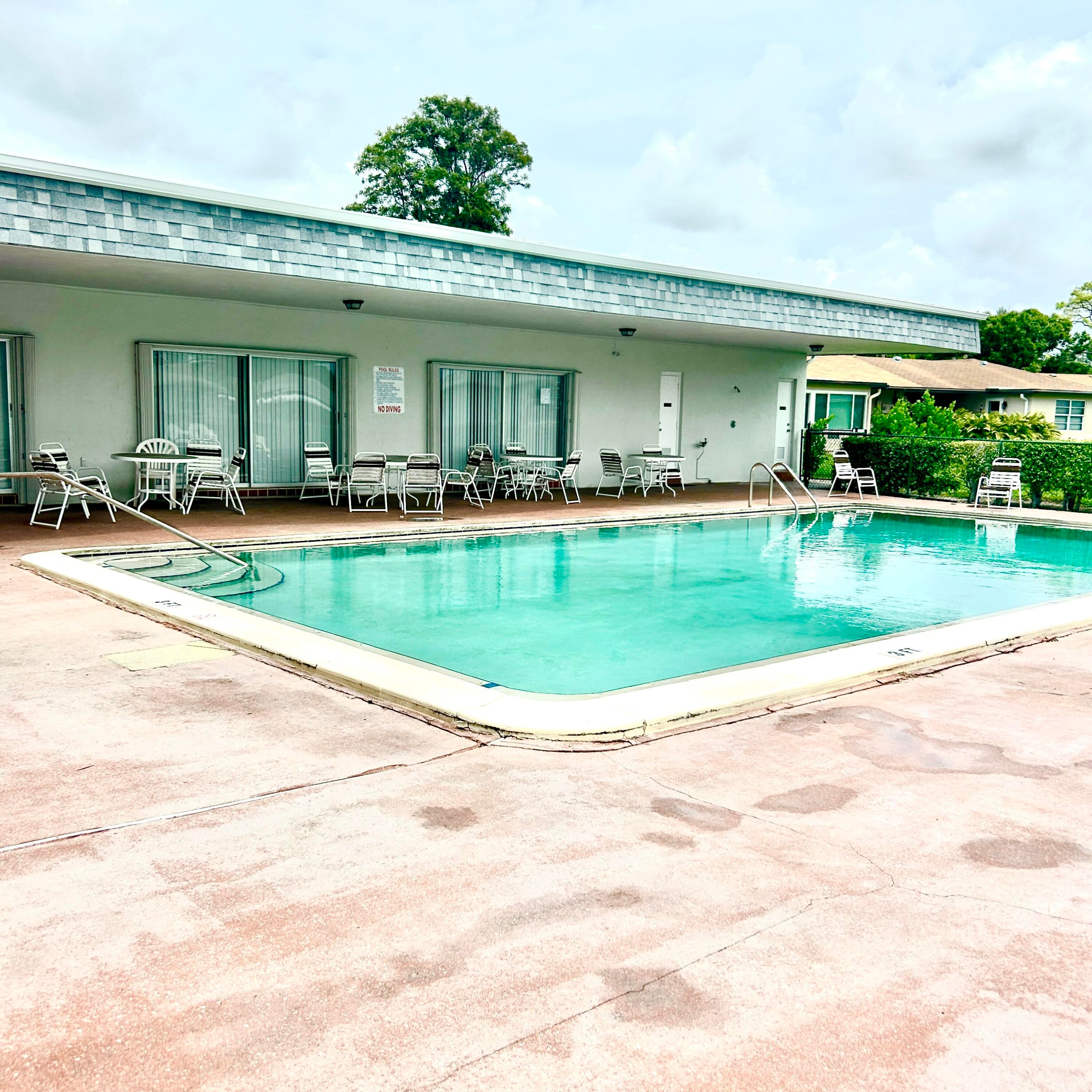 Welcome to this charming 55+ Community in the heart of Delray Beach! This well-maintained villa features impact windows installed in 2023, providing added safety and energy efficiency. Inside, you'll find a beautifully updated bathroom and stylish laminate flooring throughout the living areas and bedrooms. The kitchen and second bathroom are clean and functional, offering a great opportunity for personalization. The home also includes a newer washer and dryer, as well as a recently replaced water heater. The roof was replaced in 2012 and has been professionally maintained twice a year with protective coating. Move-in ready and perfect as a primary residence or seasonal getaway.Well-maintained Clubhouse. 9 pools in which 8 are heated. HOA includes water a basic cable.