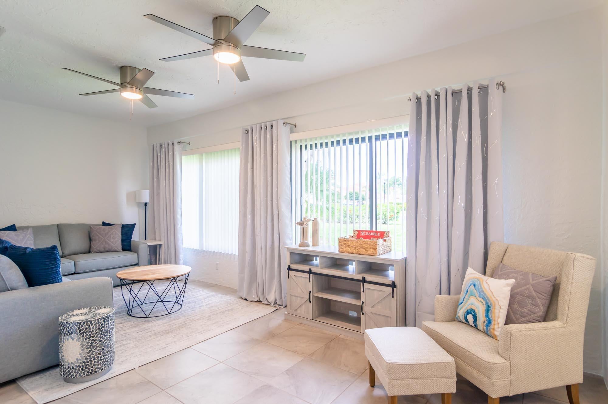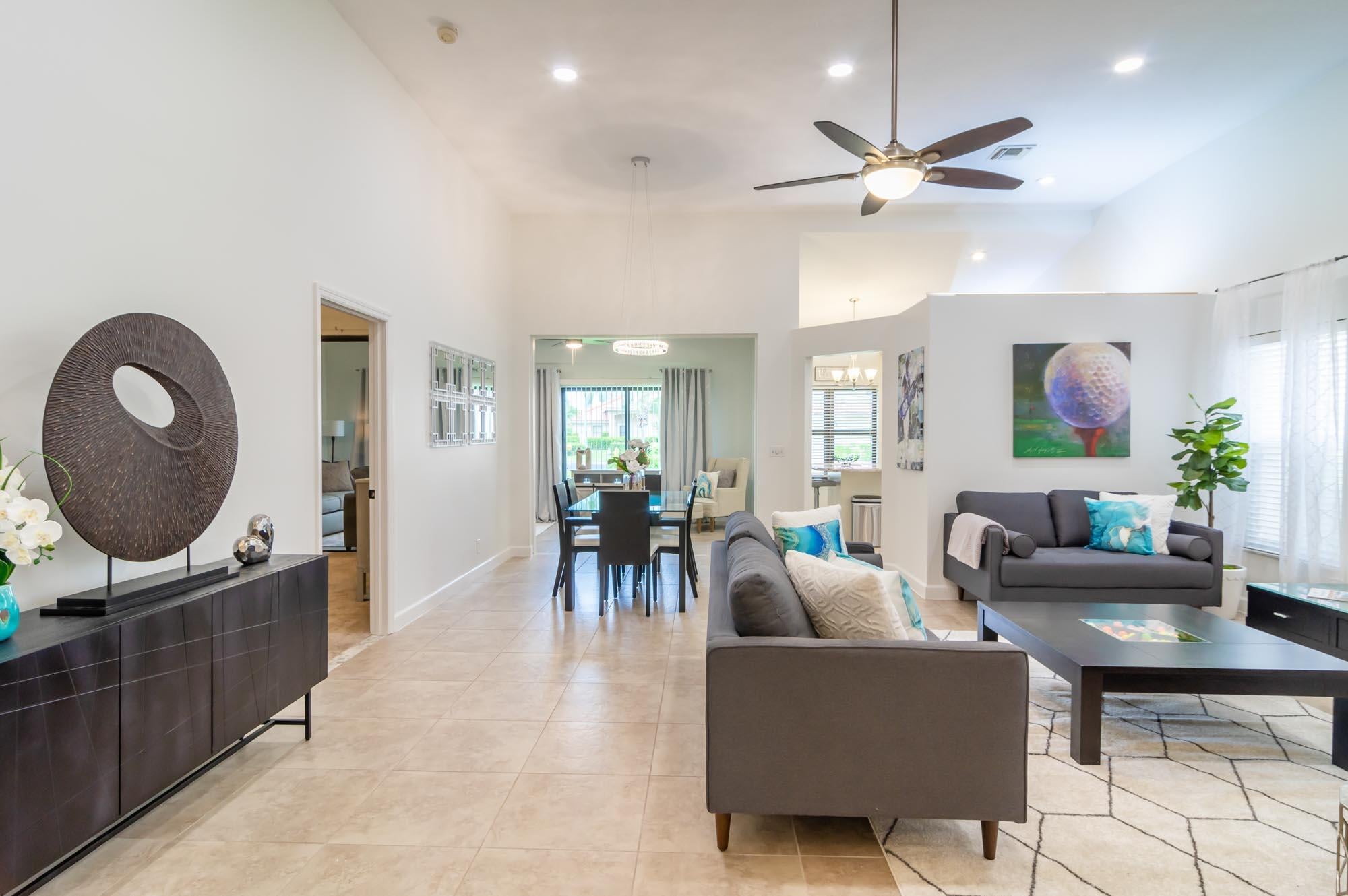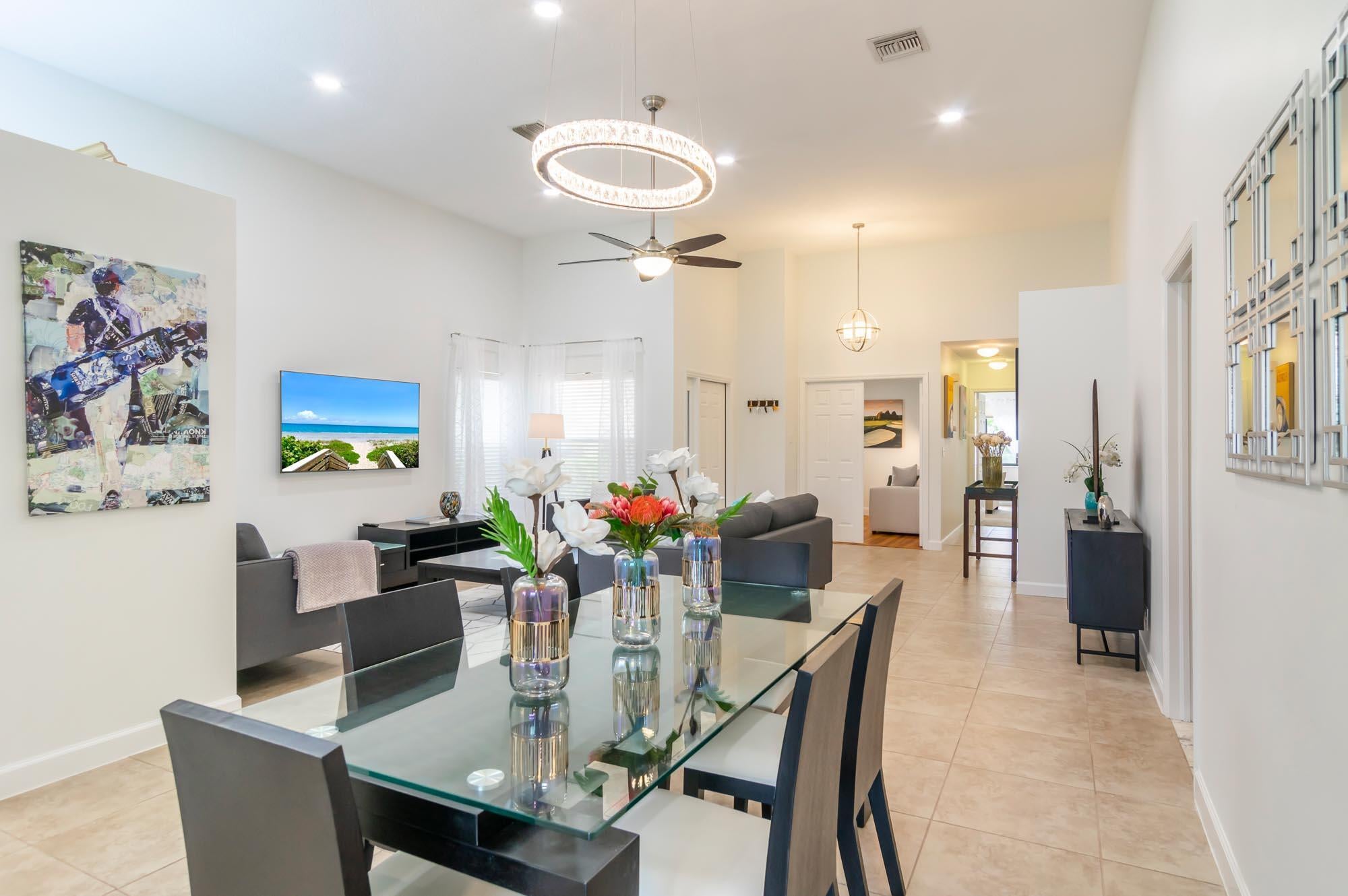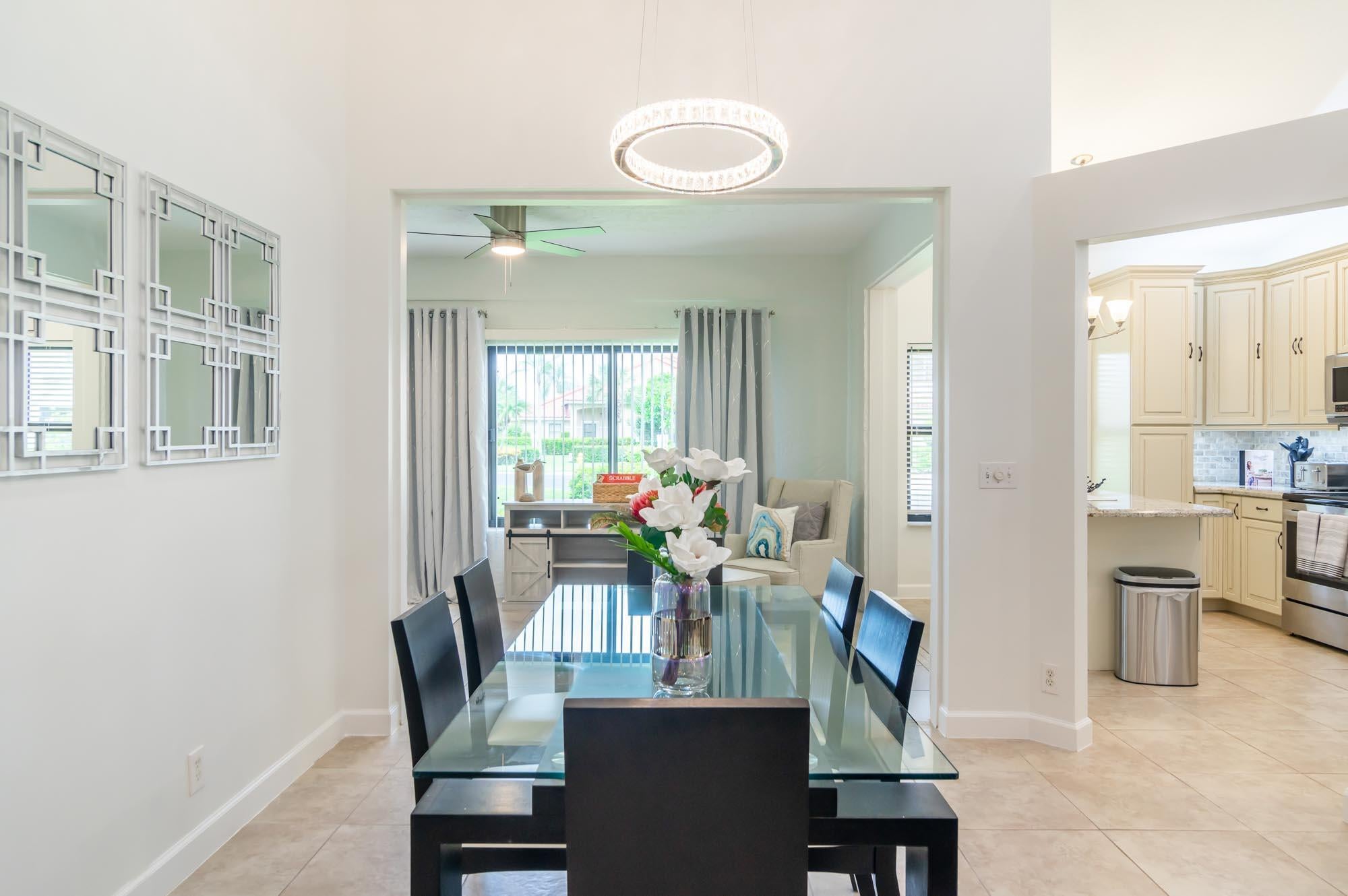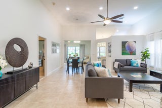 Available for Furnished annual, $3850, or $7,000/mo seasonally, Furnished only. Remodeled 3BR/2BA end-unit townhome in the sought-after community of Windermere at PGA National. This open floor plan offers volume ceilings, a bright living space with tons of windows letting in tons natural light, and a completely remodeled kitchen with beautiful neutral wooden cabinetry, granite countertops, and stainless-steel appliances. The second bedroom is located just off the living room and makes a perfect office, and the primary bedroom is spacious with a sliding glass door to the fantastic, enclosed patio offers tons of space for entertaining. New carpet in the primary bedroom/3rd bedroom, high-end LVT in the second bedroom/office. Windermere offers a community pool and pavilion for relaxation, anresidents have access to all the incredible amenities of PGA National Resort & Spa including an Olympic size pool in a tropical setting with flowering bougainvillea, full spa facilities and amenities, fine restaurants, a croquet court, 18 tennis courts, and much more!