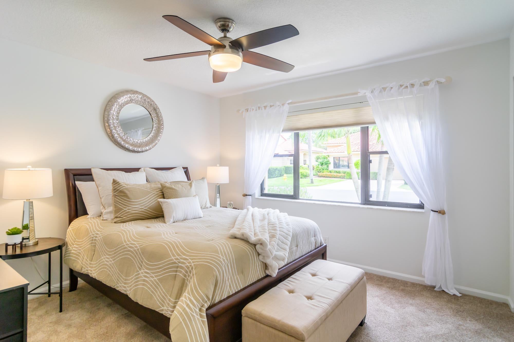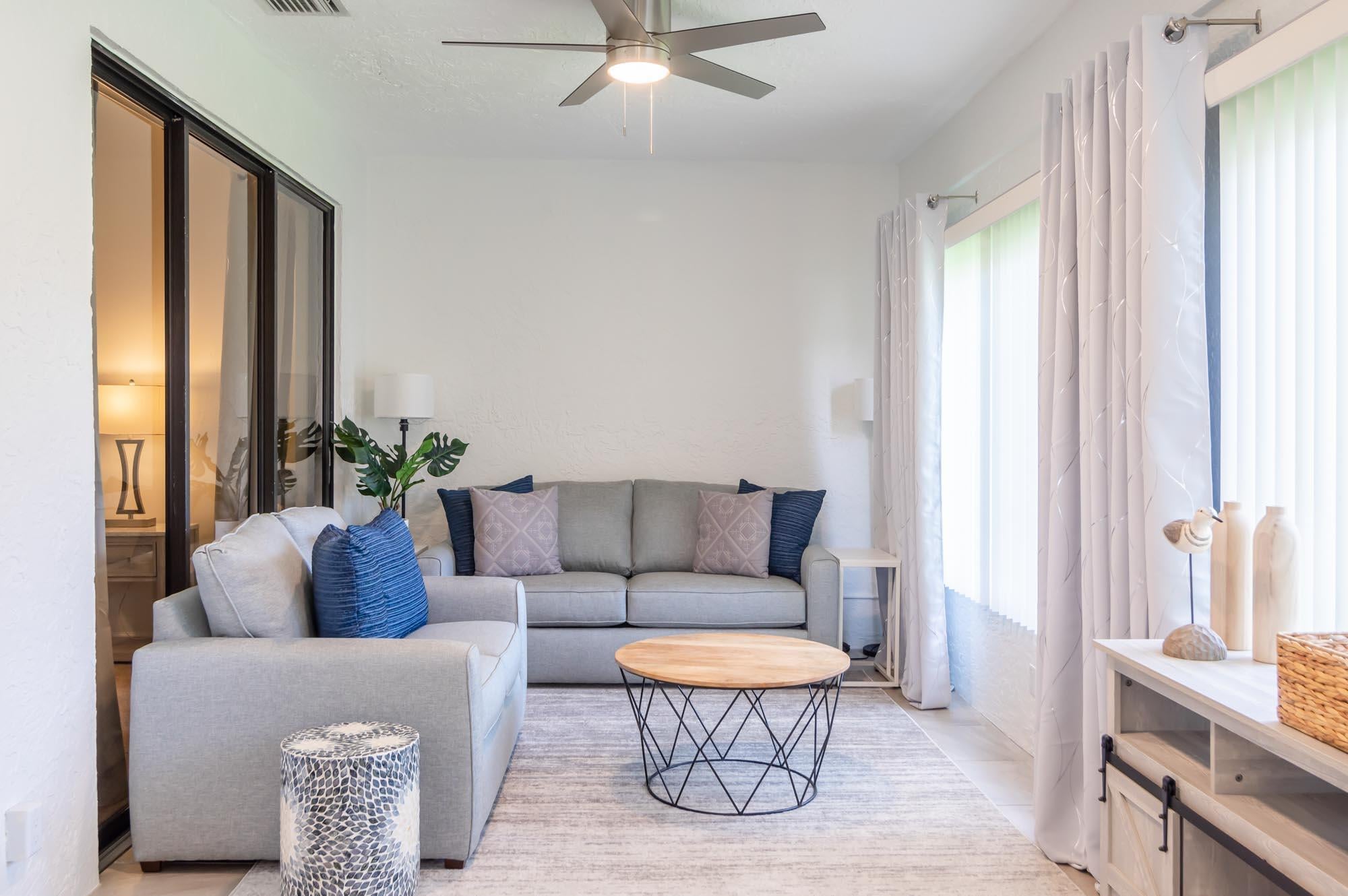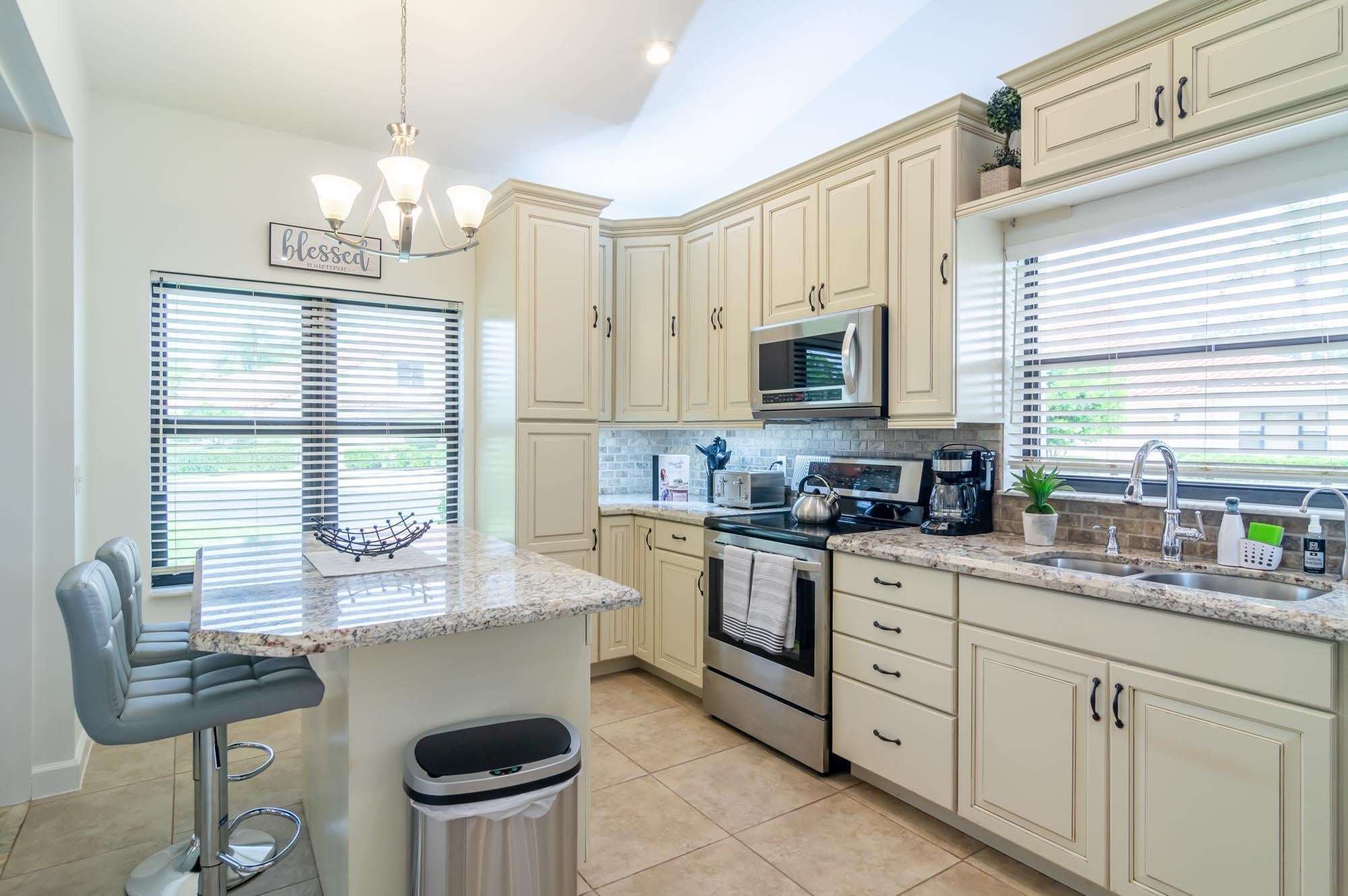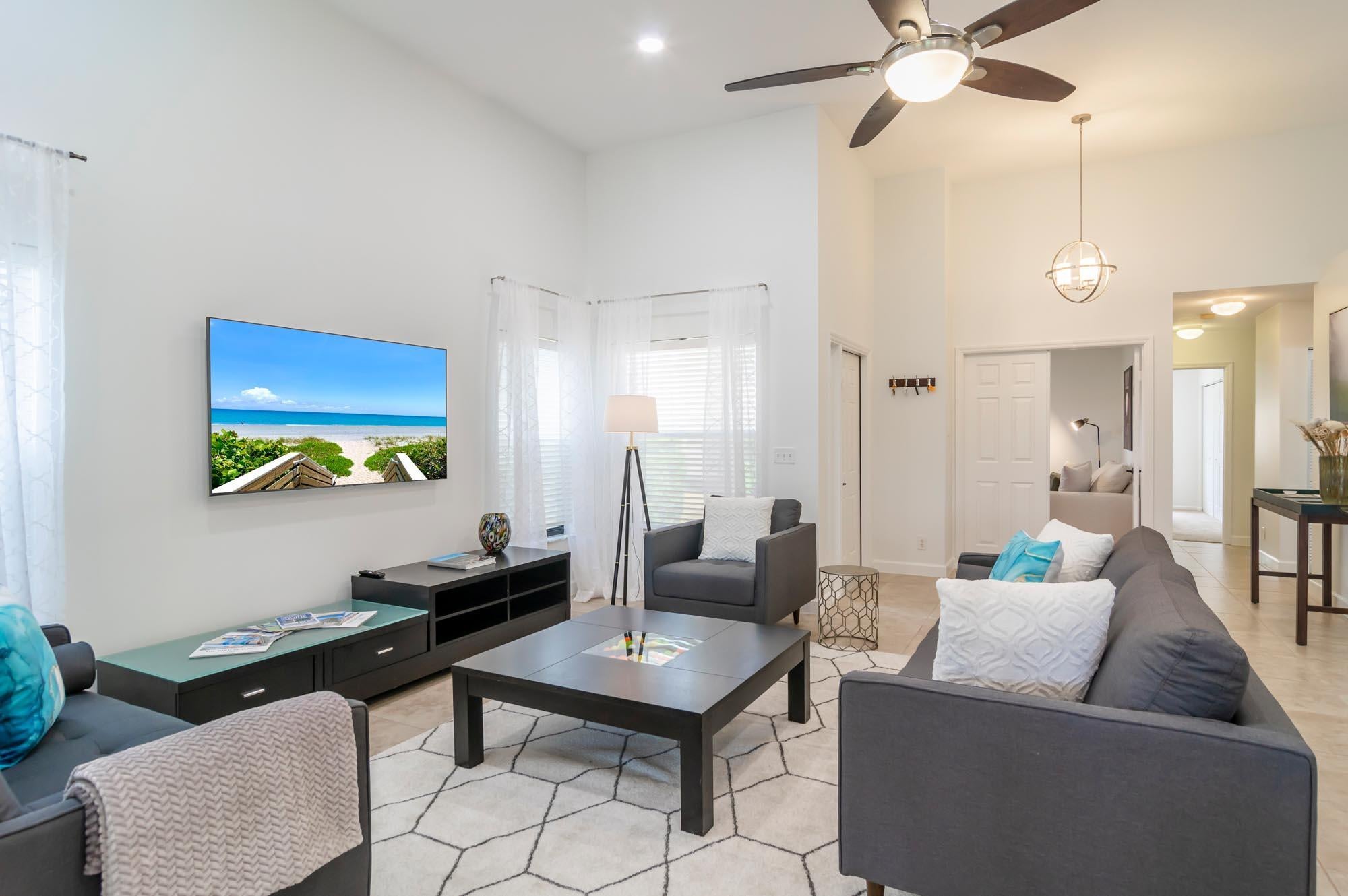 Available for Furnished annual, $3850, or $7,000/mo seasonally, Furnished only. Remodeled 3BR/2BA end-unit townhome in the sought-after community of Windermere at PGA National. This open floor plan offers volume ceilings, a bright living space with tons of windows letting in tons natural light, and a completely remodeled kitchen with beautiful neutral wooden cabinetry, granite countertops, and stainless-steel appliances. The second bedroom is located just off the living room and makes a perfect office, and the primary bedroom is spacious with a sliding glass door to the fantastic, enclosed patio offers tons of space for entertaining. New carpet in the primary bedroom/3rd bedroom, high-end LVT in the second bedroom/office. Windermere offers a community pool and pavilion for relaxation, anresidents have access to all the incredible amenities of PGA National Resort & Spa including an Olympic size pool in a tropical setting with flowering bougainvillea, full spa facilities and amenities, fine restaurants, a croquet court, 18 tennis courts, and much more!
