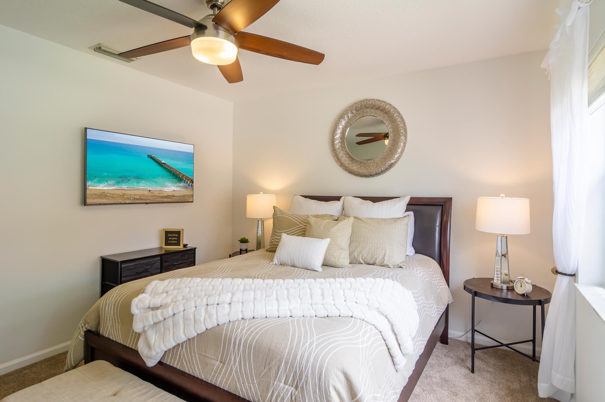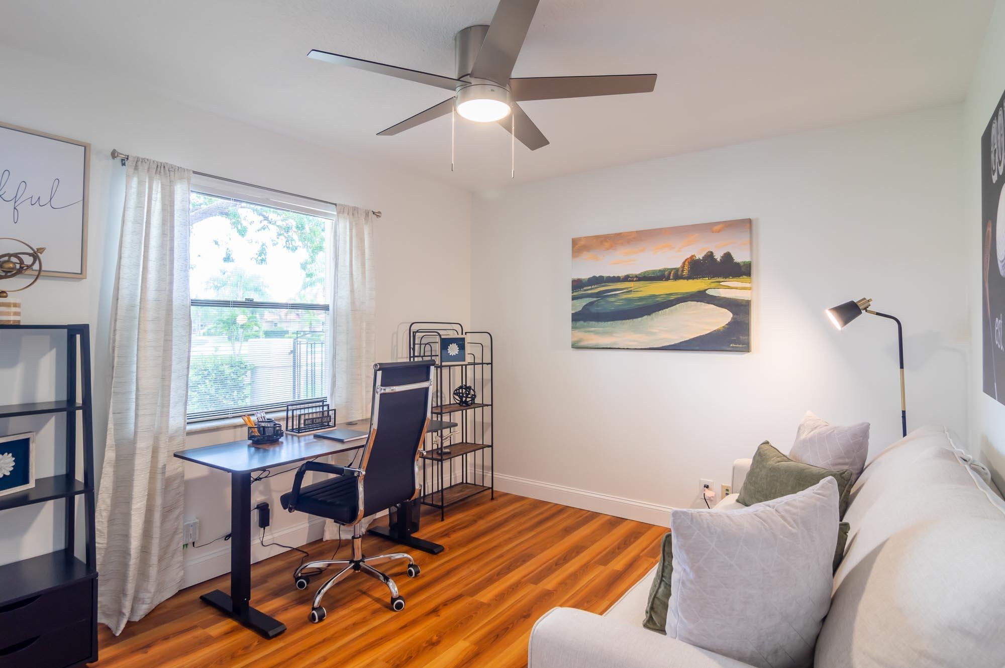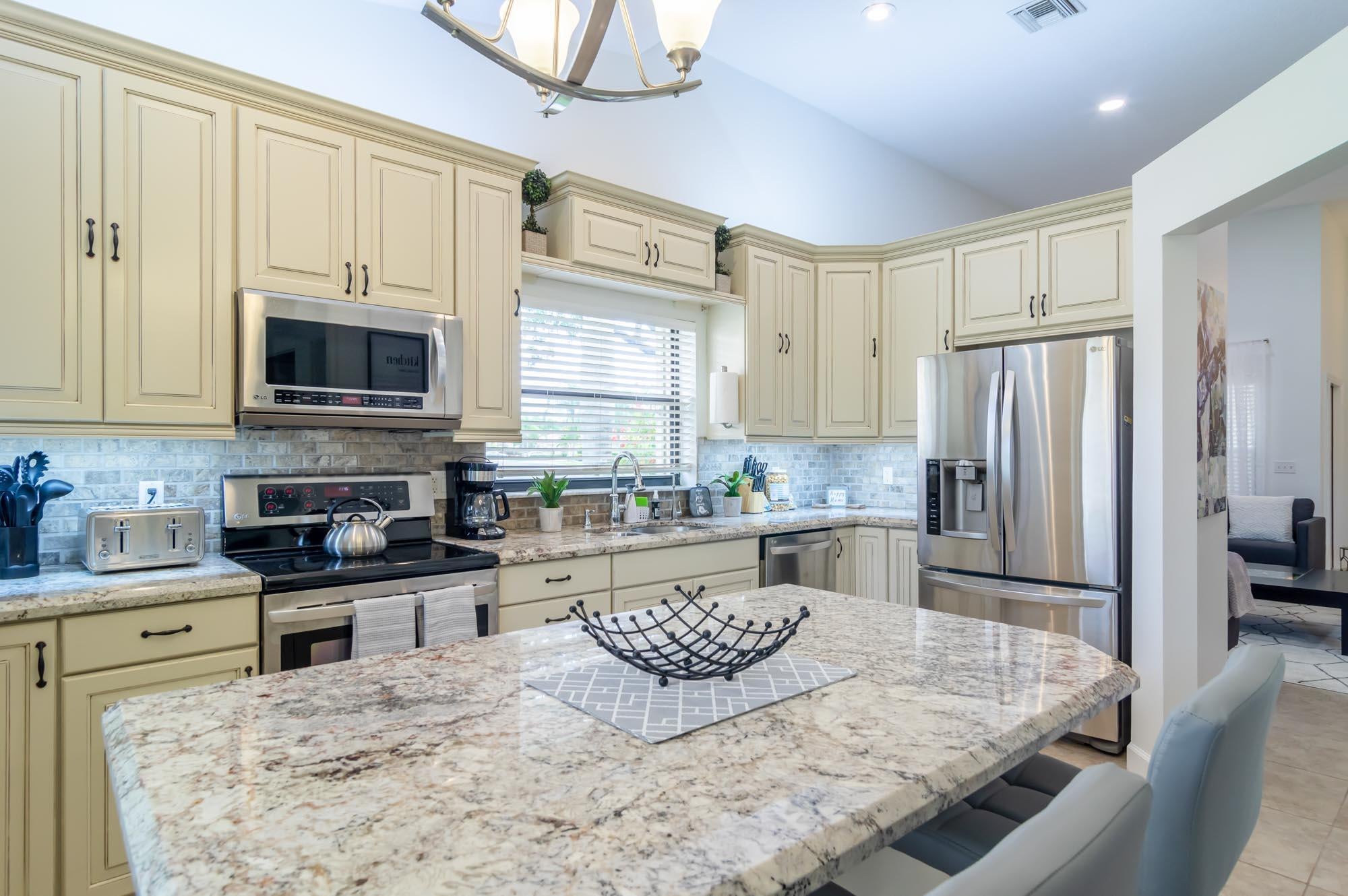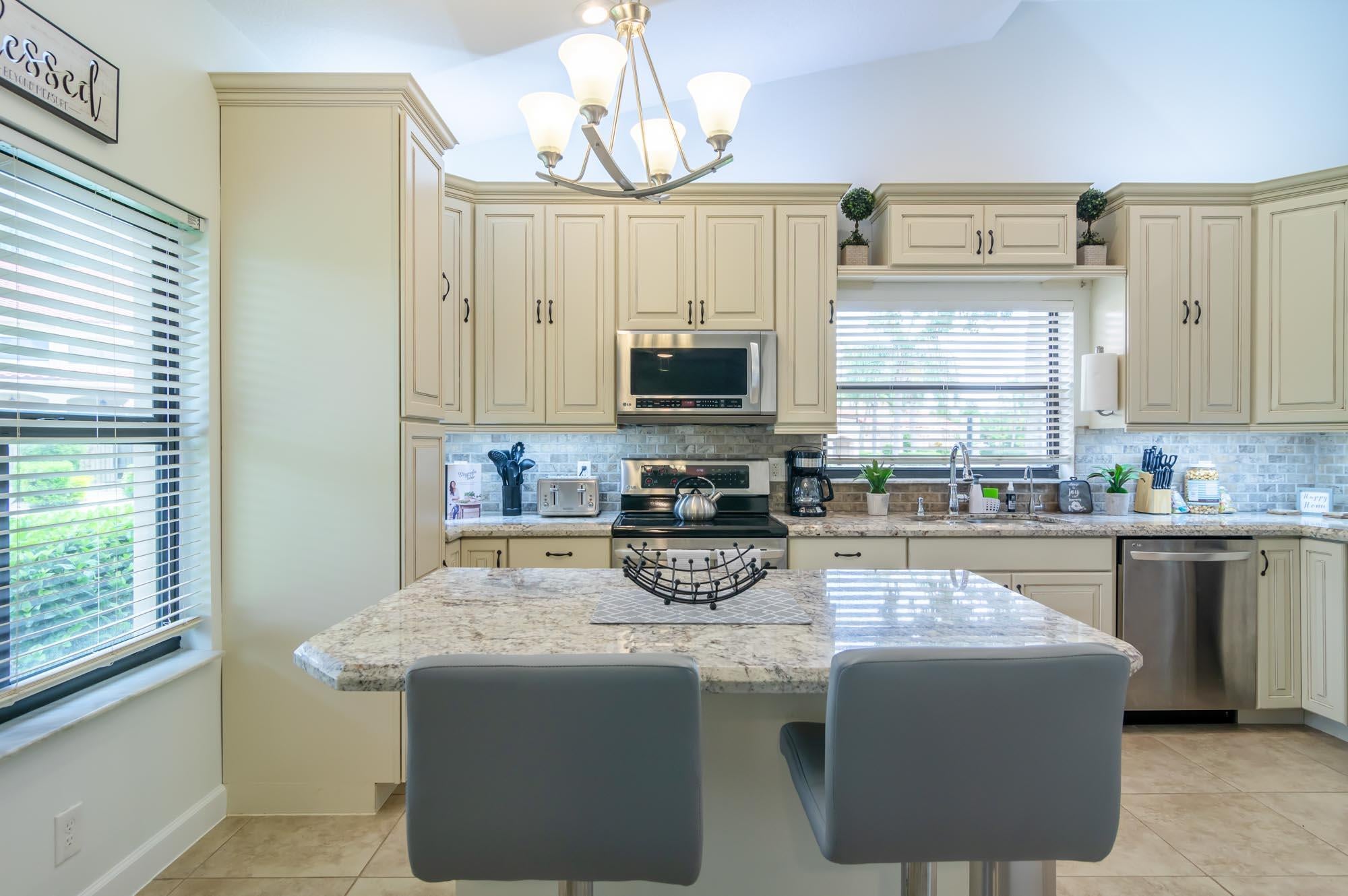 Available for Furnished annual, $3850, or $7,000/mo seasonally, Furnished only. Remodeled 3BR/2BA end-unit townhome in the sought-after community of Windermere at PGA National. This open floor plan offers volume ceilings, a bright living space with tons of windows letting in tons natural light, and a completely remodeled kitchen with beautiful neutral wooden cabinetry, granite countertops, and stainless-steel appliances. The second bedroom is located just off the living room and makes a perfect office, and the primary bedroom is spacious with a sliding glass door to the fantastic, enclosed patio offers tons of space for entertaining. New carpet in the primary bedroom/3rd bedroom, high-end LVT in the second bedroom/office. Windermere offers a community pool and pavilion for relaxation, anresidents have access to all the incredible amenities of PGA National Resort & Spa including an Olympic size pool in a tropical setting with flowering bougainvillea, full spa facilities and amenities, fine restaurants, a croquet court, 18 tennis courts, and much more!