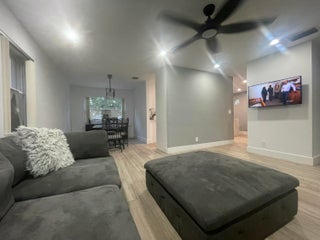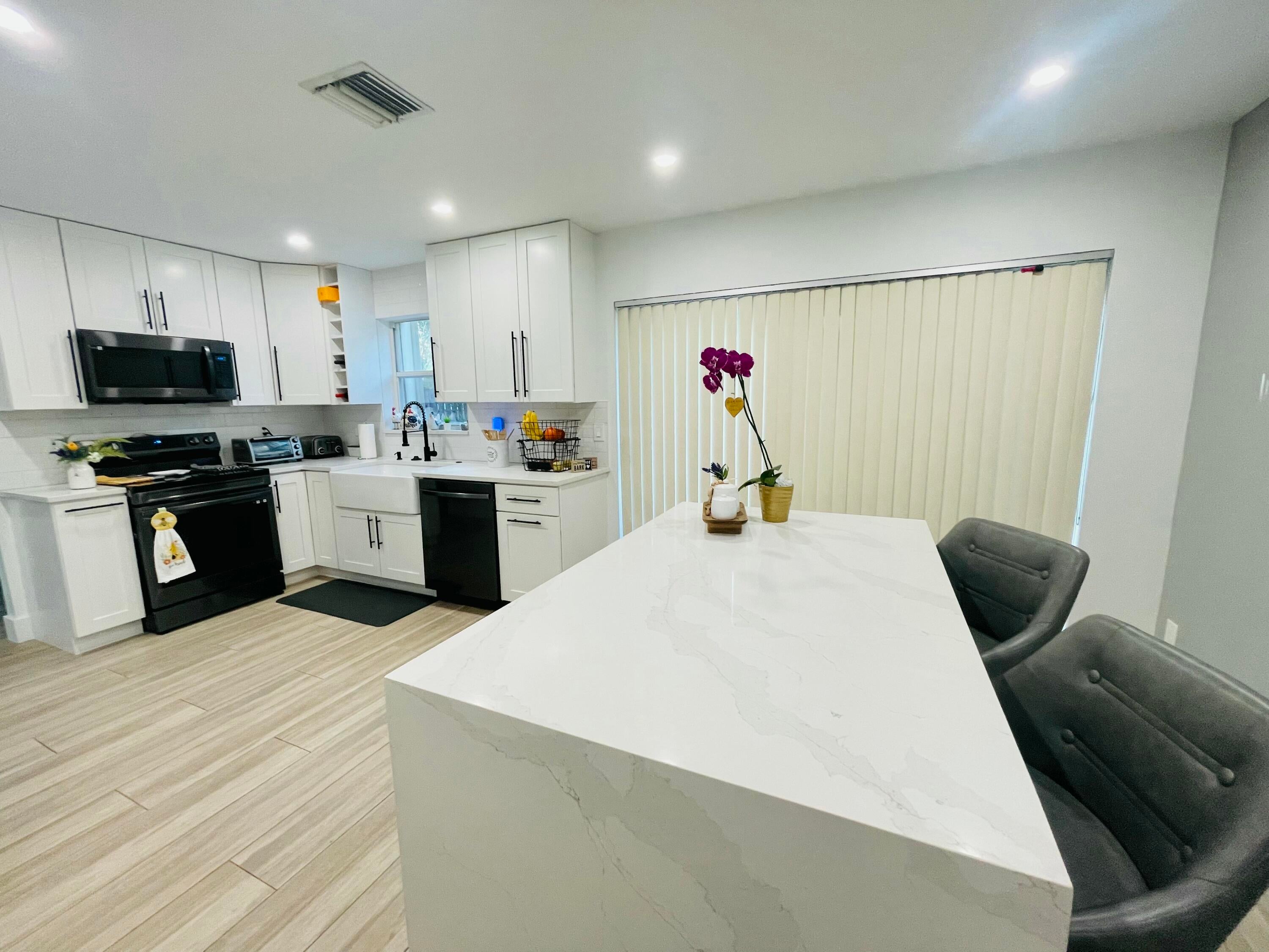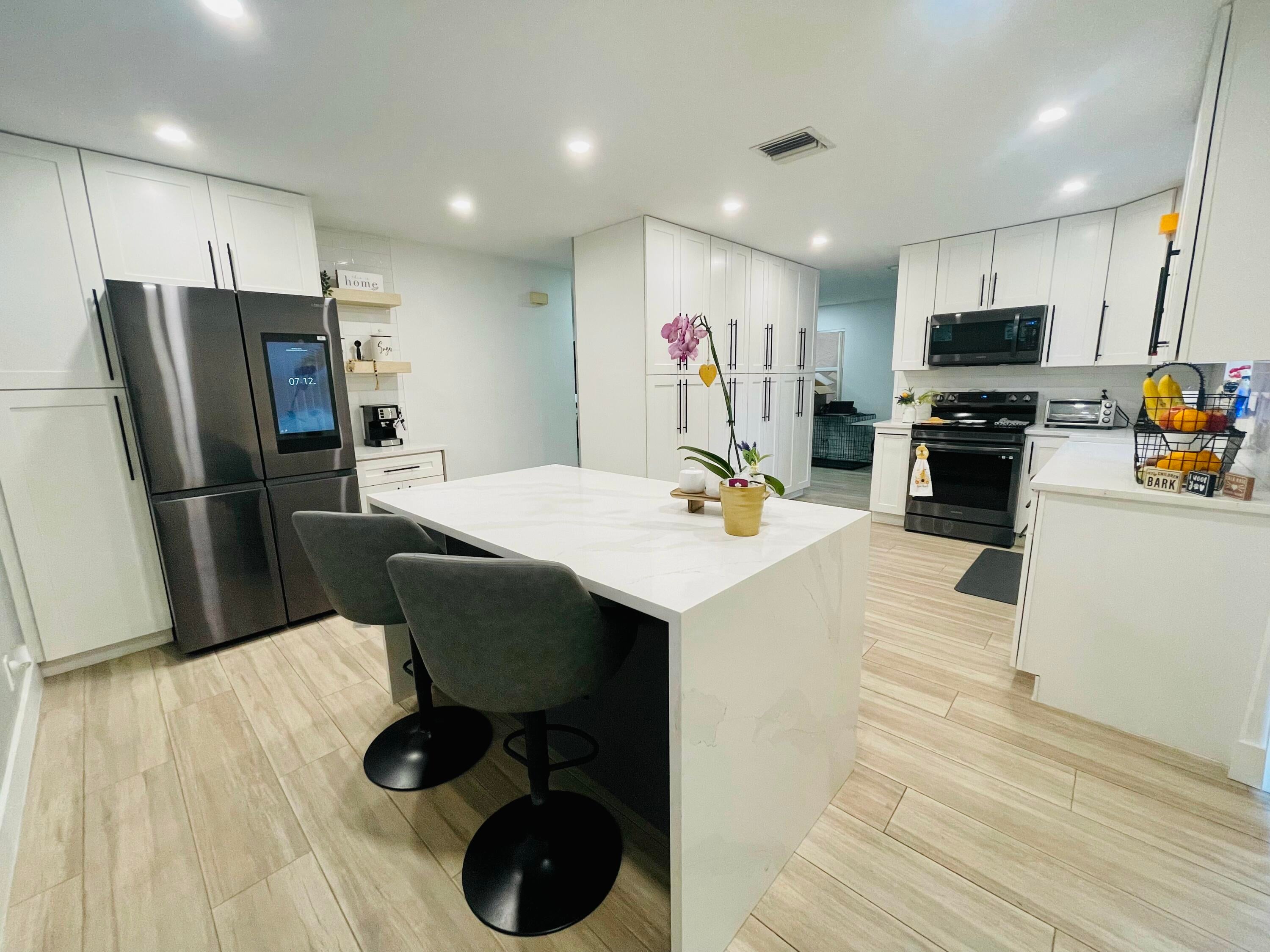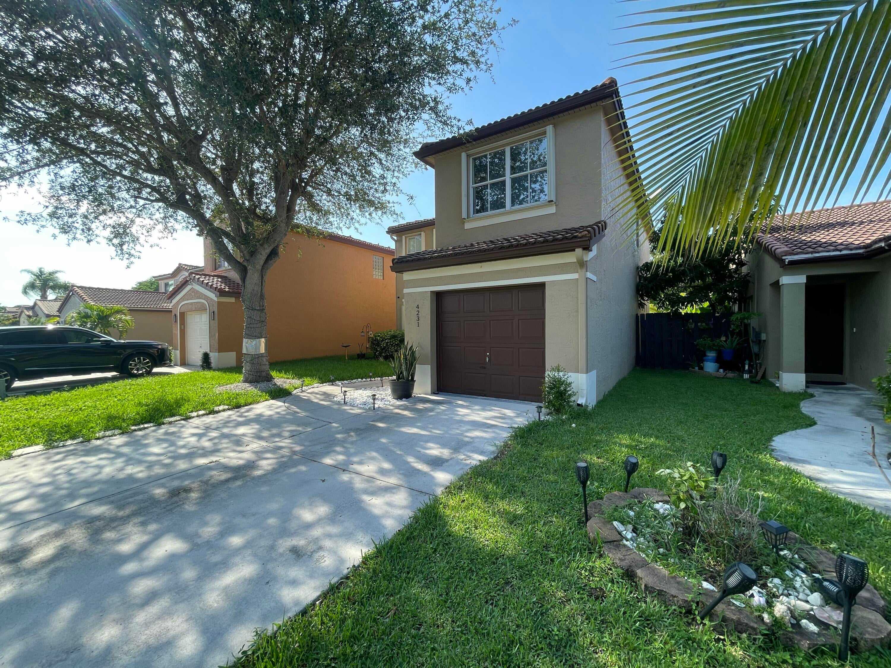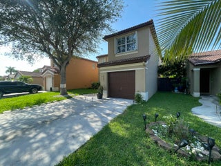 Gorgeous CBS 4-bedroom 2.5-bath home, perfectly situated in a lovely gated community. A lot of upgrades on this house such as, nice looking wood porcelain tile downstairs & upstairs, recessed lights, New Baseboards, New Painting & No Popcorn in the entire home. Owner has remodeled the whole Kitchen being very spacious w/ beautiful granite, SS appliances, wood white cabinets. All Bedrooms upstairs have customized closets w/ a lifetime warranty transferable to the new owner. One car garage & open driveway. One of the biggest backyard in the community, offers a Mango tree, Soursop tree & a Coconut Tree. Large lot to build a pool or your own barbecue area. Perfect Location! Community w/ very Low Hoa fees, Swimming pool, playground & nice Lake to enjoy! Only 3.8 Miles distance to the beach.