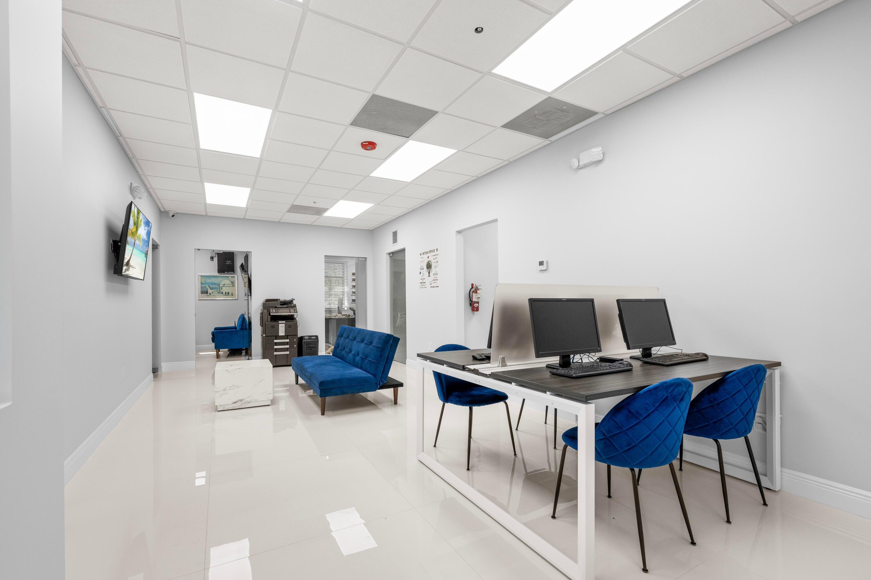 Owner Financing Available. Elevate your workday in this sophisticated boutique office rental designed with both style and function in mind. This turnkey suite offers four private executive offices, a polished conference room, and an inviting open collaboration space--all thoughtfully furnished with upscale touches. With two well-appointed bathrooms and a refined atmosphere, this space delivers a professional, private, and luxurious working environment that makes a statement the moment you walk in.