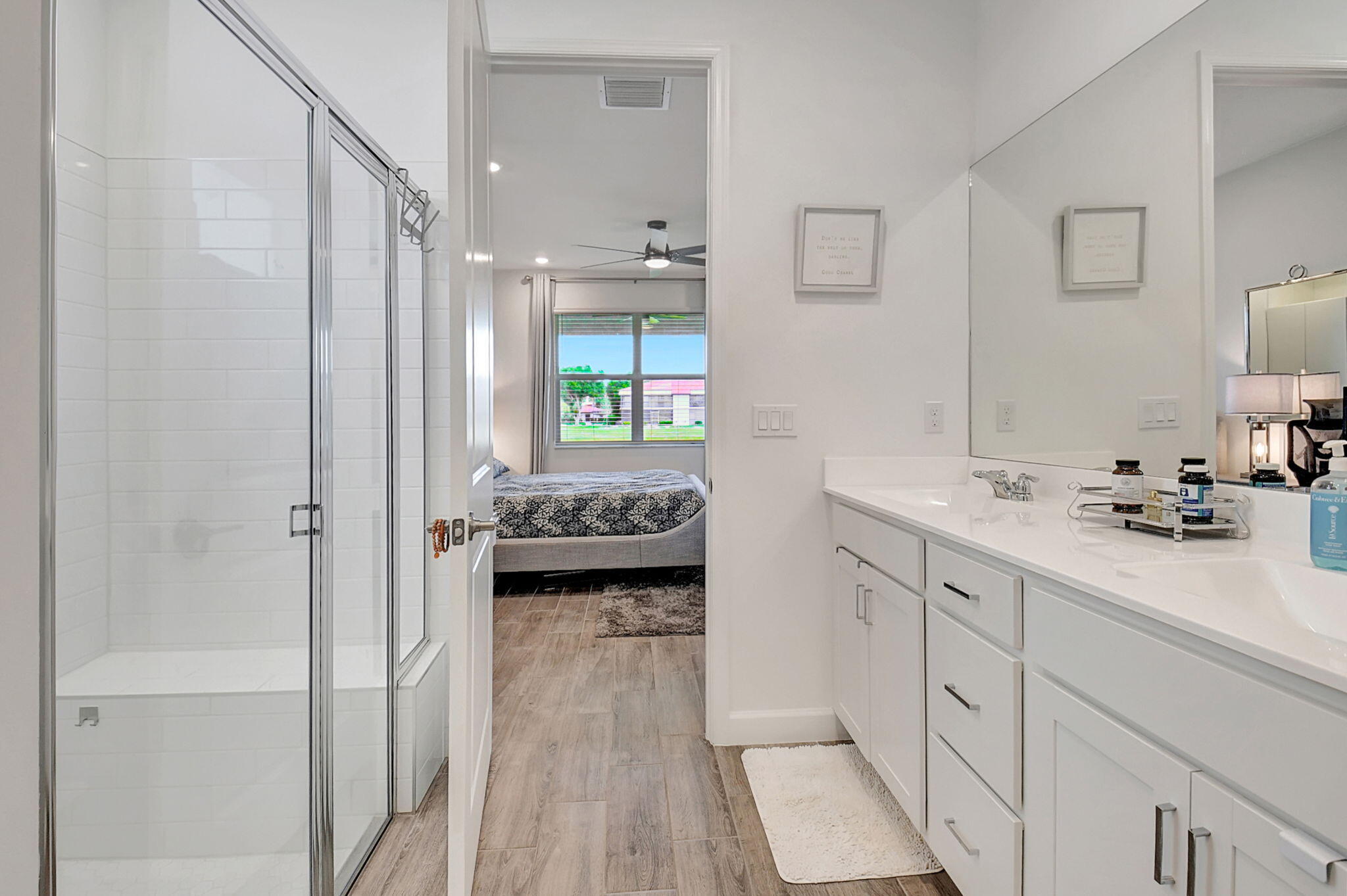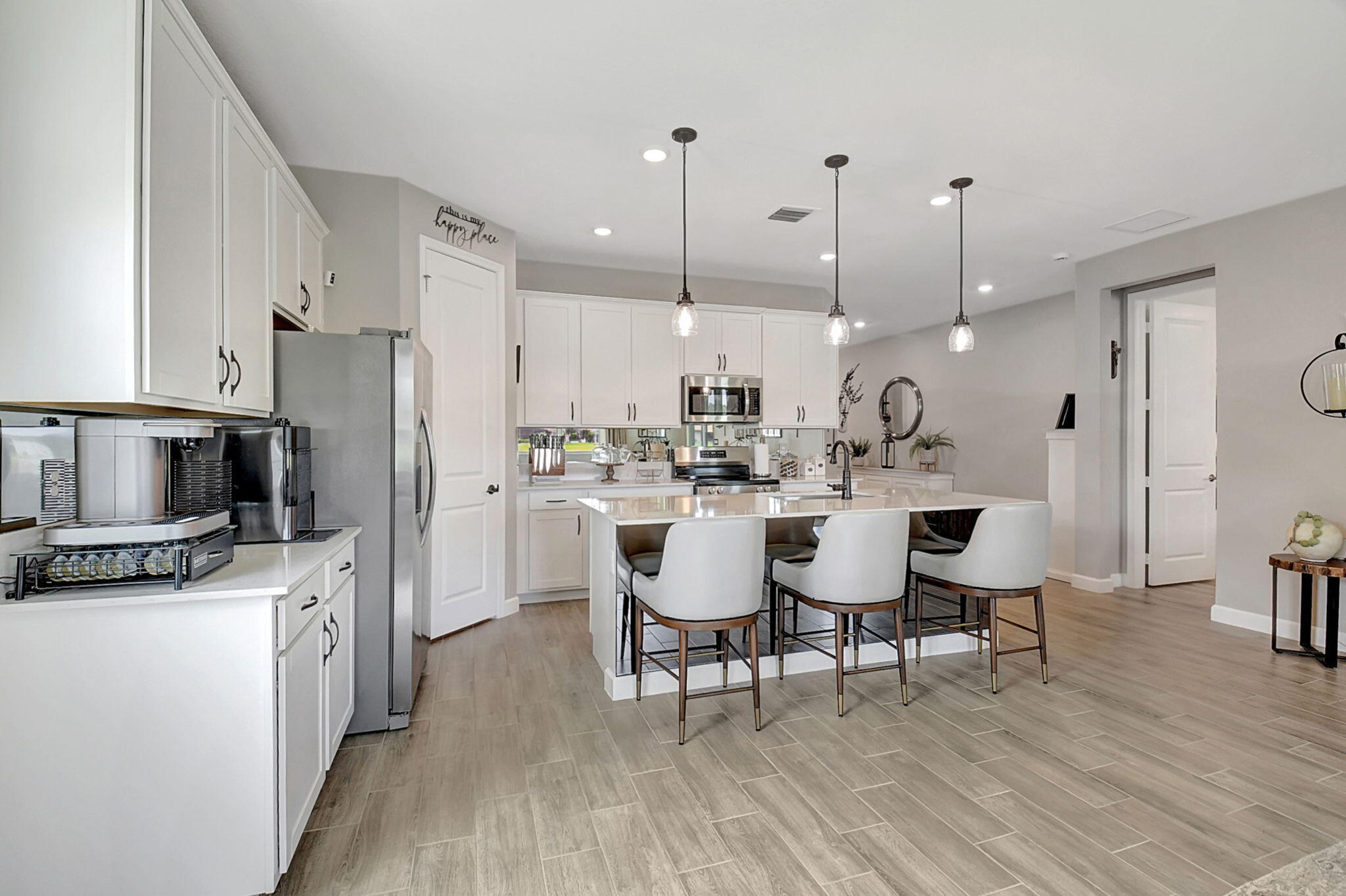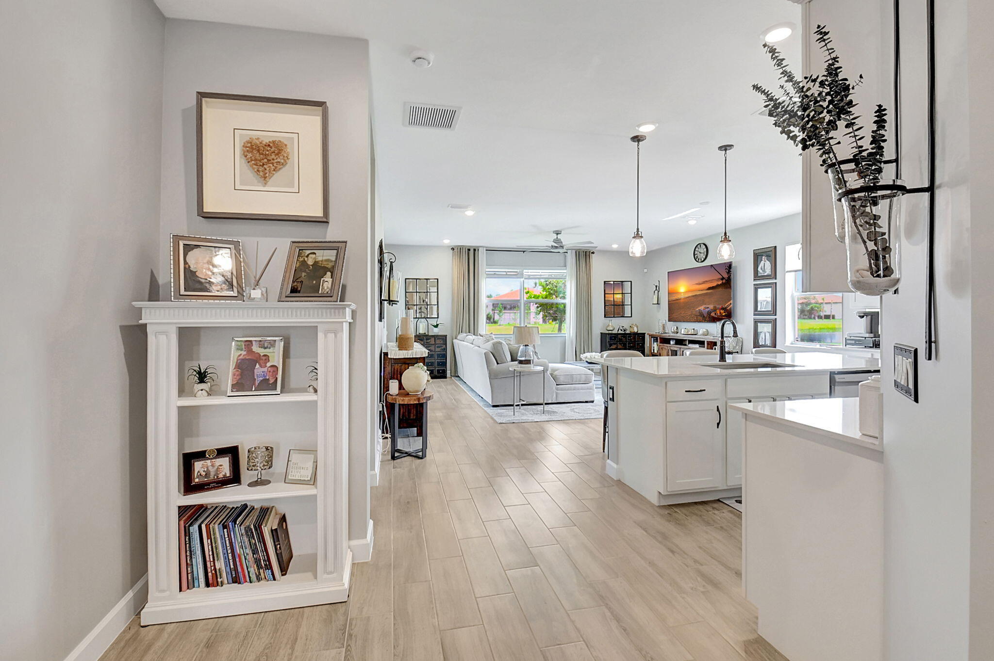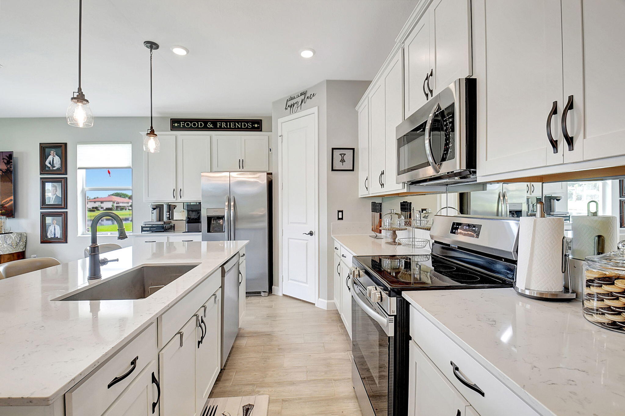 Fantastic opportunity to own this elegant NOW VACANT home with a lakefront view in active 55+ community with luxury amenities, just minutes to the beach, boutiques, and dining on the Ave, or charming Pineapple Grove. Lightly lived in seasonal home impeccably cared for is beautifully appointed with designer upgrades including porcelain tile, custom mirror backsplash, glass entry, a current palate; and practical ones like full impact windows that fill the home with light without excess solar gain. Enjoy the best of Florida living with 3 resort style pools, clubhouse, fitness facility, restaurant, tennis, and pickleball. Sidewalks and street lights offer a walkable community and this home's ideal location places you a short stroll to the amenities. See docs for more upgrades and features.