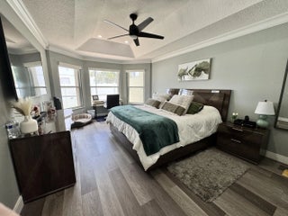 Completely remodeled 3-bedroom, 2-bath single-story home with a 2-car garage in the highly desirable gated community of Symphony Bay. This light and bright home features vaulted ceilings, a spacious open layout, and a split floor plan. Situated on a corner lot with a screened patio, lanai, and grassy yard--perfect for outdoor living. The updated kitchen boasts granite countertops, crisp white cabinets, tiled backsplash, and stainless-steel appliances. Recessed lighting throughout adds a modern touch. The luxurious primary suite includes tray ceilings, walk-in closet, dual sinks, soaking tub, and separate shower. Full accordion shutter storm protection. Enjoy resort-style amenities: pool, tennis, basketball, pickleball, playground, gym, and clubhouse.