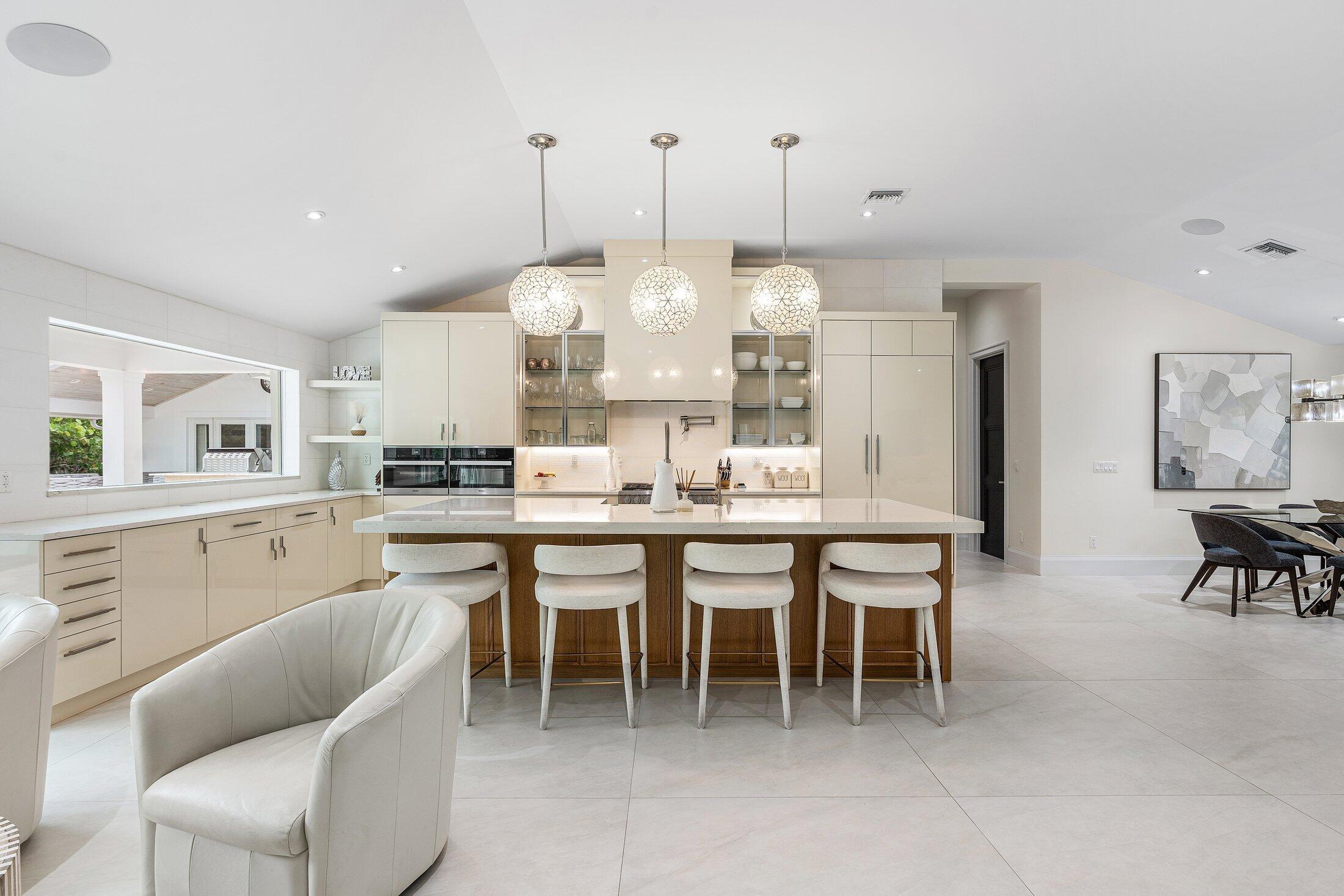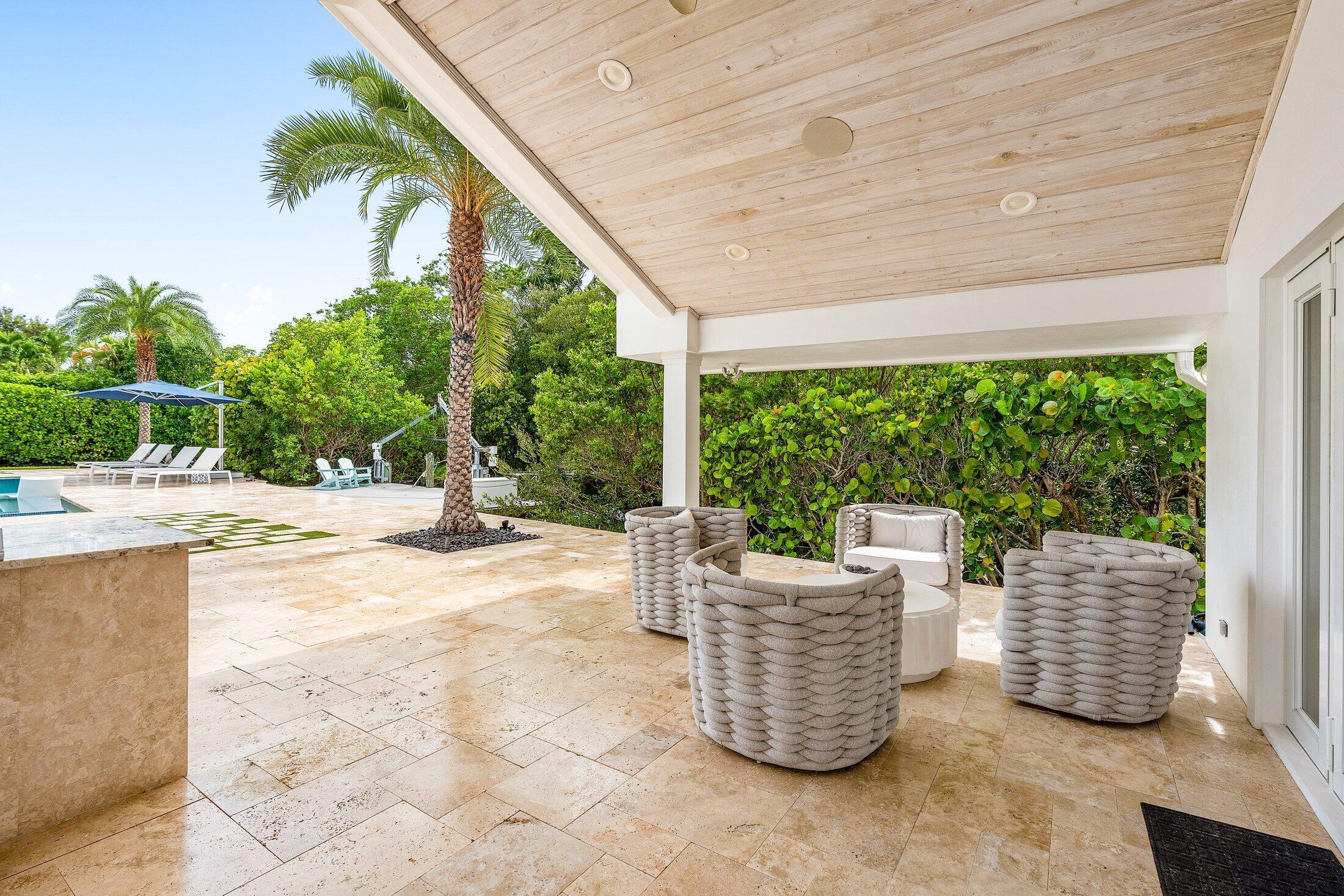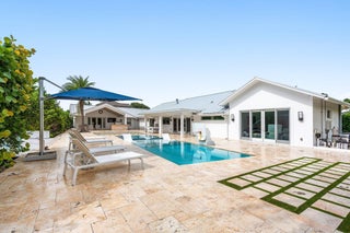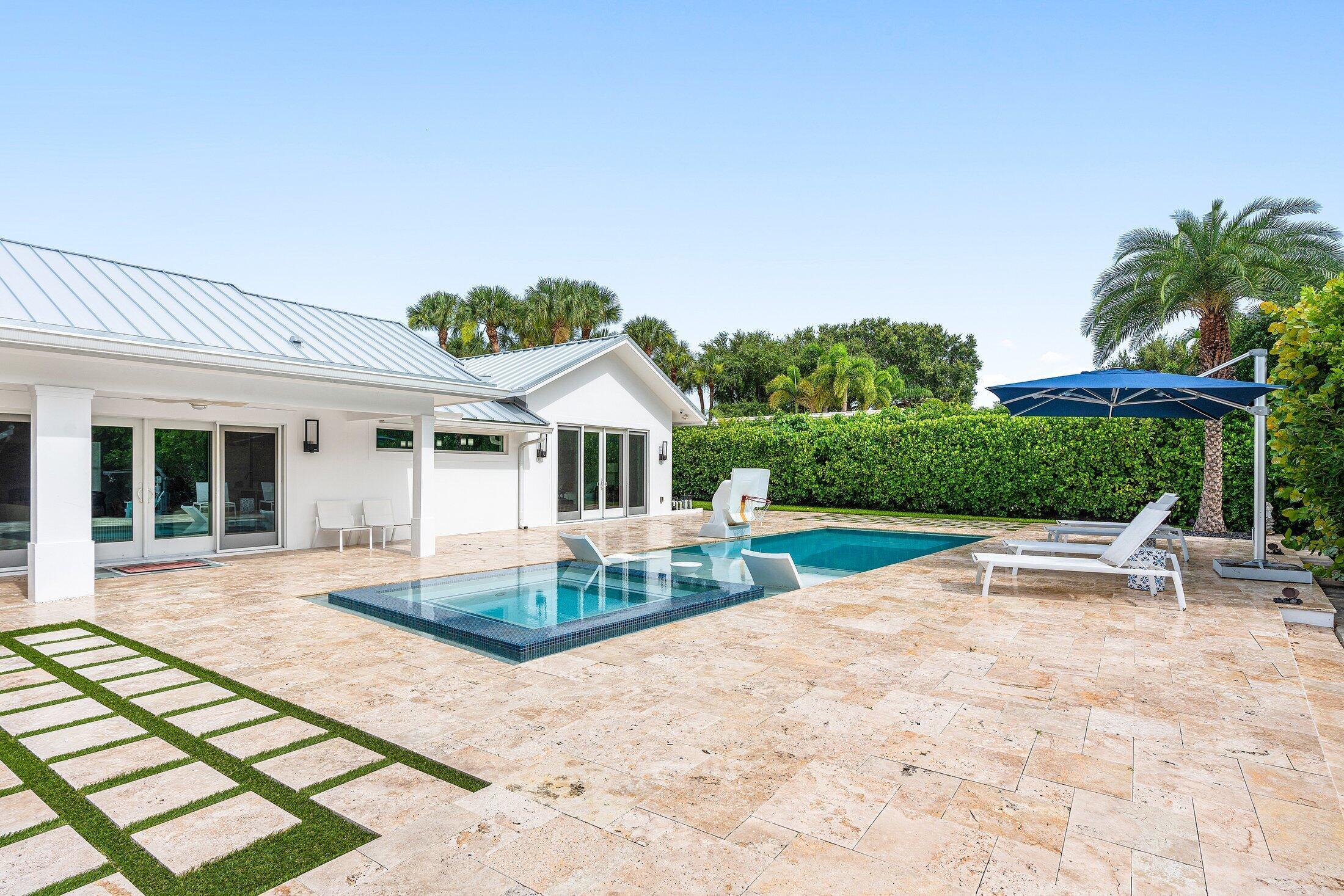 Completely Renovated Waterfront Estate in Hidden Key5 Bedrooms | 4.5 Baths | Guest House | 146' of WaterfrontLocated in the prestigious, gated enclave of Hidden Key, this exceptional residence was fully renovated in 2022, including the addition of a luxurious primary suite. With 5 bedrooms, 4.5 bathrooms, and a thoughtfully designed 2-bedroom guest house, the home offers both space and flexibility for family, guests, or multigenerational living.Every detail has been elevated--from the new roof, HVAC systems, electrical, and plumbing to the raised 12-foot ceilings with new trusses, creating a bright, open interior that feels both expansive and refined.Designed for the discerning buyer, the home features Miele appliances, custom solid wood cabinetry, quartz countertops throughout.The expansive outdoor area is your private retreat, complete with a saltwater pool with sun shelf, a 16-person spa, and a brand-new outdoor kitchen and barperfect for entertaining in style. Enjoy 146 feet of private canal frontage, a new synthetic dock ideal for a boat up to 22 feet, and no fixed bridges to the Intracoastaloffering seamless access to open water. With no HOA fees, gated privacy, and a prime location just minutes from world-class beaches, dining, golf, and shopping, this immaculate property offers the best of the Florida lifestyleelegantly and effortlessly.