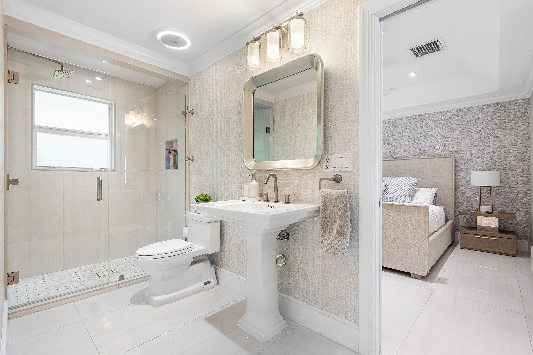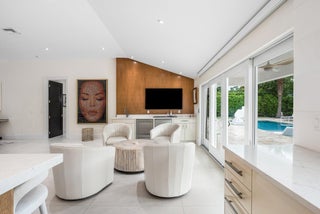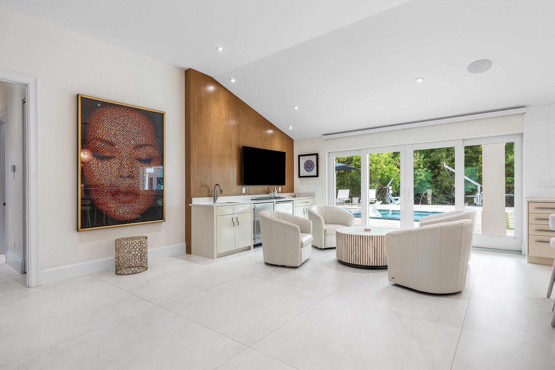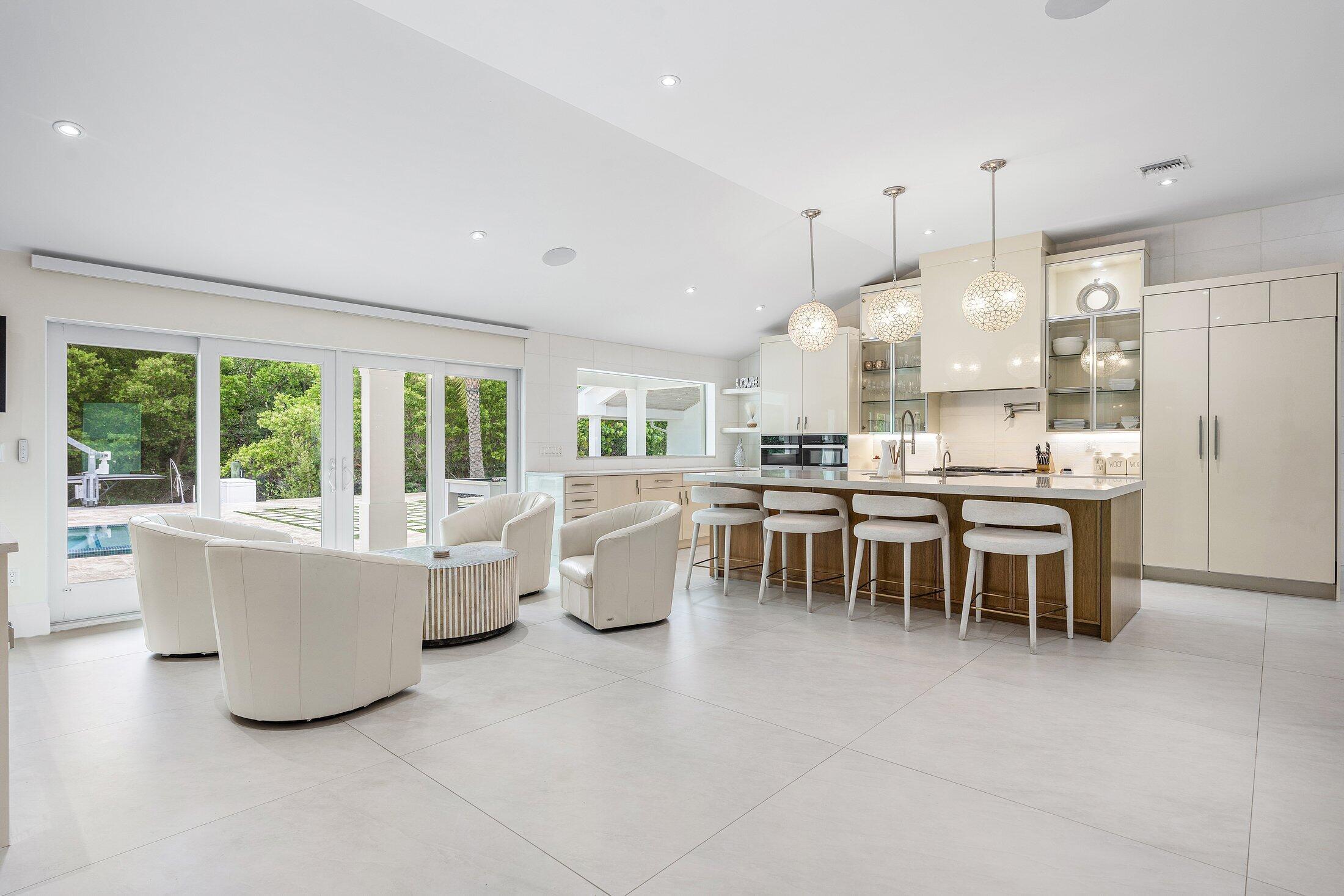 Completely Renovated Waterfront Estate in Hidden Key5 Bedrooms | 4.5 Baths | Guest House | 146' of WaterfrontLocated in the prestigious, gated enclave of Hidden Key, this exceptional residence was fully renovated in 2022, including the addition of a luxurious primary suite. With 5 bedrooms, 4.5 bathrooms, and a thoughtfully designed 2-bedroom guest house, the home offers both space and flexibility for family, guests, or multigenerational living.Every detail has been elevated--from the new roof, HVAC systems, electrical, and plumbing to the raised 12-foot ceilings with new trusses, creating a bright, open interior that feels both expansive and refined.Designed for the discerning buyer, the home features Miele appliances, custom solid wood cabinetry, quartz countertops throughout.The expansive outdoor area is your private retreat, complete with a saltwater pool with sun shelf, a 16-person spa, and a brand-new outdoor kitchen and barperfect for entertaining in style. Enjoy 146 feet of private canal frontage, a new synthetic dock ideal for a boat up to 22 feet, and no fixed bridges to the Intracoastaloffering seamless access to open water. With no HOA fees, gated privacy, and a prime location just minutes from world-class beaches, dining, golf, and shopping, this immaculate property offers the best of the Florida lifestyleelegantly and effortlessly.