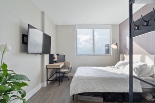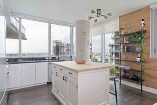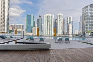 Completely renovated 2BD corner unit with stunning views overlooking Brickell and the Miami River. From wooden accent walls to chic light fixtures, the unit exudes modern luxury. The beautiful kitchen combines high-gloss cabinetry with both wooden and black countertops to create a sleek look. Located on the 31st floor, enjoy the breeze at sunrise with eastern-facing balcony views. The windows span west, north, and east, offering panoramic city views. In the primary bedroom, an abundance of natural light floods through sliding doors that open to a private balcony. The light extends into the gorgeous primary bathroom, where a frosted glass shower wall looks onto the room. The second bedroom also features an ensuite bathroom.The unit is in a modern, renovated building called The MintThe Mint offers a pool overlooking the river, a great fitness center, and an excellent location.