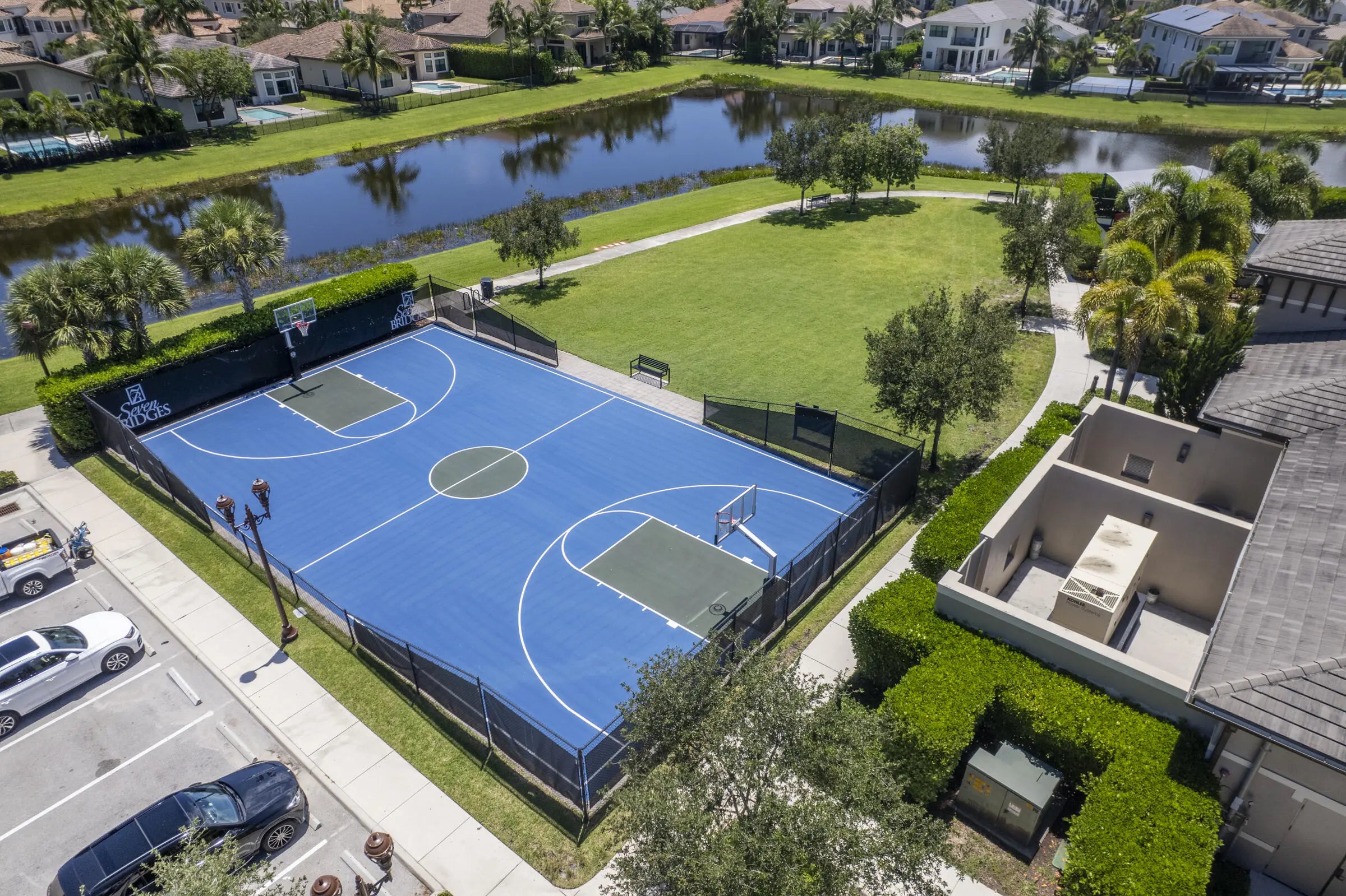 Welcome to one of the most exceptional and private properties in prestigious Seven Bridges. Situated on a rare and expansive 1/2-acre lot, this estate offers unparalleled space, serenity, and sophistication--perfect for families, pets, and those who love to entertain. Inside, soaring ceilings and natural light enhance the open layout. The chef's kitchen features high-end appliances and a walk-in pantry. The primary suite includes dual baths, a sitting room, two walk-in closets, and a secluded screened balcony. Upstairs offers a loft, study area, and two ensuite bedrooms. Two additional guest bedrooms and theater are located on the main floor. This residence is equipped with a Control4 system for the lights and audio. A rare opportunity in a prime location with countless upgrades.