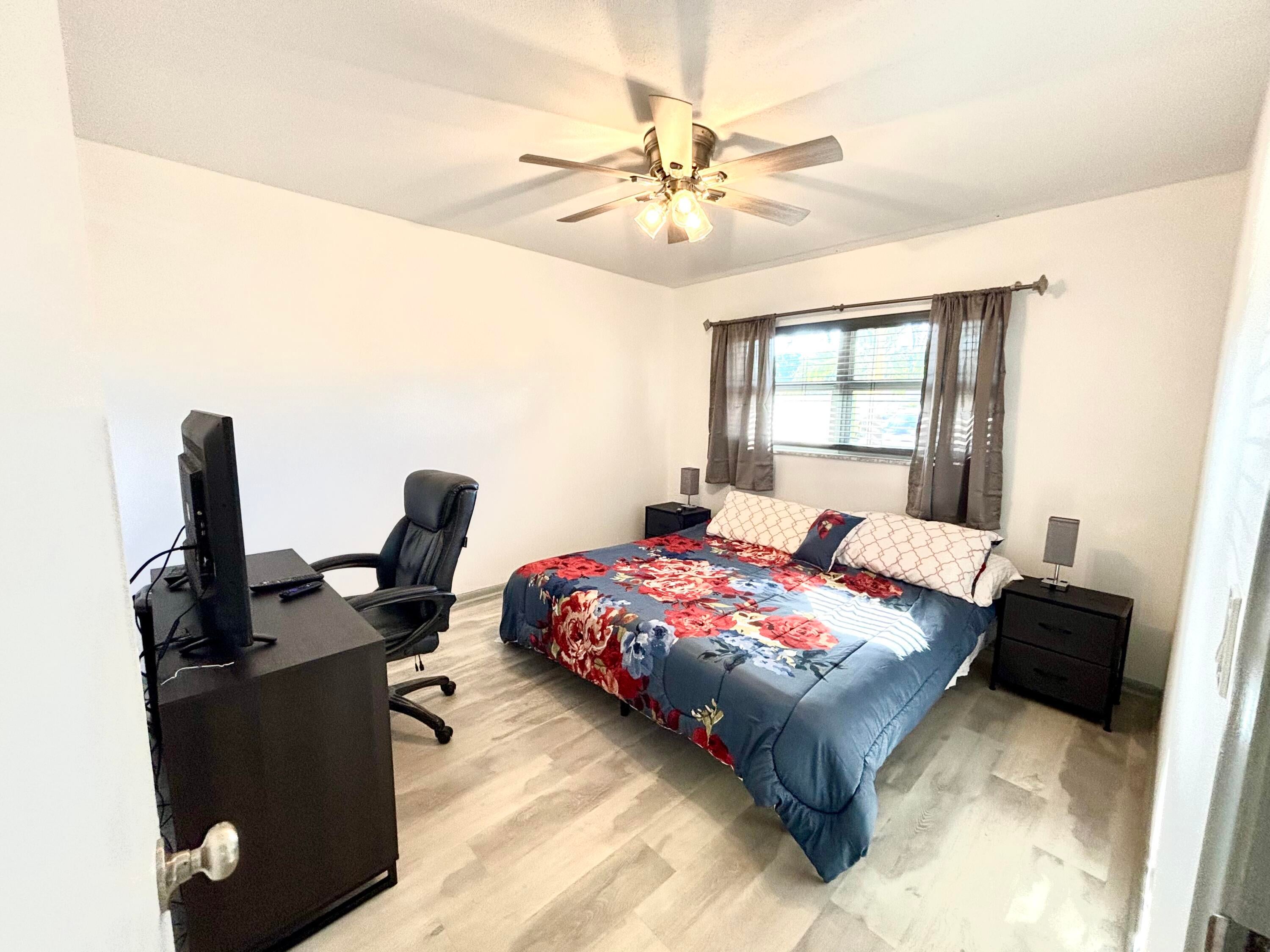 Beautifully updated and fully furnished, this 55+ 2/2 condo is truly move-in ready. The home was completely redone in 2024, including a new electrical panel, with a new HVAC and water heater installed in 2025. You'll love the open layout, the fresh flooring throughout, and the modern kitchen with stainless appliances and soft, adjustable LED lighting.The bright Florida room offers storage and opens to a private, nicely landscaped patio--a great spot to relax. The primary bedroom features a walk-in shower and a ADJUSTABLE king bed that stays with the home. A rare bonus: in-unit laundry and an assigned parking spot right at your front door.The HOA covers nearly everything except electric, all building milestones are complete. Conveniently located just off I-95 and minutes from beach.