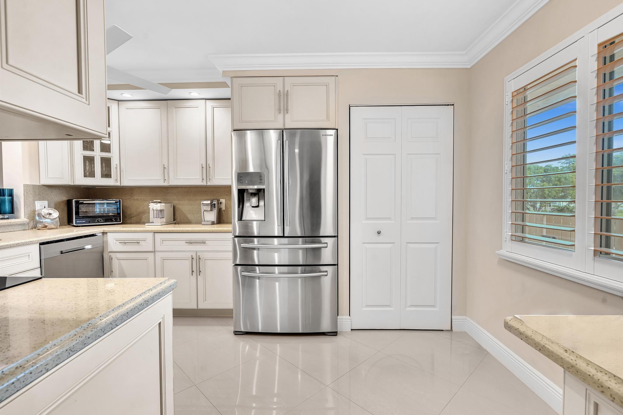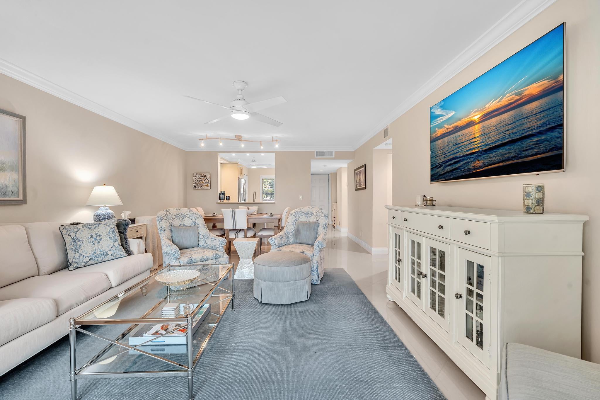 One-of-a-Kind, 2 Bed / 2 Bath END UNIT Condo in the Highly Sought-After Huntington Lakes! No detail has been overlooked in this decorator's showcase, featuring top-of-the-line finishes, FULL IMPACT WINDOWS & DOORS for superior hurricane protection, added noise reduction, and energy efficiency that helps lower A/C costs. As an end unit, this home offers extra privacy and an abundance of natural light. Interior highlights include elegant crown molding, stainless steel appliances, French doors in the primary suite, and exceptional craftsmanship throughout. Meticulously maintained and move-in ready, with breathtaking pool & lake views from your private lanai. Furniture Negotiable. Located in a premier 55+ community with a recently renovated clubhouse with a state-of-the-art fitness center,five pools, theater, art room, tennis & pickleball courts, plus a vibrant calendar of clubs & activities. Just minutes from Downtown Delray's award-winning restaurants, boutique shopping, and pristine beaches. This is the lifestyle you've been waiting for.