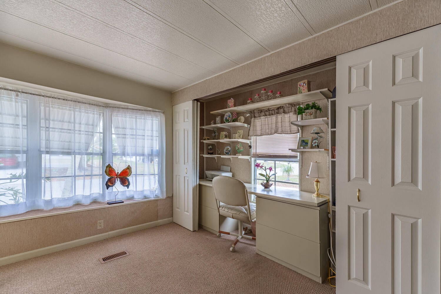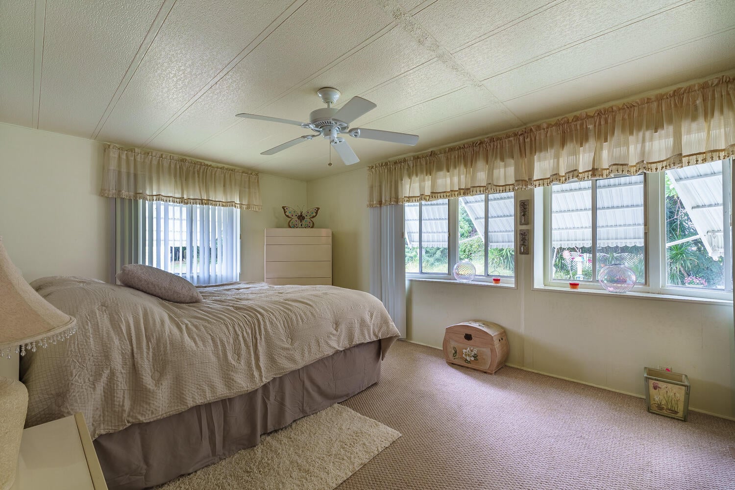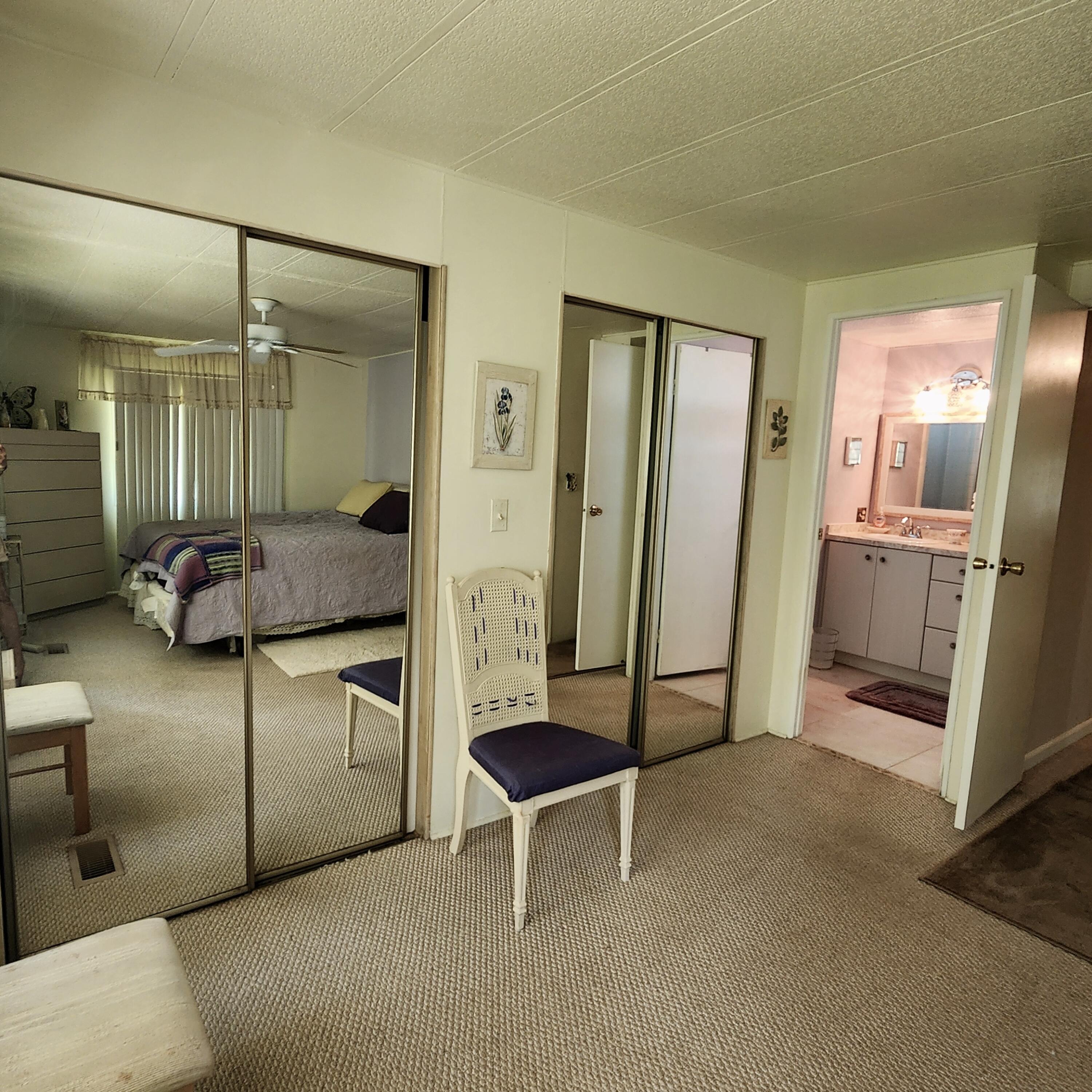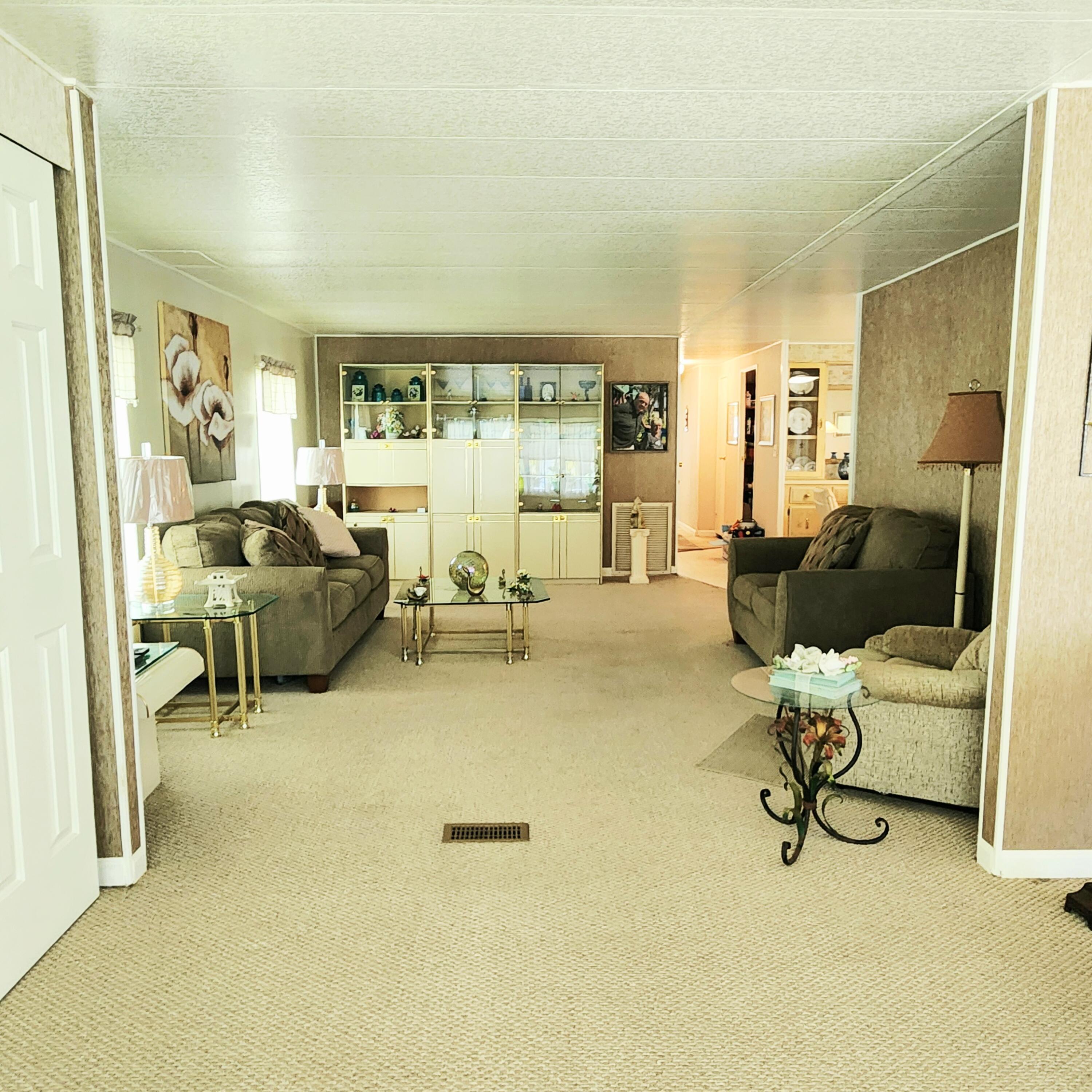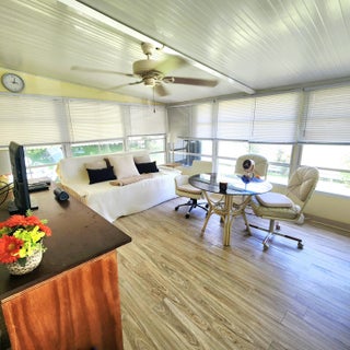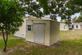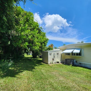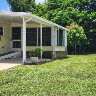 Pup's Paradise and/or Gardener's Delight here w/ Private Yard Area! Furnished 2bed/2bath w/ a carpeted Ramp for easy access or opt to use the steps. Great outdoor Lot w/ a shed has tropical vibe - great for Lounging,Gardening & Pets. Beautiful, well lit, enclosed Patio/Florida Rm w/ AC and Shutters doubles as an extra room/den/office & more! Master bedroom features an en-suite bathroom & both bedrooms offer generous closet space. AC 2022. PRIME LOCATION; close to the beach, the mall, grocery stores, diners, coffee shops, post office, banks, pharmacy, hospitals & more. Lot lease of 930.98 includes lawn care, trash, private, free golf course, heated pool, pickleball, tennis, shuffleboard, bocce, gym, library, cards, Mahjong, bible study, wood workshop, dinners, parades, dances & more!