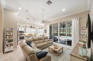 Stunning estate home nestled on the14th fairway of the Wannamaker course at PGA Village. Whether you are entertaining friends around the pool with a golf course view or family gatherings in this magnificent home, the well thought out floor plan will suit the occasion. From the soaring ceiling and staircase upon entering, to the eat in kitchen and family room, the crown moulding accentuates the elegance. While the breakfast area overlooks the pool, the Owners Suite, office, powder room and laundry are also on the 1st floor. Also private study/office on 1st floor. Unique on the 2nd floor is the 2nd Master Suite with balcony. 2 additional bedrooms, as well as a full bath complete the 2nd floor. Best price per sq. ft. in the PGA!