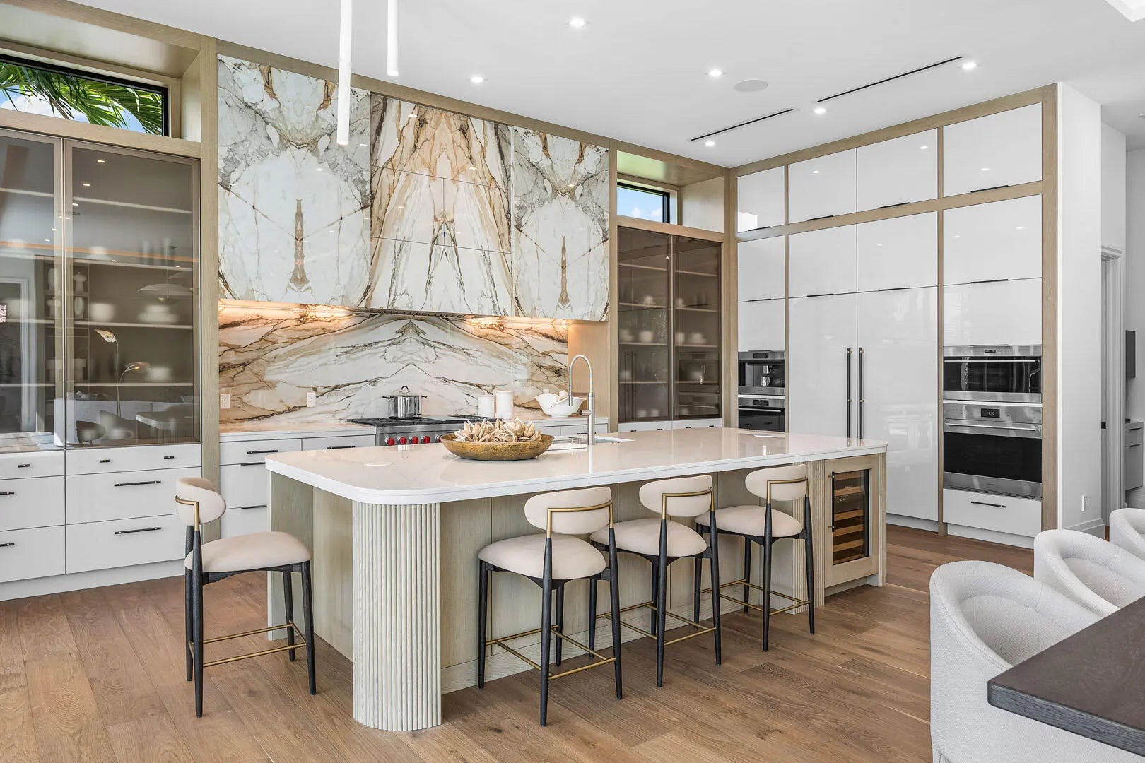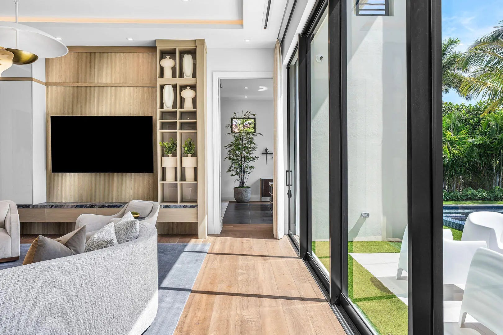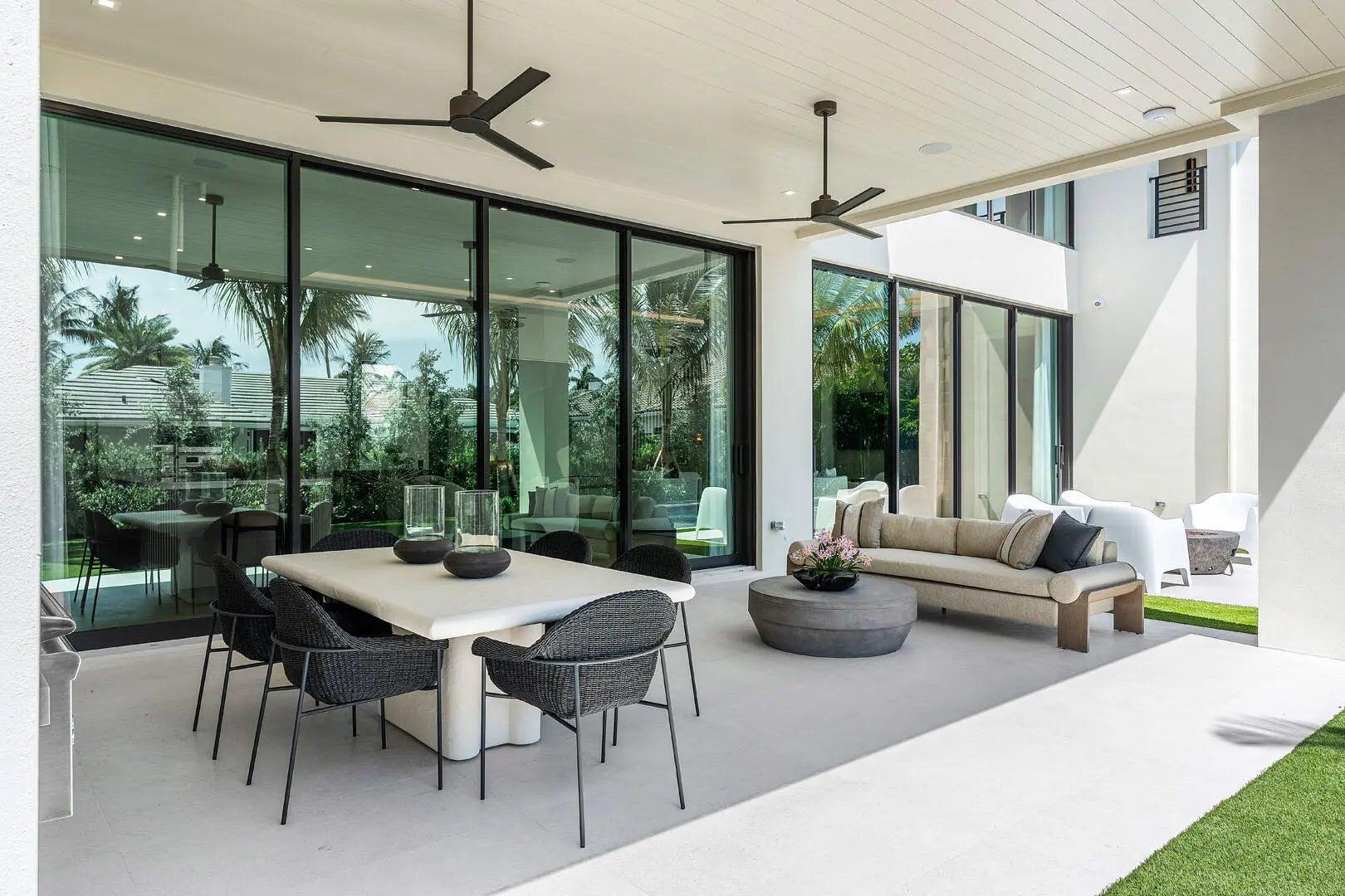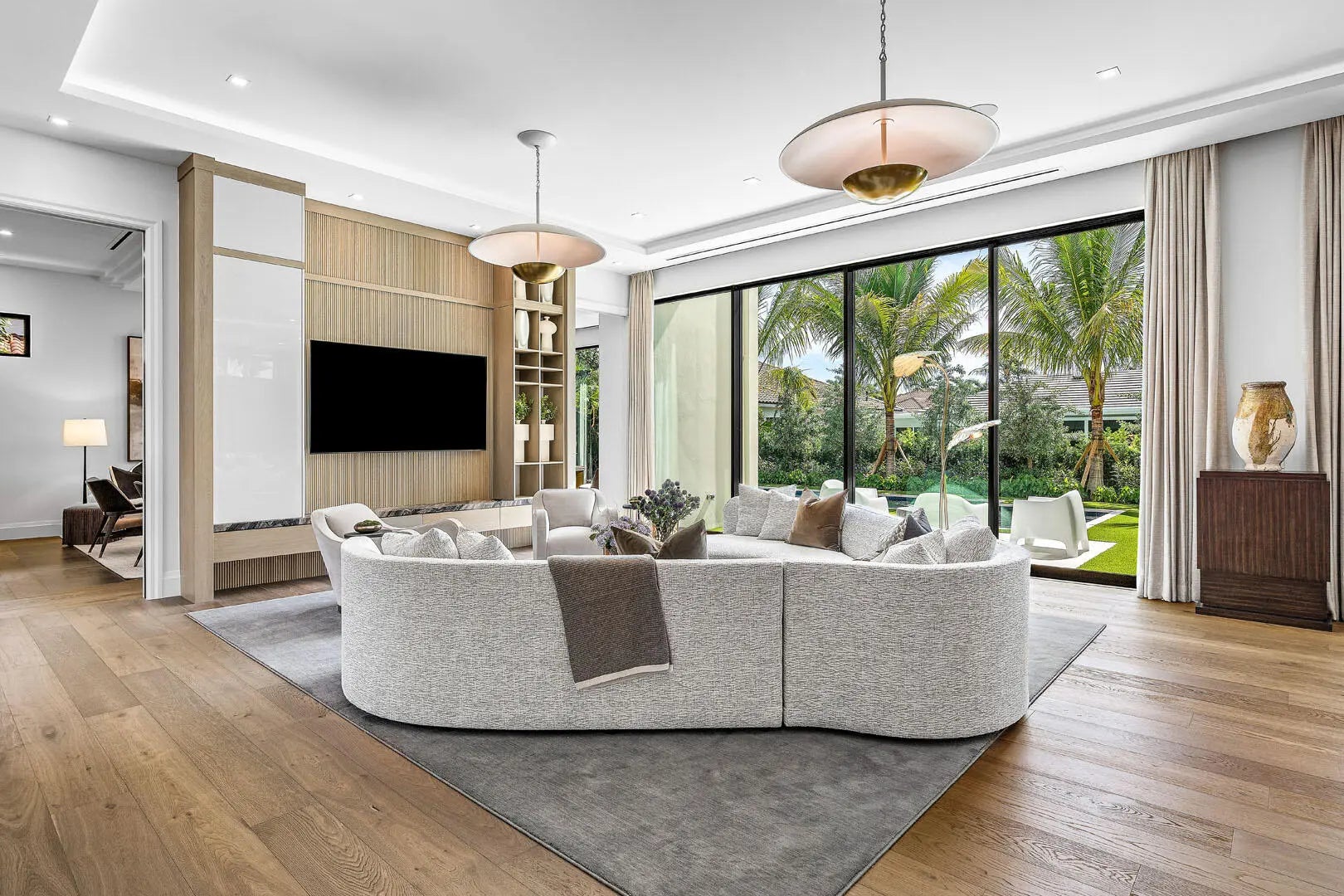 Introducing an exceptional new estate by Compson Homes, masterfully crafted for modern living and fully furnished by the award-winning Lesly Maxwell Interiors. Encompassing over 5,900 square feet under air, this 5-bedroom residence includes a dedicated wellness suite with full bath and sauna and 7.1 baths throughout--offering a seamless balance of luxury, comfort, and design-forward sophistication.A free-flowing floor plan connects the main living spaces, where clean-lined interiors, high ceilings, and bespoke finishes create an effortlessly elegant atmosphere. The gourmet kitchen is functional and striking, featuring top-of-the-line Wolf and SubZero appliances and a layout designed for serious chefs and social gatherings. A stylish club room with office and wet bar adds a