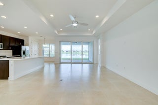 Meticulously maintained home features a spacious open-concept floor plan, blending luxury and comfort in every detail. Enjoy 2 bedrooms + a den (or optional 3rd bedroom), 2.5 bathrooms, and elegant finishes throughout--including high ceilings, gourmet kitchen with quartz countertops, stainless steel appliances, and 42'' wood cabinetry. From the moment you step through the glass front door, you're greeted by expansive lake views that pour in through large impact windows and sliding doorscreating a bright, inviting atmosphere that feels like home. Step outside to your covered lanai, the perfect place to enjoy morning coffee or evening sunsets. With one of the largest backyard spaces in the community, there's ample room to customize a resort-style pool or entertainment area with complete privacy and tranquil views. Located in the 55+ Valencia Grove community, residents enjoy access to world-class amenities, including a state-of-the-art clubhouse, fitness center, resort-style pools, tennis and pickleball courts, bocce courts, walking trails, and so much more. Don't miss this rare opportunity to own one of the most desirable lots in Valencia Grove. Whether you're relaxing by the lake, entertaining guests, or taking advantage of the vibrant lifestyle offerings, this home has it all.