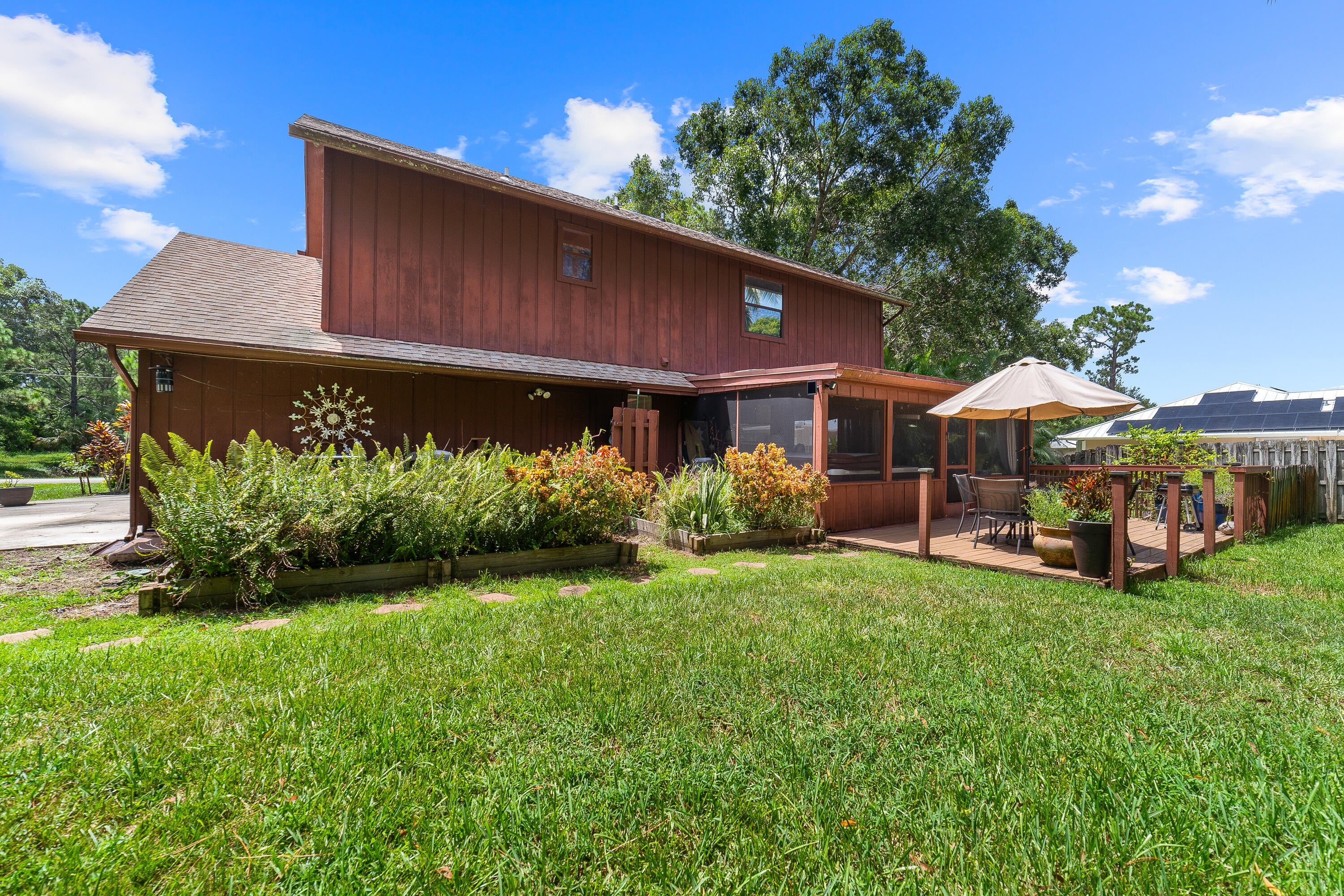 Welcome to this inviting two-story home in the sought-after Northport Village community of Port Saint Lucie. Designed for comfort and easy living, this residence features a spacious open layout that seamlessly connects the living areas, creating an ideal setting for both everyday living and entertaining.Step outside to your own private tropical retreat, where lush palm trees frame a tranquil koi pond and a gentle stream runs along the side of the property. The screened-in back patio, complete with a relaxing jacuzzi, offers the perfect spot to unwind or host gatherings while enjoying the serene surroundings.Practical updates include a new AC and a new water heater, both installed in 2022. The property also features a large driveway and dedicated parking on the south side of the home.with an RV or boat. Directly across the street, a scenic nature preserve enhances the sense of privacy and provides beautiful views, adding to the peaceful atmosphere of this home. Set within an established neighborhood known for its convenience and charm, this property offers a rare opportunity to enjoy both comfort and nature in one exceptional setting.