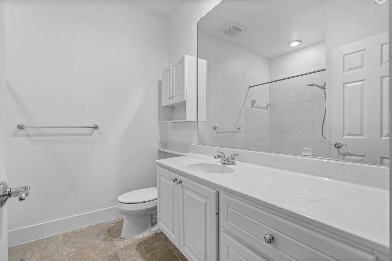 This beautifully updated 3-bedroom, 2.5-bath end-unit townhouse with a one-car garage offers the perfect blend of comfort, style, and convenience. Tucked along a charming tree-lined street, you'll love the peaceful green space views from both your front porch and private balcony - the ideal spots for morning coffee or winding down in the evening.Inside, the open layout welcomes you with neutral tile flooring downstairs and warm wood laminate upstairs. The kitchen and bathrooms feature freshly updated cabinetry by the highly sought-after Not Too Shabby Co., bringing a fresh, modern feel throughout the home. The spacious primary suite is a true retreat, with a walk-in closet + second closet, and an ensuite bath boasting a double vanity, soaking tub, and separate shower. Two additionalbedrooms provide excellent closet space, plus there's bonus storage under the stairs. Just steps from your front door, you'll find the community clubhouse and pool, making it easy to enjoy a resort-style lifestyle without leaving home. Centrally located in the heart of Abacoa, Martinique offers quick access to restaurants, shops, golf, Roger Dean Stadium, and top-rated schools all while being only minutes from the beach. Schedule your showing today and come live where others only vacation! No pets and no smoking permitted. Move-in requirements: 1st, Last, Security deposit, $250 Exit Cleaning Fee, Renters insurance & HOA Approval, background, credit, and eviction checks for all applicants 18 years and older.
