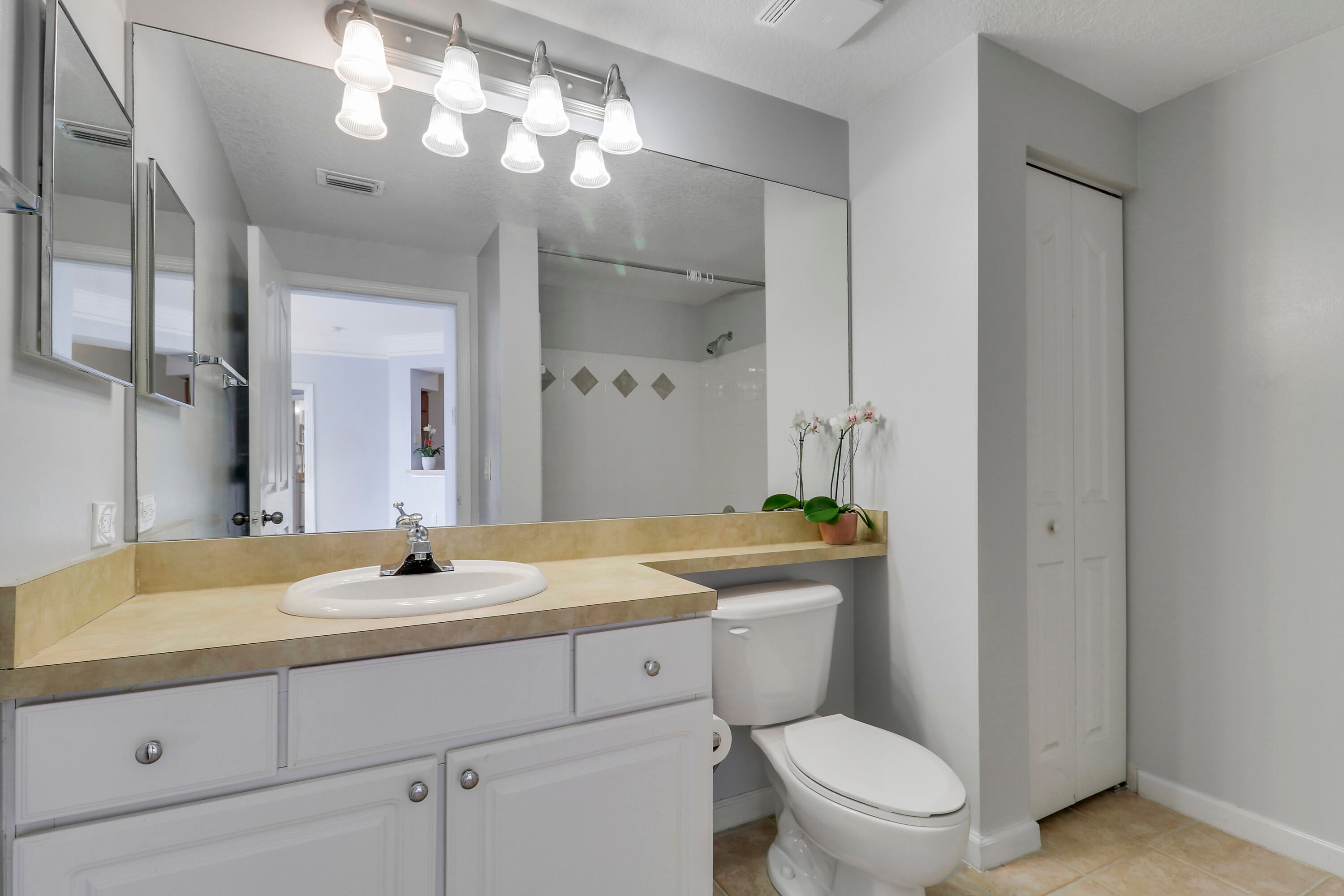 Beautifully Bright 2-Bedroom Condo with Pool Views in Prime Location. This fantastic 2 bedroom, 2 bathroom end unit condo is filled with natural light and offers serene pool views, soaring 10-foot ceilings, and a thoughtfully expanded kitchen--ideal for everyday living and entertaining. A full-size washer and dryer add extra convenience. Located in Fiore at the Gardens, this secure gated community offers true resort-style living with top-tier amenities: a stunning pool, screened outdoor dining area with BBQ grill, putting green, fitness center, playground, and on-site car wash. All of this just 4 miles from the pristine beaches of Jupiter!