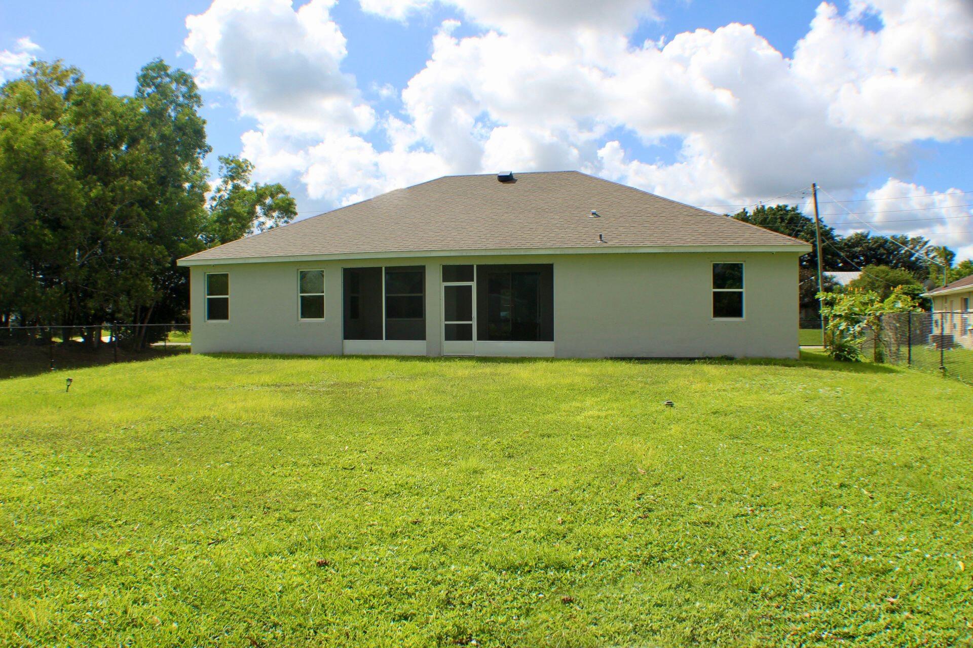 Welcome to your dream home in beautiful Port St. Lucie! Built in 2023, this stunning 4-bedroom, 3-bath single-family residence offers modern living with an open and functional layout perfect for families and entertaining.Enjoy cooking in the stylish kitchen featuring stainless steel appliances, sleek cabinetry, and a spacious island that flows effortlessly into the main living and dining areas. The home includes a split-bedroom floor plan for added privacy and convenience.Step outside to a screened porch overlooking a large backyard -- perfect for weekend barbecues, gatherings, or simply relaxing under the Florida sun.Additional features include a 2-car garage, ample storage space, and a prime location close to major highways, shopping, dining, and top-rated schools.