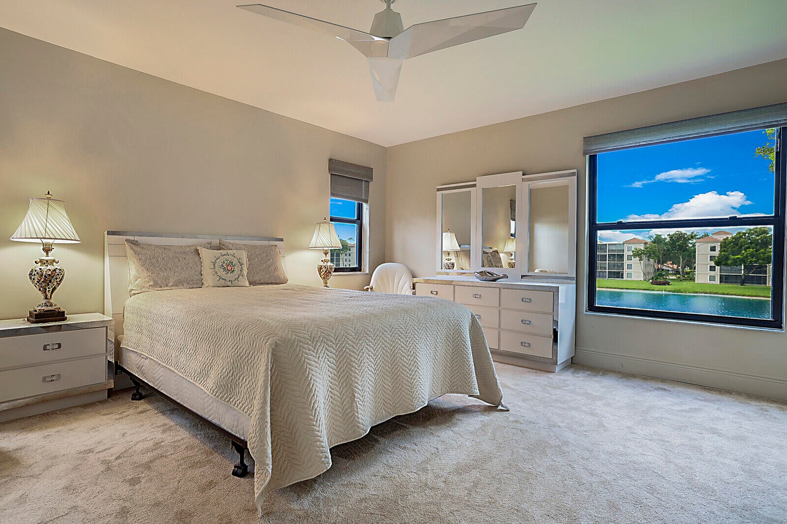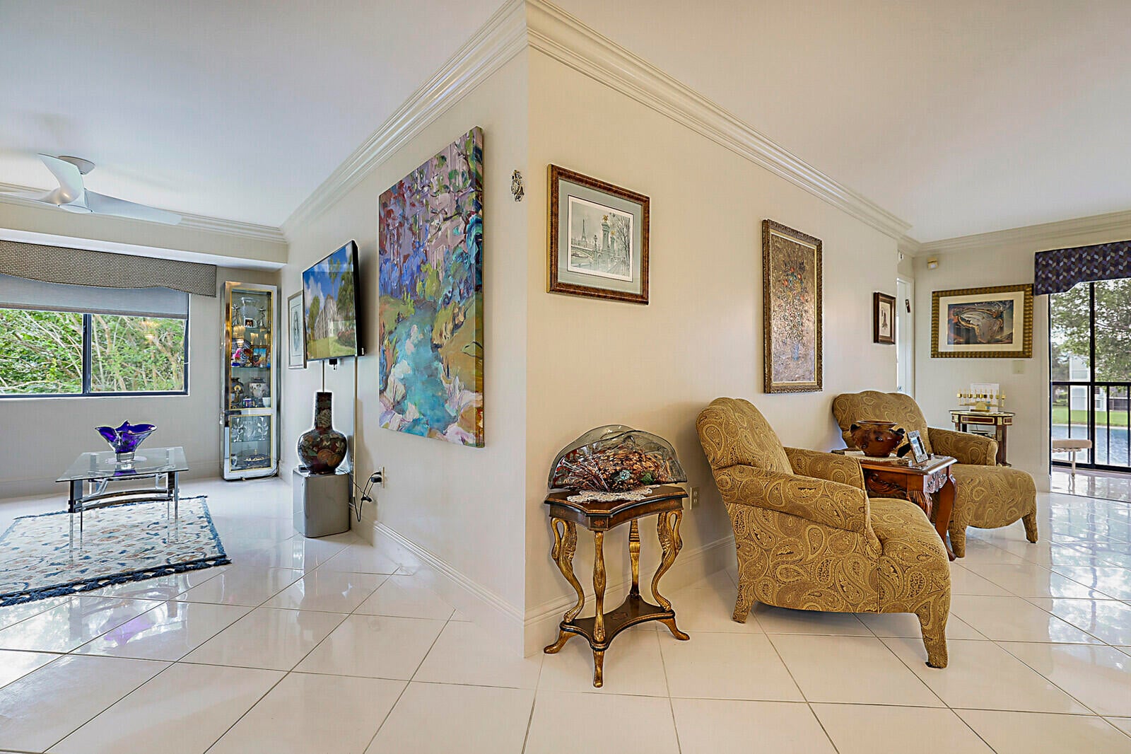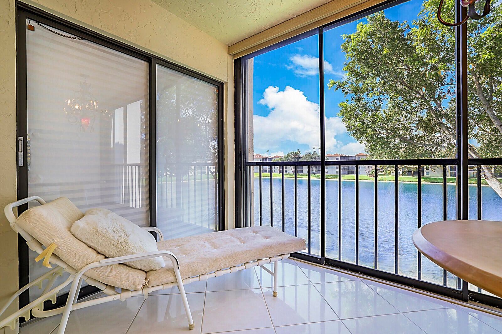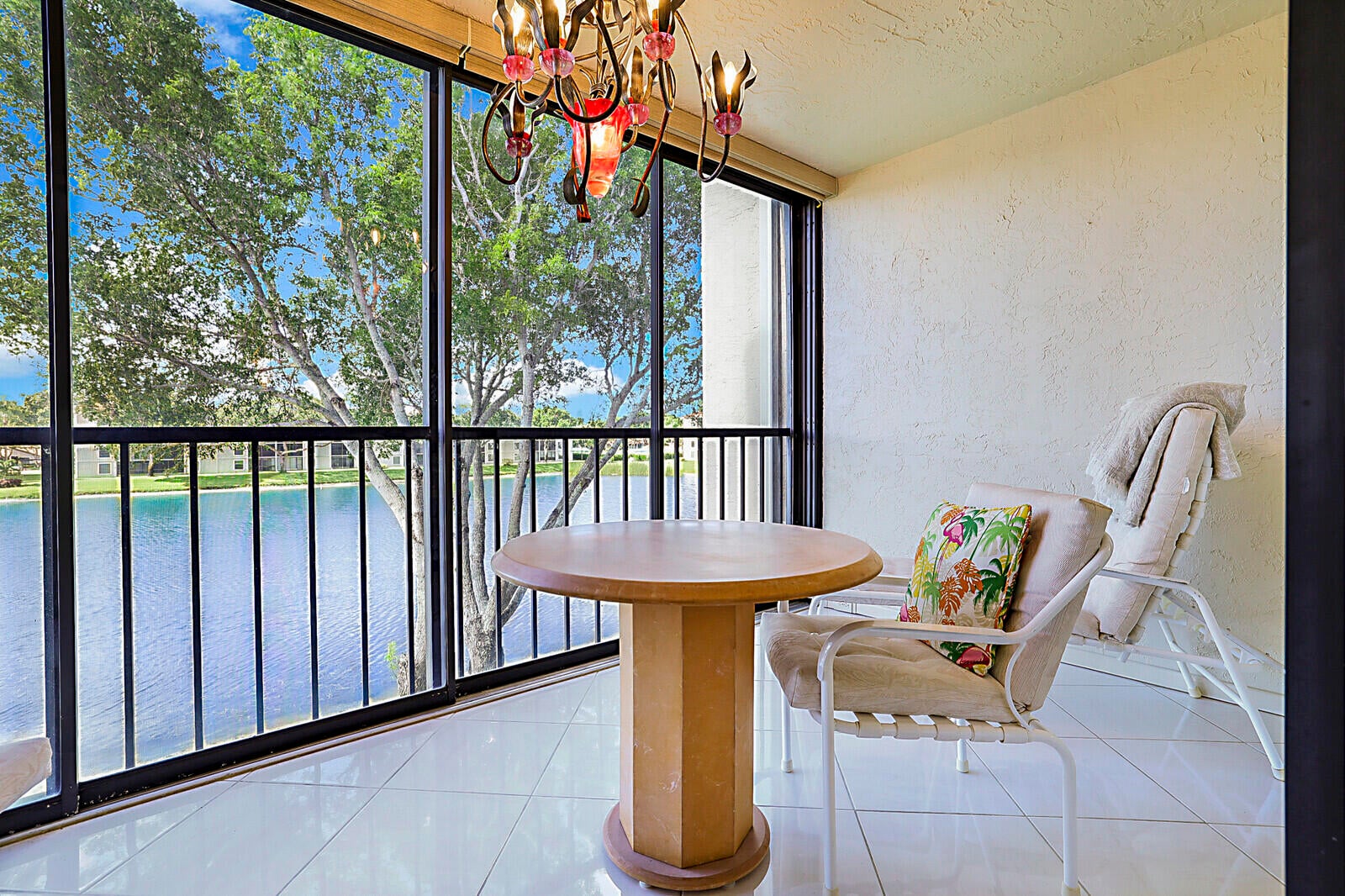 Live every day like you're on vacation in this beautifully designed condo that blends style, comfort, and serene water views. From the moment you step inside, you'll be greeted by a bright, open living space with gleaming tile floors, crown molding, and an airy flow that's perfect for relaxing or entertaining. The elegant dining area sparkles under a crystal chandelier, setting the tone for unforgettable gatherings. The updated kitchen offers plenty of cabinetry, sleek counters, and a pass-through window for easy conversation while cooking. Both bathrooms have been updated to a modern elegant style. Wake up to peaceful water views from the master bedroom, then savor your morning coffee on the screened back patio overlooking the water and lush green space. With its tasteful finishes,inviting layout, and an unbeatable backdrop, this home delivers the resort-style lifestyle you've been dreaming of!