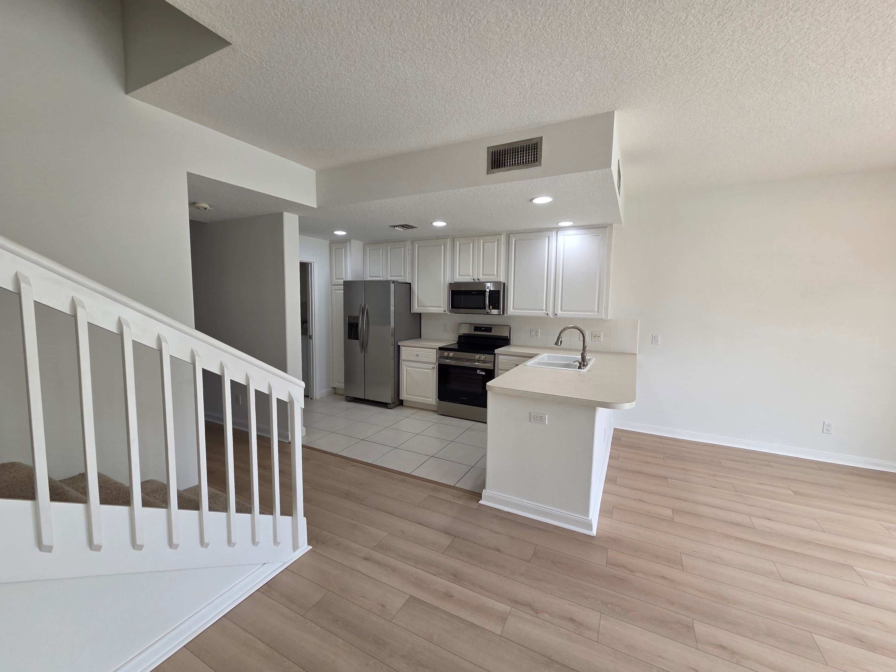 Price Reduced!! Brand New Flooring + Brand New Appliances!Welcome to this inviting 3 bed, 3 bath, 2-story townhouse located in the desirable Martinique community of Abacoa. Situated as an end unit, this home offers ample green space in the rear and side yards, plus, two front porches, providing a private and tranquil setting. Upon entering, you are greeted by a bright and open floor plan featuring high ceilings and a freshly painted interior. The first floor encompasses an adaptable space with brand new wood flooring throughout, complemented by a full bath nearby. The spacious living area seamlessly flows into the dining and kitchen areas, perfect for both casual family meals and entertaining. Step outside to enjoy the screened-in lanai, ideal for year-round entertaining and relaxation.
