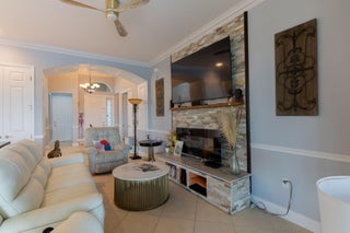 Beautifully Upgraded Lake View Home with Saltwater Pool and Jacuzzi!!Don't miss your chance to own this stunning 3-bedroom, 2-bath lake view home with a versatile flex room. The kitchen features elegant Monaco quartzite countertops, and tile flooring flows throughout for easy maintenance. Crown molding and chair rails add a touch of elegance to the living spaces.Enjoy resort-style living in your private backyard oasis! The saltwater pool with integrated jacuzzi and heater overlooks a tranquil lake. The expansive screened-in lanai includes a fully equipped outdoor kitchen with granite countertops--ideal for entertaining. New grass recently installed for a fresh, vibrant look!