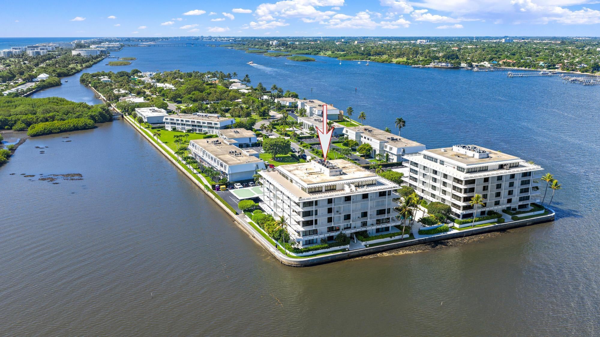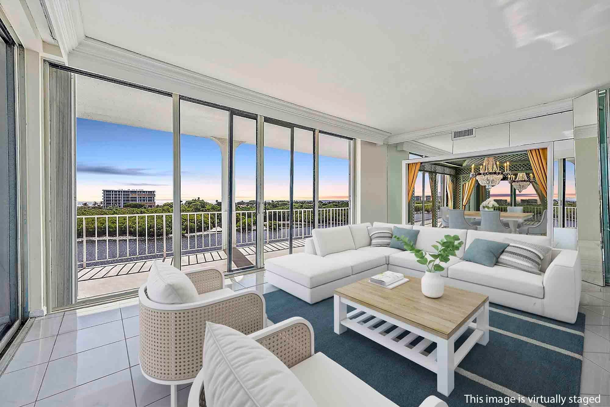 Extraordinary Penthouse with Intracoastal and Ocean views - located in the northeast corner with west views too, across the broadest expanse of the Intracoastal from Tower Vallencay. Simply the best penthouse in the most desirable line of architect Eugene Lawrence's mid-century masterpiece. Landmarked in 2022, this Ibis Isle gem is part of the exclusive boutique buildings, Tower Vallandry and Tower Vallencay, each with only 22 residences. This rarely available apartment boasts a stunning 766-square-foot wraparound covered balcony. The ideal split-bedroom floor plan provides privacy for both owners and guests with their own suites...Floor-to-ceiling windows deliver unobstructed views and abundant natural light in the living room, dining area, and bedrooms. Buyers will value the chance to renovate and personalize this exceedingly rare opportunity. Cross the bridge into the peaceful Palm Beach community of Ibis Isle, walk the south part of Sloan's Curve Lake Trail, and enjoy Phipps Ocean Park, or drive just 5 minutes along Billionaire's Row on South Ocean Blvd to Worth Ave. See the photography, then schedule an appointment.