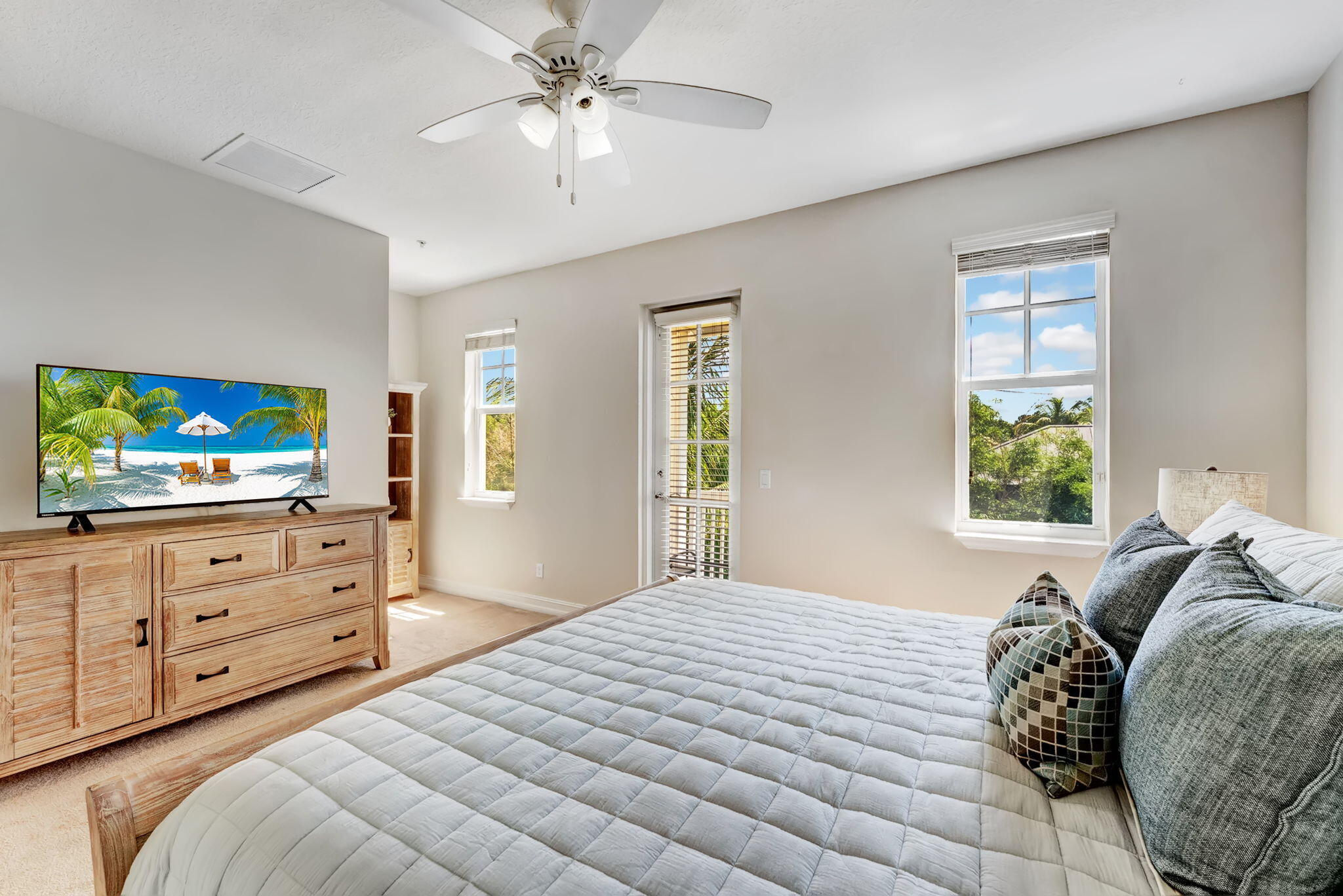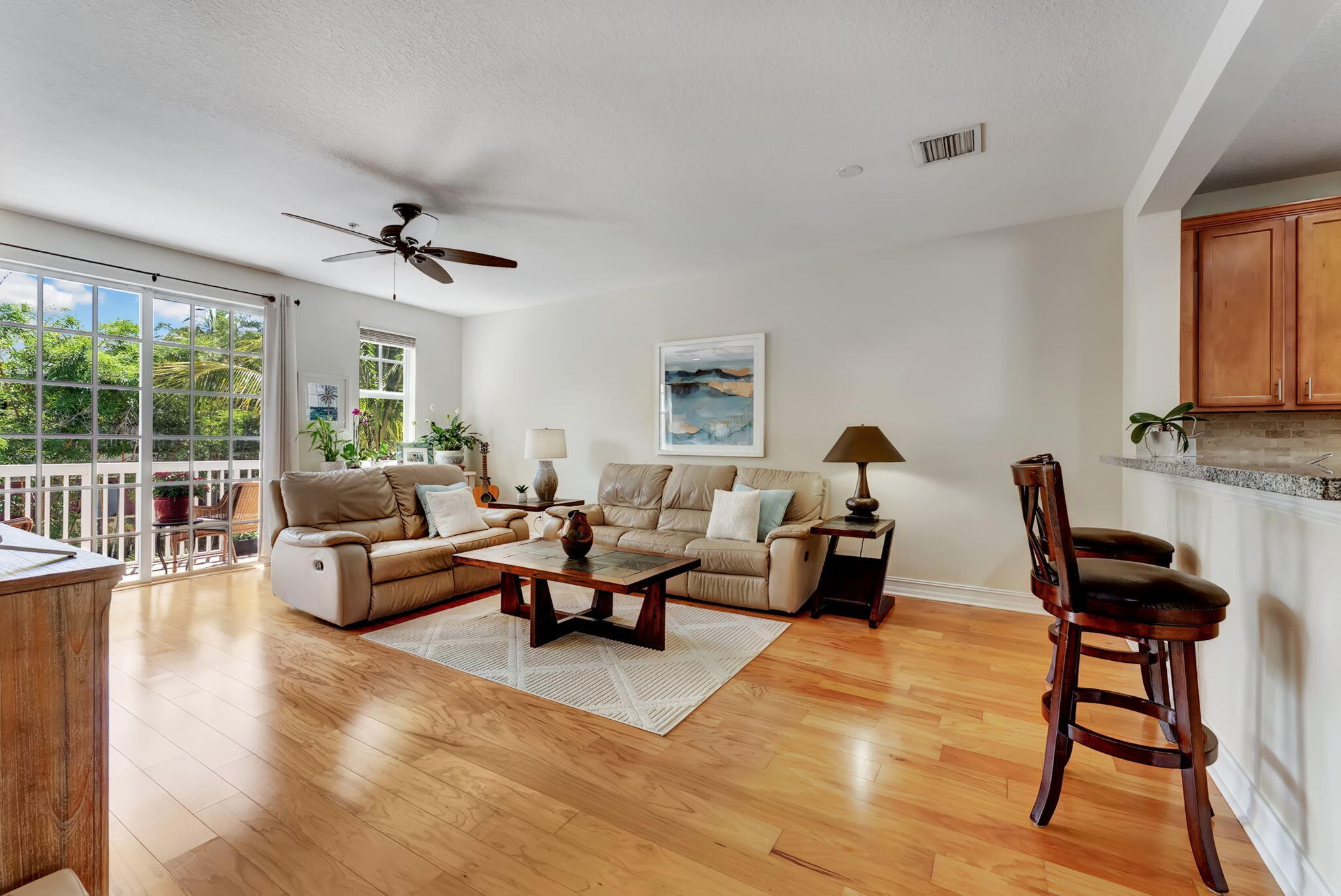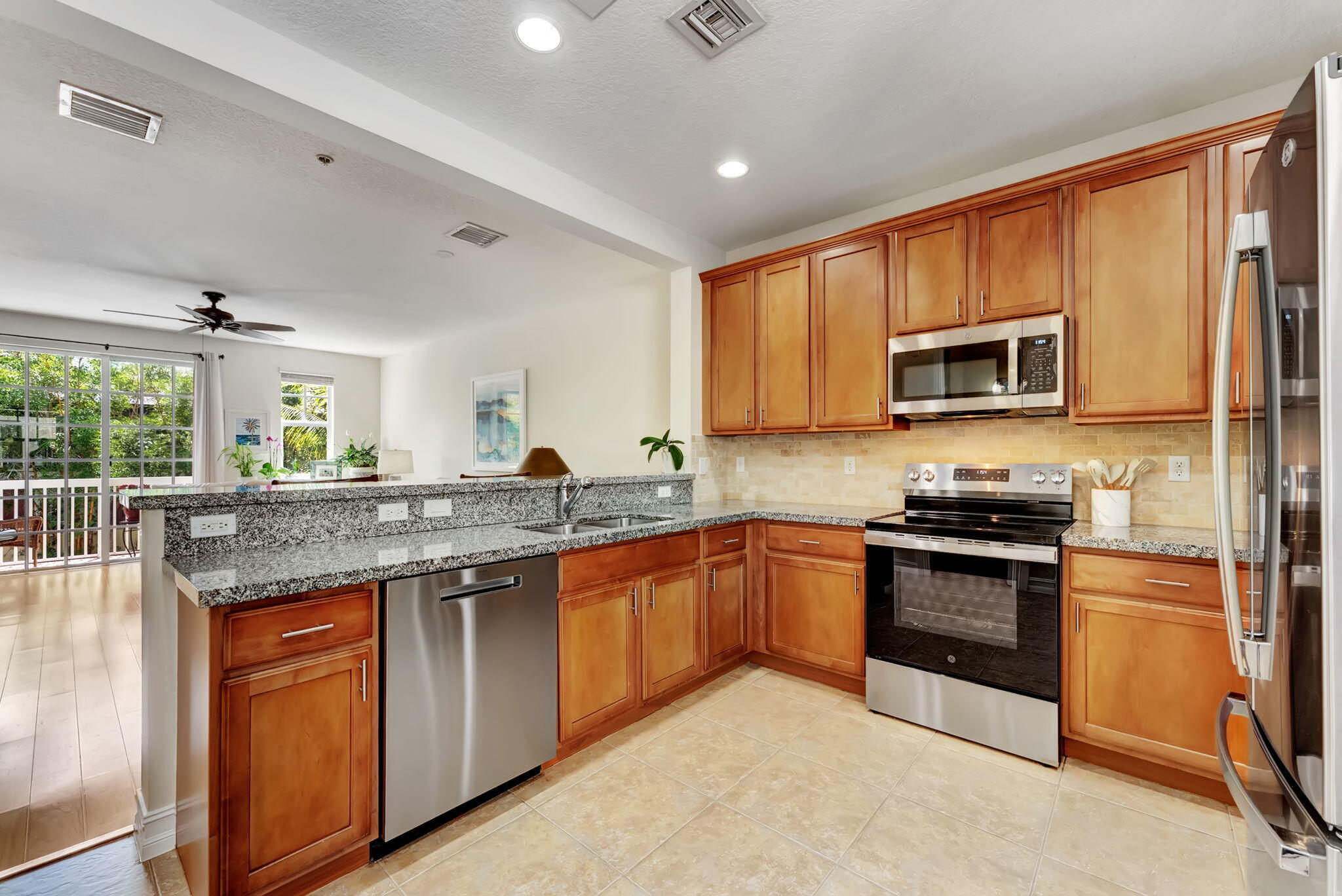 Just steps from the new Sundy Village, vibrant Atlantic Avenue, and Delray's sparkling beach, this Key West-style 3BD townhome in the coveted gated CODA community offers the ultimate in walkable luxury living. Freshly painted throughout, discover recent high-end upgrades including brand-new stainless-steel appliances and a striking custom stone backsplash, granite countertops, stylish rich-wood cabinetry, a walk-in pantry, and a dining area ideal for entertaining. Sunlight pours through impact windows, with desirable east-facing exposure filling the home with morning light and afternoon breezes. Highlights include natural oak wood engineered flooring, two private balconies, four baths (two full, two half), and a flexible first-floor den/office that easily converts to a third bedroom.The spacious primary suite features a luxurious full bath with dual granite sinks, a separate Roman tub with jets, Moet fixtures, and a generous walk-in closet. For privacy and security, the home features a two-car garage with a second refrigerator, plus upgraded ADT security system with Cellguard. Solid CBS construction on all three levels ensures soundproofing and energy efficiency, while the high-efficiency AC system (brand new AC handler 2025) keeps you comfortable year-round. You'll also appreciate CODA's lush tropical landscaping, resort-style pool, and the unbeatable convenience of being just one block from Sundy Village's superb dining and boutiques, and a short walk to the Delray Tennis/Pickleball Center, the library, and vibrant downtown cafe and arts scene. This prime location matched with low HOA, reduced price, and many recent upgrades make this stunning townhome both an enviable coastal lifestyle and incredible investment opportunity!