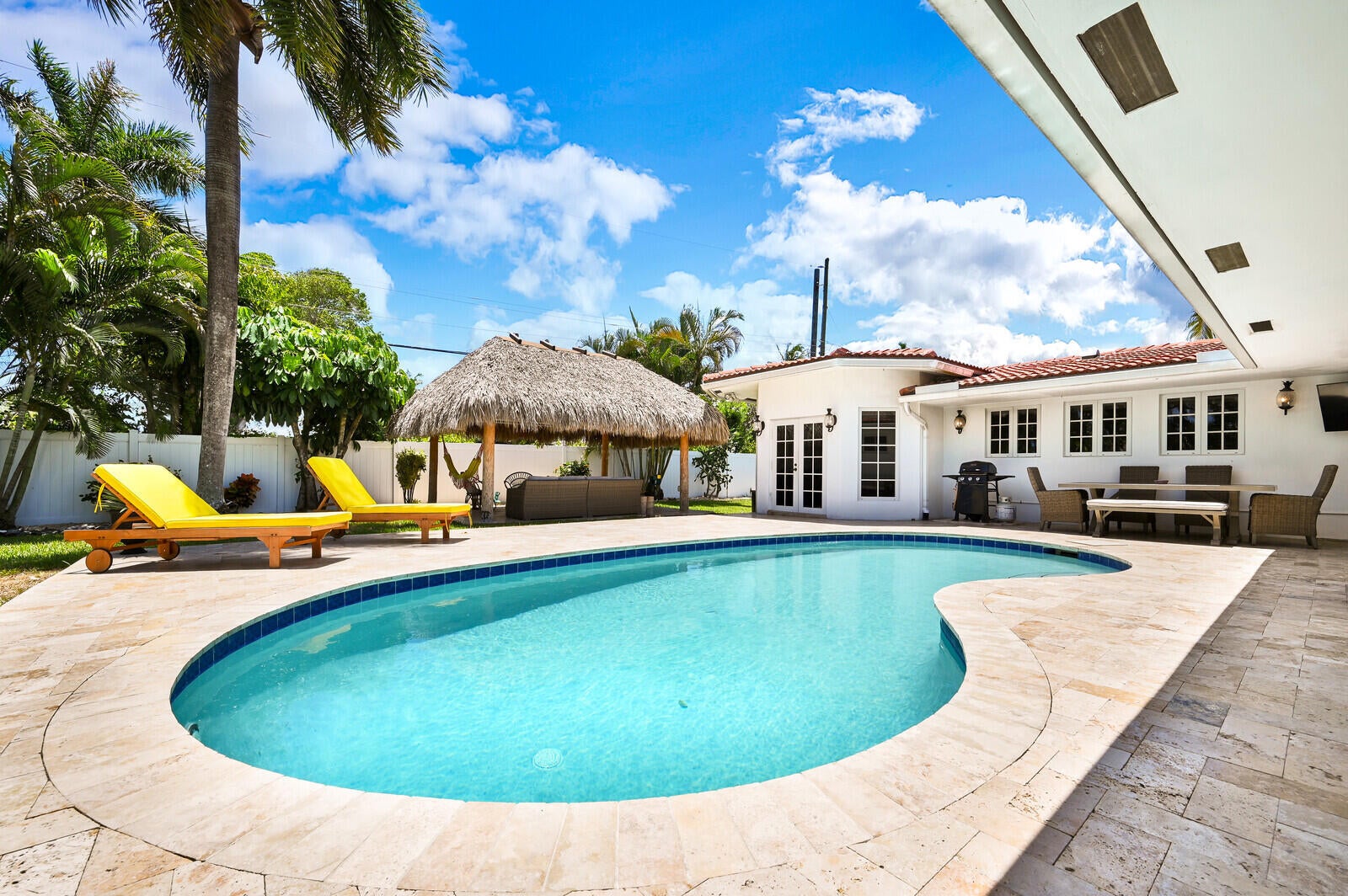 Short term rental in Deerfield Beach's desirable COVE has it ALL, Sprawling at 2400 sq ft w/enough room for each family member to enjoy his/her own space! The home features 4 large bedrooms, spacious & open living room + formal dining area, cozy bkfst nook, + large family room off yard. Beautiful chef's kitchen overlooks pool & boasts large cooking island, SS appliances & tons of cabinetry. XL fenced, private backyard is a true entertainer's oasis w free-form HEATED pool, travertine patio, XL tiki hut w/ projector screen, hammock, swings, TV & grill. Turnkey. Flexible date options available. PRICING AS FOLLOWS: Sept/Oct $6500 per month, Nov/$7900 per month, Dec/$9900 per month, Jan/Feb $10,500 per month. Minimum 2 week stay(prorated 60% of monthly rent)