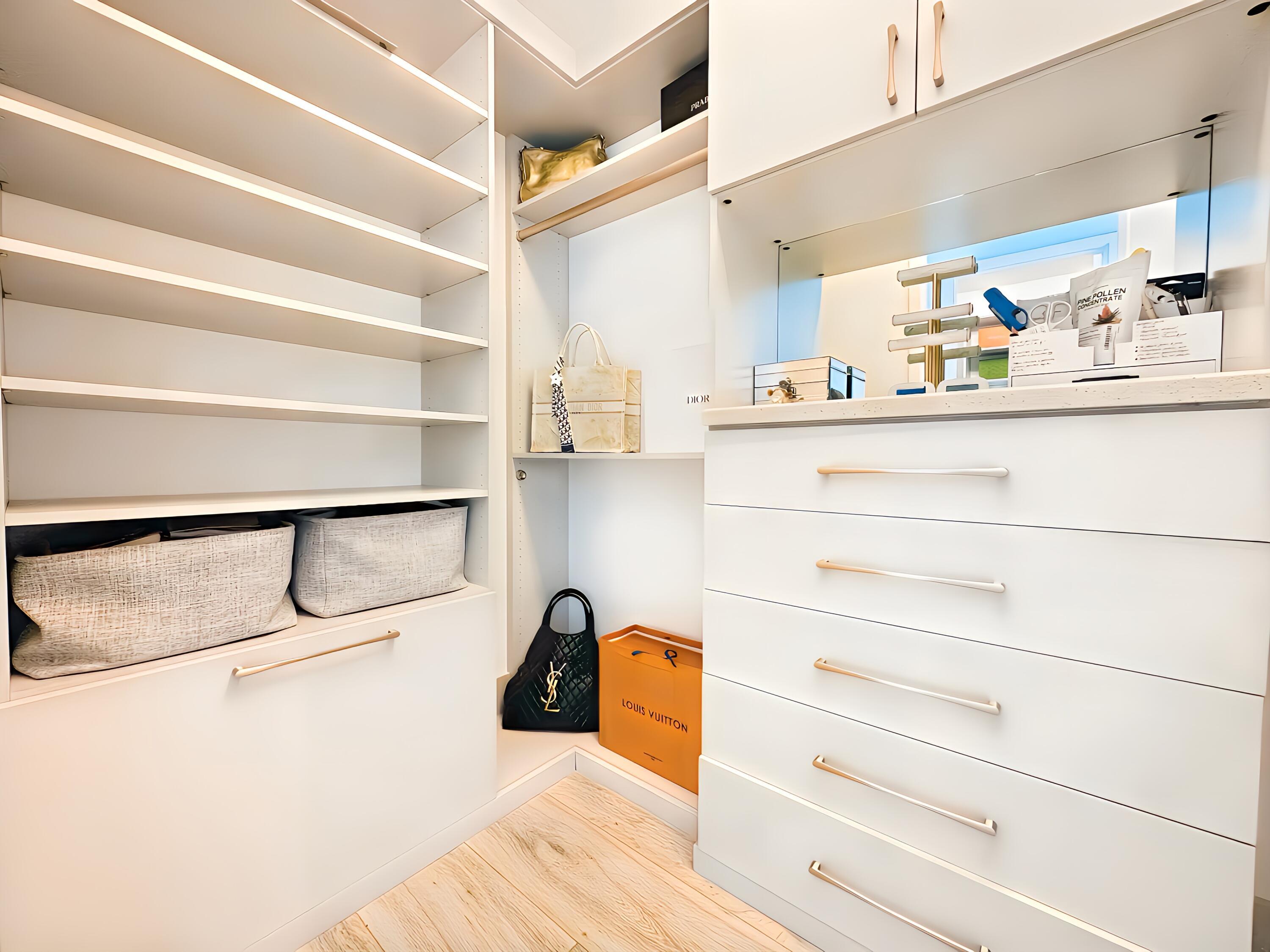 Walk-in Closet, Closet Cabinets, Custom Mirror, Laundry Tub