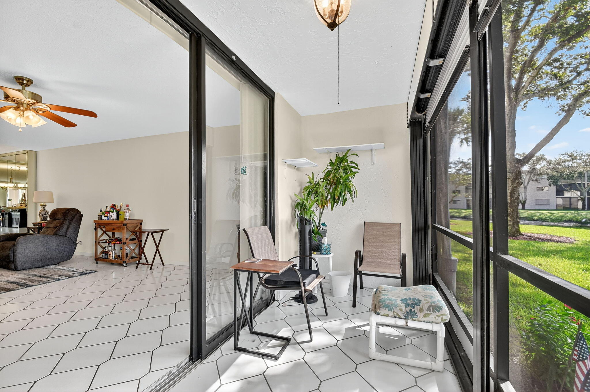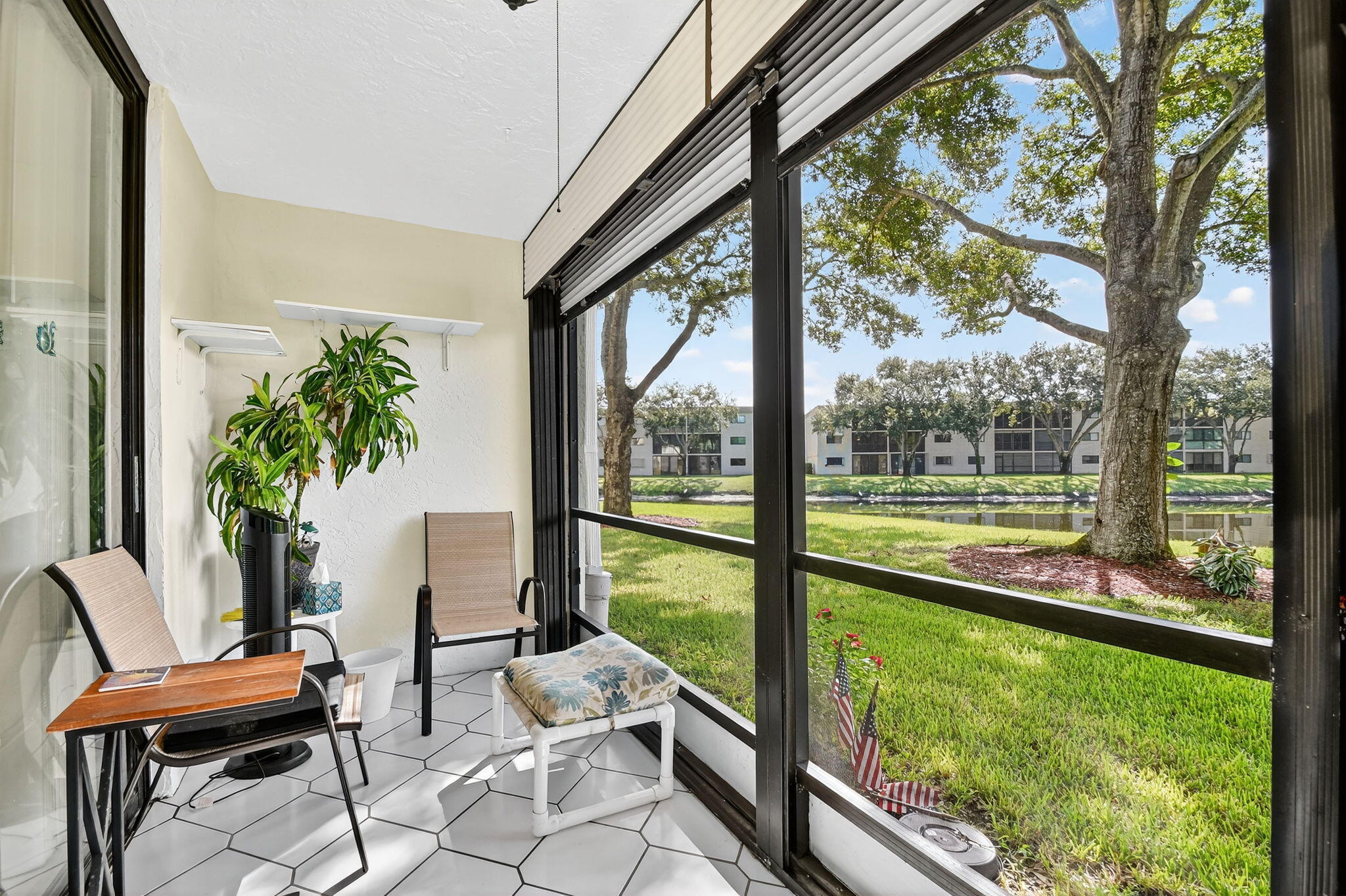 Bright and freshly painted, this charming first-floor condo offers peaceful garden and lake views. With 1,362 sq. ft. of living space, the home features tile flooring throughout, a spacious eat-in kitchen with modern appliances, and a convenient pass-through to the dining area. The primary suite boasts a large walk-in closet and private bath with a walk-in shower, while the generously sized second bedroom is just steps from the guest bath with a tub-shower combination. Step out to your screened-in patio and enjoy tranquil lake breezes with direct garden access -- complete with roll-down shutters for worry-free protection. Major updates are already done, including a new roof, elevator, and A/C. The oversized laundry room with full-size washer, dryer, and extra storage adds even more...Bright and freshly painted, this charming first-floor condo offers peaceful garden and lake views. With 1,348 sq. ft. of living space, the home features tile flooring throughout, a spacious eat-in kitchen with modern appliances, and a convenient pass-through to the dining area. The primary suite boasts a large walk-in closet and private bath with a walk-in shower, while the generously sized second bedroom is just steps from the guest bath with a tub-shower combination. Step out to your screened-in patio and enjoy tranquil lake breezes with direct garden access, complete with roll-down shutters for worry-free protection. Major updates are already done, including a new roof, elevator, and A/C. The oversized laundry room with full-size washer, dryer, and extra storage adds even more convenience. Lakes of Delray is one of the area's most sought-after 55+ gated communities, offering every amenity imaginable: a resort-sized heated pool, fitness center, tennis and pickleball, clubs, shows, dances, and so much more. A courtesy bus adds ease to your lifestyle, and best of all, a satellite pool and tennis court are just steps from your door. This gem won't last long...schedule your showing today!