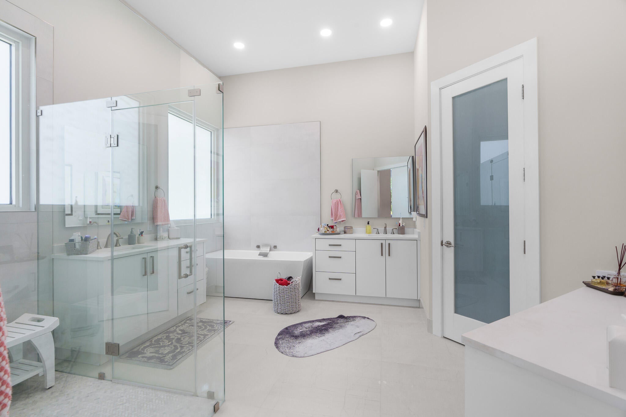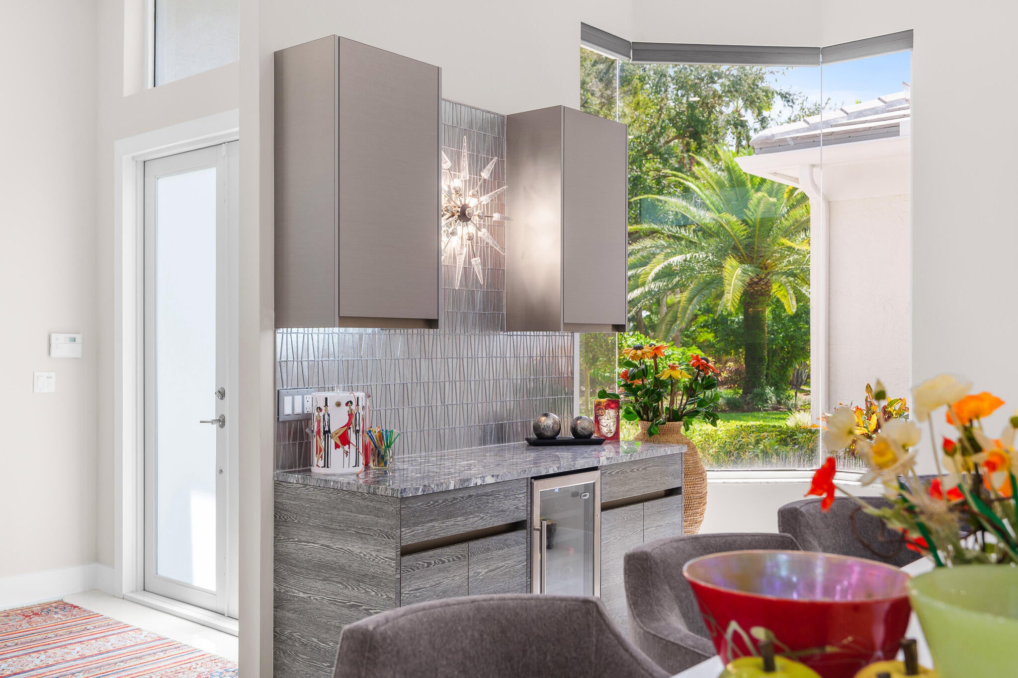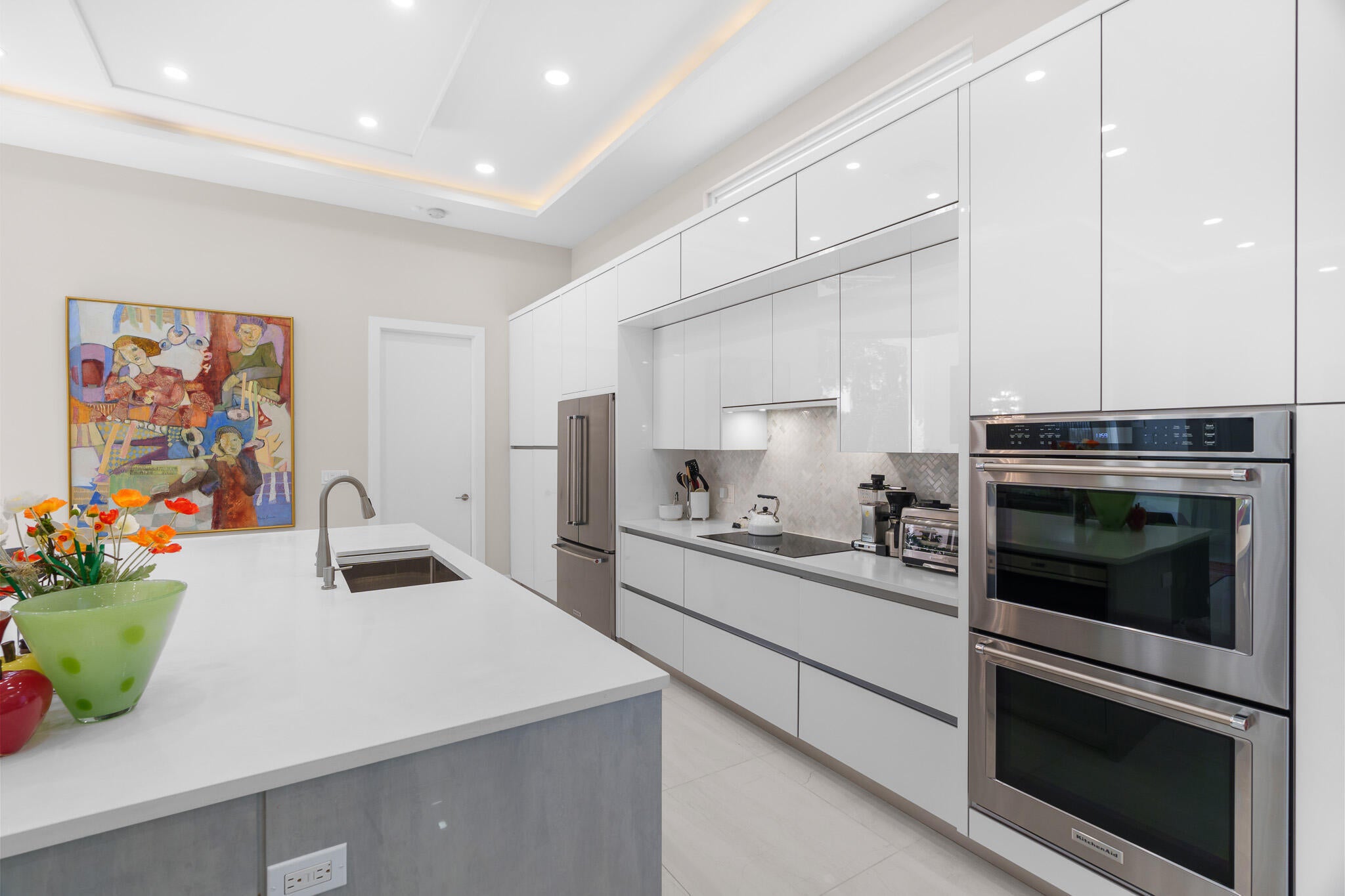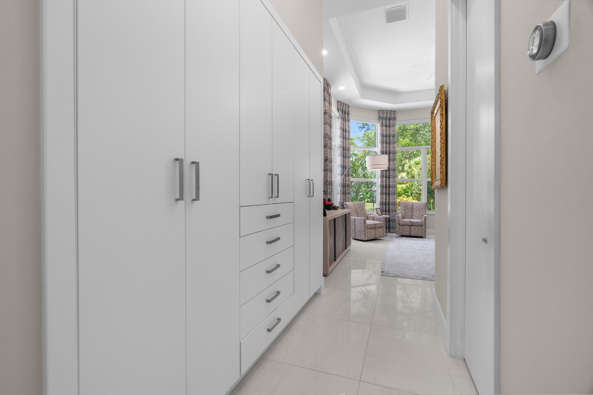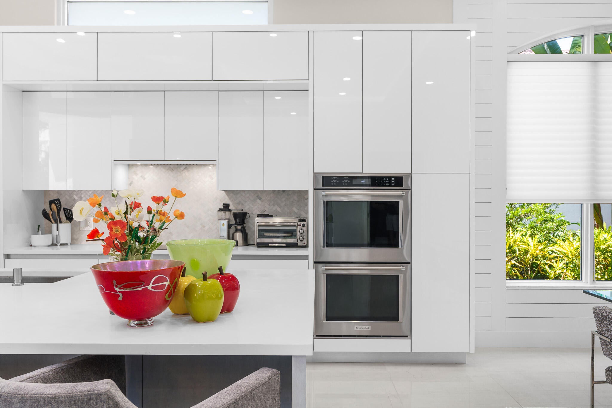 Immaculate and move in ready one level dream home. Completely renovated and professionally designed, this exceptional residence showcases an open floor plan filled with natural light, porcelain tile flooring throughout--including closets and the laundry room--and a design that balances elegance with comfort. The chef's kitchen features high-end KitchenAid and Wolf appliances, a convection stove, a large island, & floor-to-ceiling storage, creating a perfect combination of beauty & function. Situated on a sprawling & private lot on nearly one-third of an acre, the home offers both rare space and seclusion.The outdoor living areas are a true highlight, featuring an extended patio with marble flooring, a 22' x 22' pergola with remote-controlled retract. Newer flat tile roof and much more!