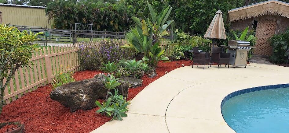 UNIQUE TROPICAL EQUESTRIAN PARADISE- TURN-KEY HORSES, AG EXEMPT EQUESTRIAN CERT. REHAB BOARDING, EQUINE THERAPY FACILITY ON QUIET CULDESAC. NO HOA** 12/23/25 ALL NEW UPDATES & INTERIOR PAINT = MOVE IN READY ! ** BRING YOUR HORSES TOO! ~ WELCOME TO A MINI HORSE FARM ~ WELL MAINTAINED PROPERTY ON 1.43 AC. IN EQUESTRIAN COMMUNITY, RING & WALK TO TRAILS. MANY POSSIBILITIES HERE & COULD ALSO ACCOMMODATE EXOTICS, CONSERVATION EFFORTS. SMALL UPDATED 2/2 HOME HAS ALL THE BIG $$ EXTRAS! NEW ROOF 2024, SPARKLING SALT GEN. DIAMOND BRITE POOL, 22KW 2024 TOTAL FARM STANDY GENERATOR W UNDERGRND PROPANE-500G, TIKI POOL CABANA.*** EQUESTRIAN: 5 STALL BARN AUTO WATERS, SEPARATE FEED RM & TACK RM, SMALL RING W/CLAY/SAND FOOTING, FENCED/CROSS FENCED, STAFF & VOLUNTEER LOUNGE, TRAILER & 30AMP RV LOTRECENT UPDATES:12/23/25-NEW INTERIOR PAINT THROUGHOUT, NEW PVC PLANTATION CLOSET DOORS, NEW UTILITY SINK IN GUEST BATH, LR PARQUET WOOD FLOOR W/ RECENT MINWAX & ALL TILE- NO CARPET. ADDITIONAL: ADT SECURITY, ELECTRICAL UPDATES AND NEWER APPLIANCES. 2 LARGE GATES TO ACCOMMODATE HORSE TRAILERS, AUTO COMMERCIAL GATE OPENER, HORSESHOE DRIVEWAY WITH NEW MILLINGS. NEWLY PAVED ROAD WITH NEW DRAINAGE! 1/10 FEMA RATING=MINIMAL FLOOD LARGE 26X6 SCREENED PORCH, FRONT PORCH OR MUD ROOM. SEVERAL SCREEN/WIRE/CHAINLINK- AVIARIES, ENCLOSURES FOR ALL YOUR EXTRA PETS, FARM ANIMALS, CHICKENS, BIRDS OR EXOTICS. ALL HOUSE OPENINGS HAVE HURRICANE SHUTTERS, 2024 WINMIT INSPECTION REPORT, NEW DRAIN FIELD & SEPTIC 2008- NEW SEPTIC WILL ACCOMODATE ANY ADDITIONS YOU MAY WANT TO MAKE TO THE HOUSE TOO-RECENT PUMP2025, 2017 HVAC WITH MICROPURE UV LIGHT & INSPECTIONS/MAINTENANCE W/REPORT/S YEARLY & 2025. TERMITE INSPECTIONS REPORTS. KINETICO REVERSE OSMOSIS -UNDER THE SINK. 2022 SURVEY. AMAZING AVOCADOS TREES! **EXTERIOR HAS BEEN PROFESSIONALLY PAINTED/CAULKED WITH SHERMAN WILLIAMS, ANY EXTERIOR REPAIRS DONE. 25 YEARS OF METICULOUS MAINTENANCE RECORDS INCLUDED WITH THE SALE. 12 X 12 FINISHED OUTBUILDING AND 25' RV OFFICE REST ROOM W/ SEPTIC MAY BE NEGOTIATED. SHIPPING CONTAINERS DO NOT CONVEY OWNER/AGENT. BANK APPROVED OR PROOF OF FUNDS TO SHOW TO SERIOUS BUYERS ONLY PLEASE. THANKS!