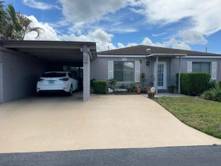 Light and bright ,Great location, Great Deal 2/2 with 2 car driveway & carport. Solid concrete block construction. A-Rated high school.Plantation shutters on some windows. Newer front door & french doors leading out to a huge insulated covered patio.The floor is Tiled with a modern gray wood look. A/C 2021, ROOF 2019, New curcuit breaker boxHurrican film on most windows preventing breakage from flying debri. Step-in shower in Master bdr. Ceiling fans in all rooms. Lots of closet space.1 person must be 55+ no kids under 15Walking distance to the clubhouse pool,jicuzzi,pickelball,gym,theater,ect approx 2 miles to 3 Pubix shopping centers with Cvs, wallgreens, restaurants, deli's, banks, Mc donalds, Dunkin Donuts,house of worship ect.Close to major Hwys & approx 6 mile to beach